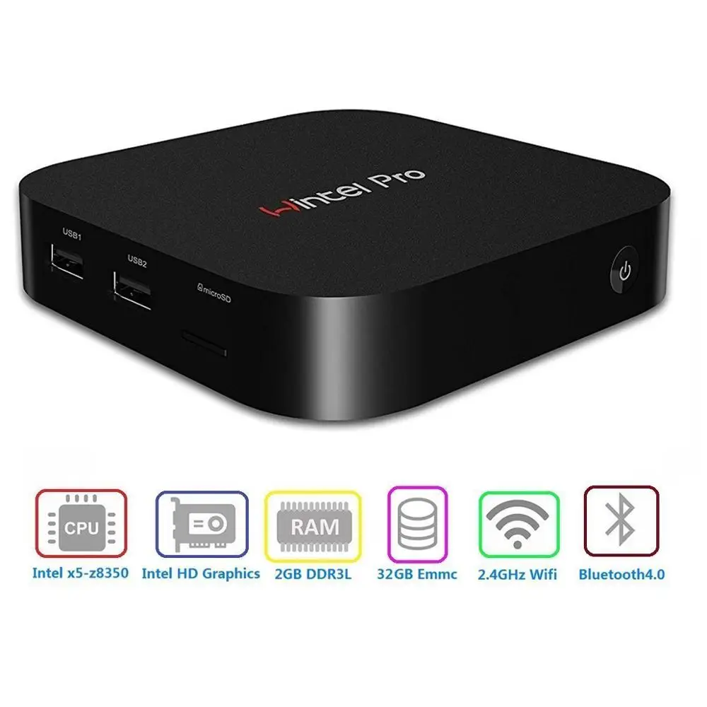wintel pro MINI PC intel atom X5-Z8350 1.44Ghz quad core 2GB/32GB with WIFI BT4.0 RJ45 100M LAN windows 10 computer W8 TV Box