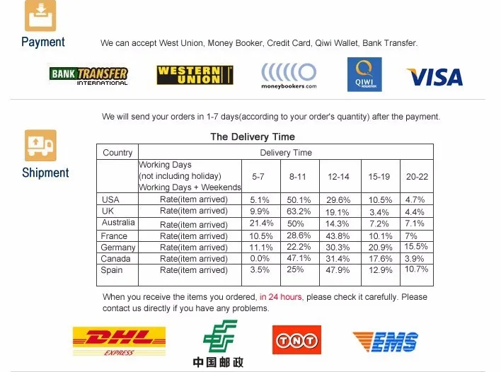 • If you did not receive the product within the guaranteed time( 45 days not including 2-5 day processing) you can request a refund or a reshipment.