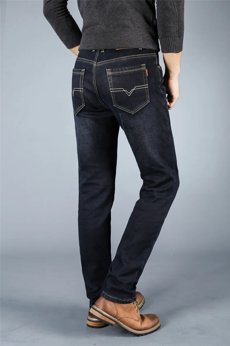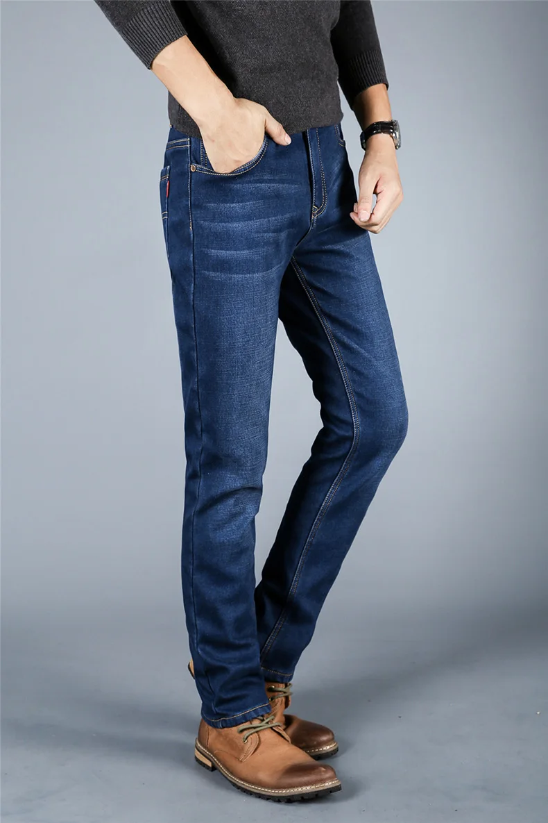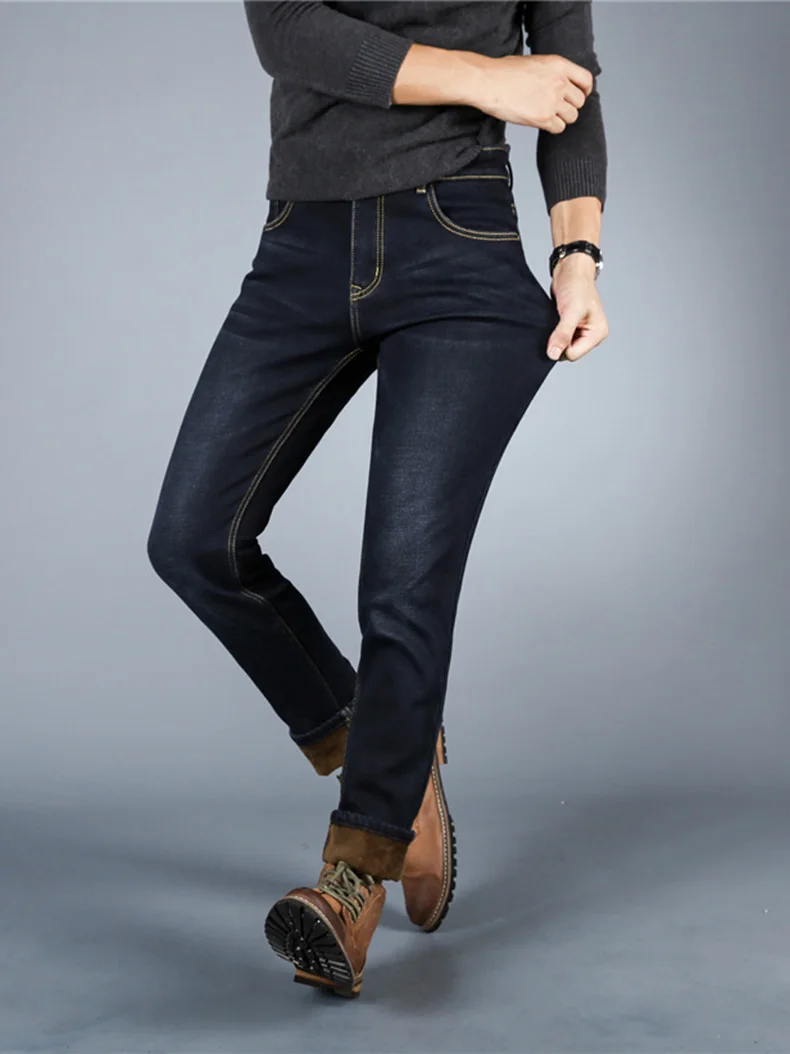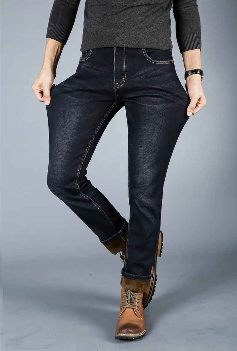 Winter Casual Thick Jeans For Men Autumn Fleece Warm Long Straight Stretch Black Blue Skinny Zipper Classic New Denim Pants Male
