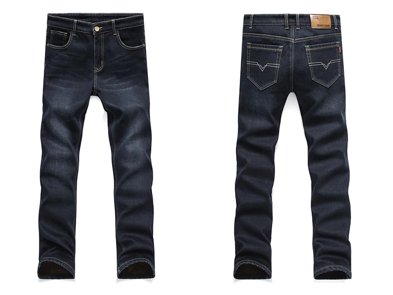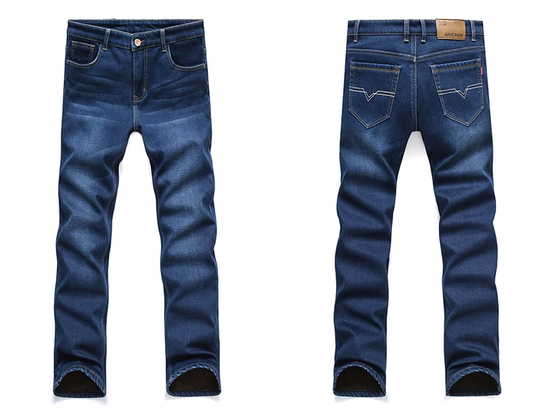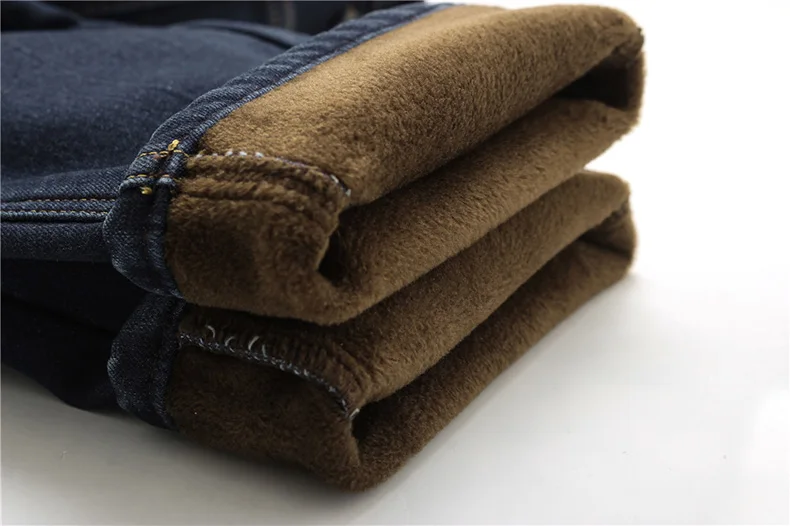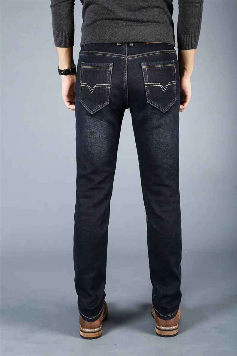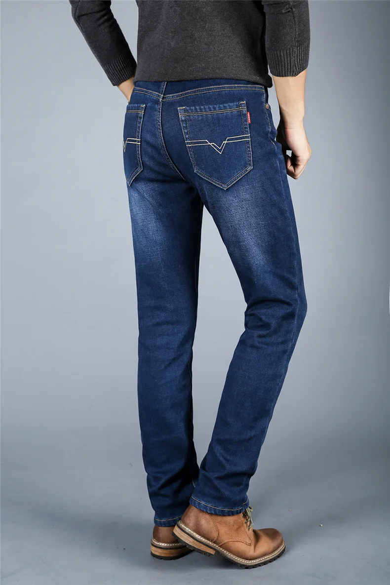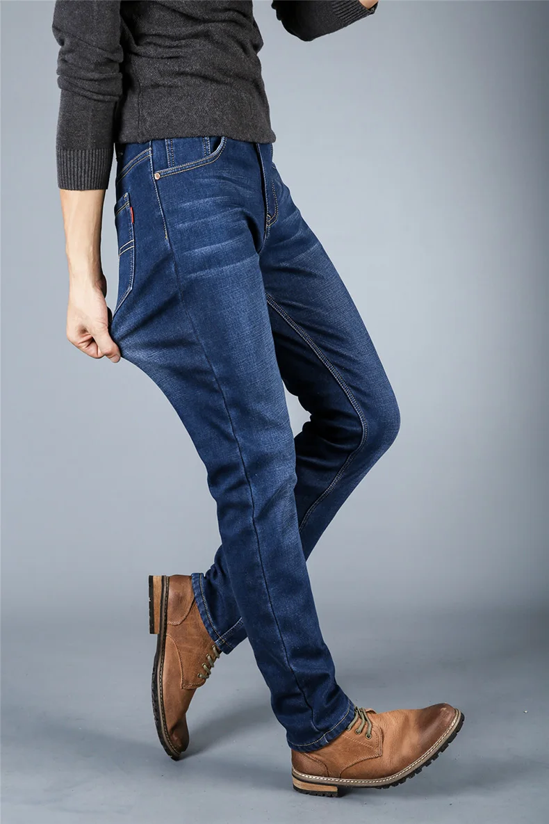 Winter Casual Thick Jeans For Men Autumn Fleece Warm Long Straight Stretch Black Blue Skinny Zipper Classic New Denim Pants Male