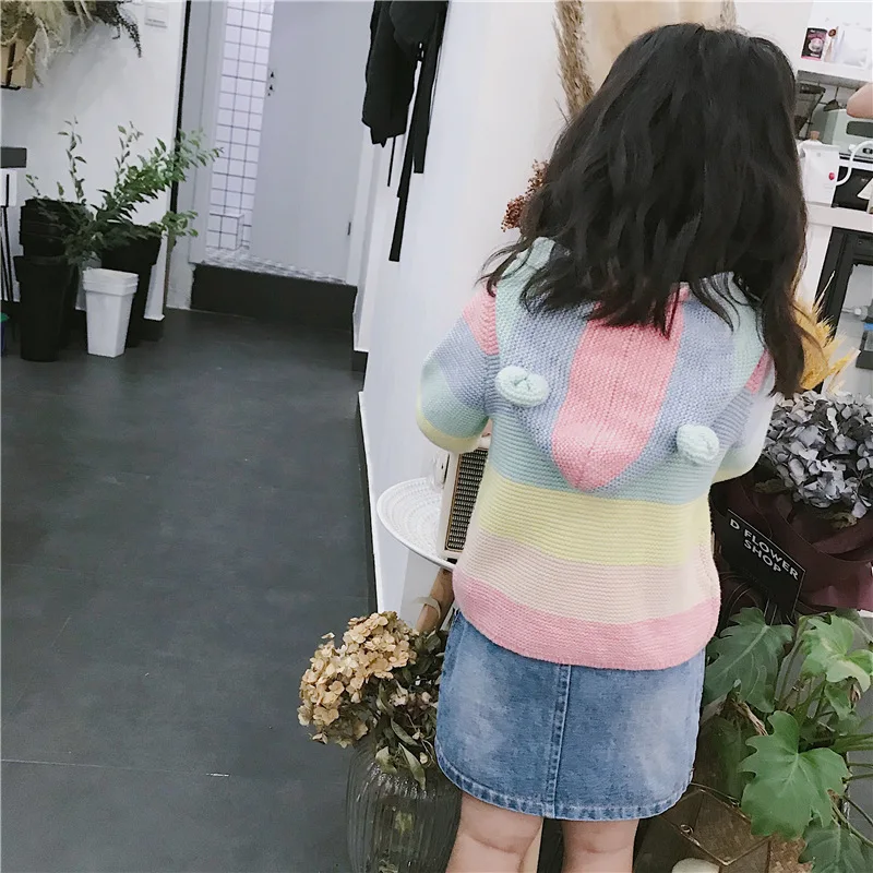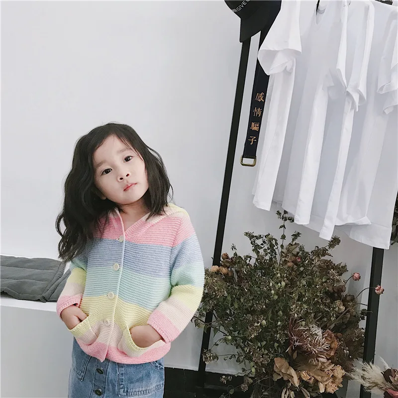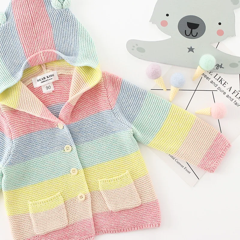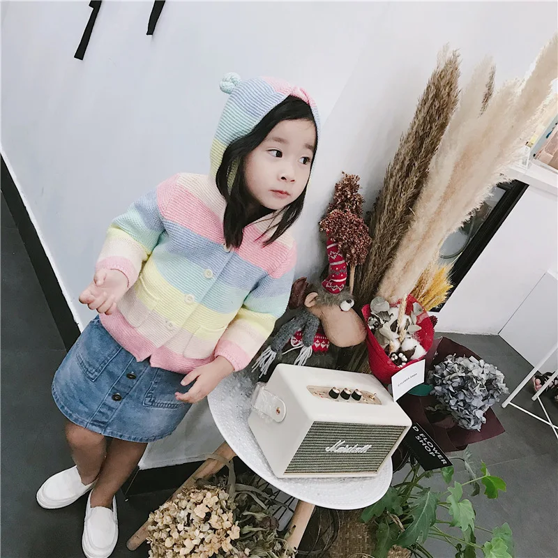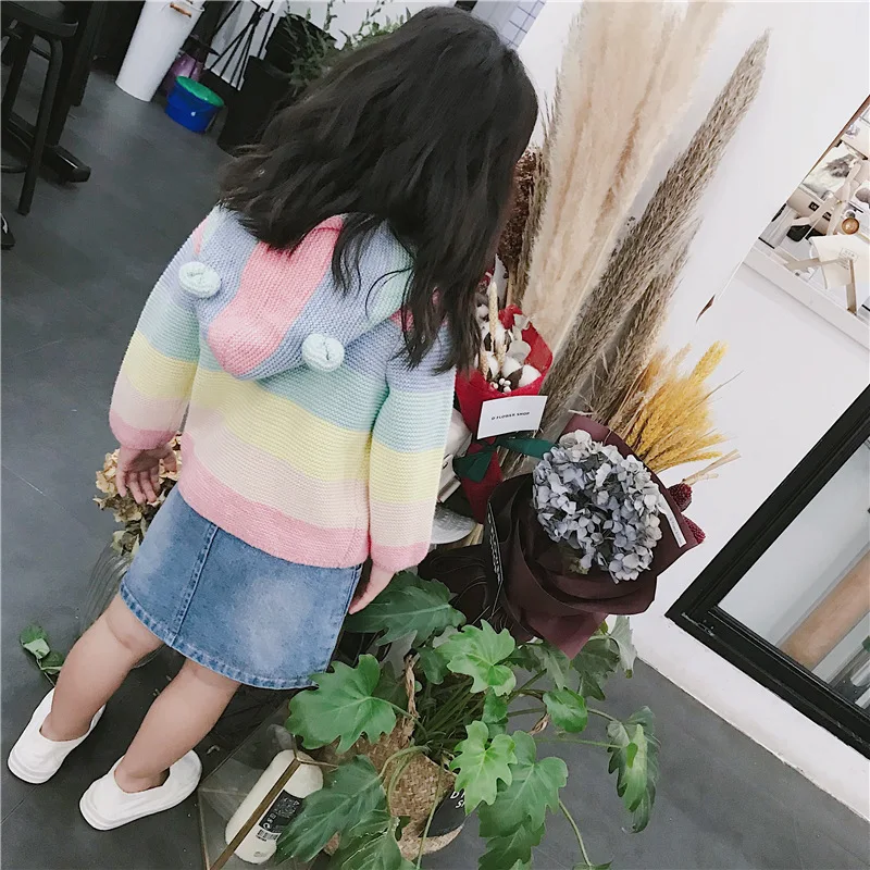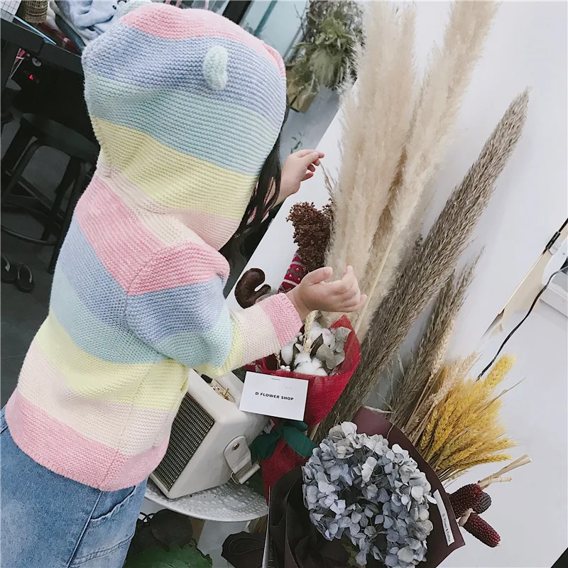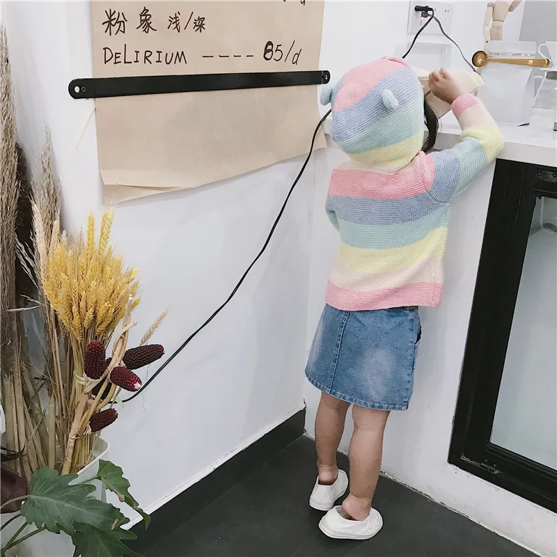 Winter fall kids fashion clothing girls clothes Candy color stripe stitching hoodies baby cotton outerwear coat girls sweaters
