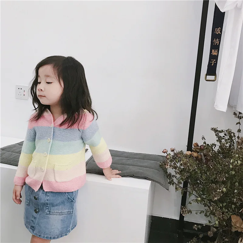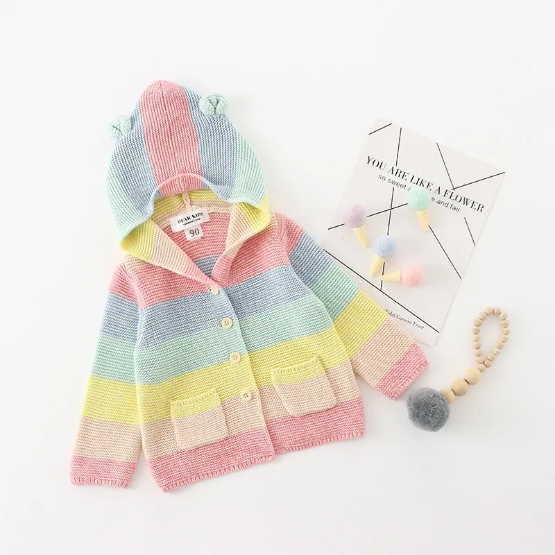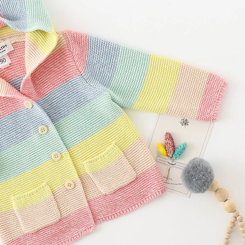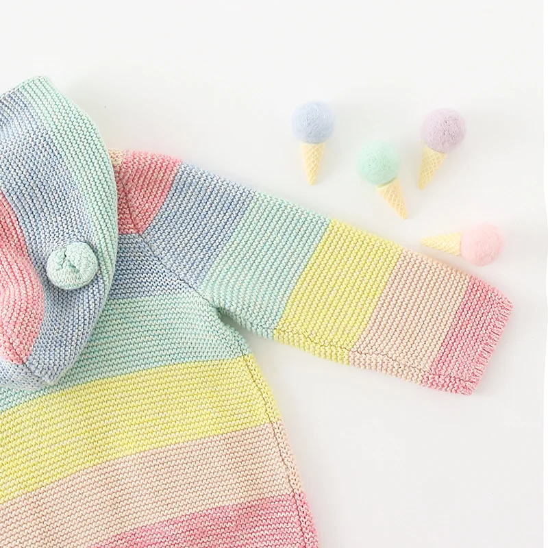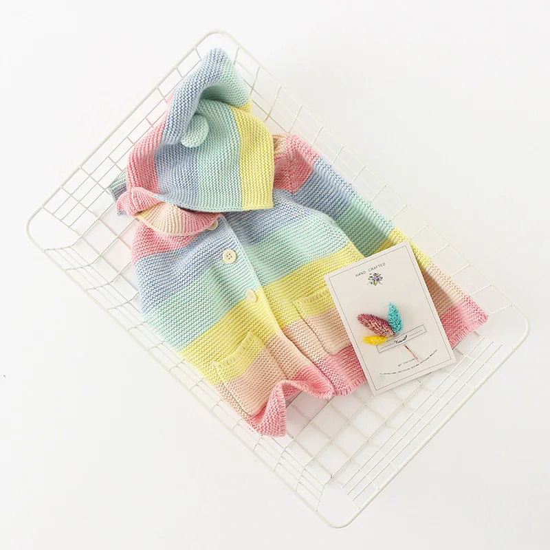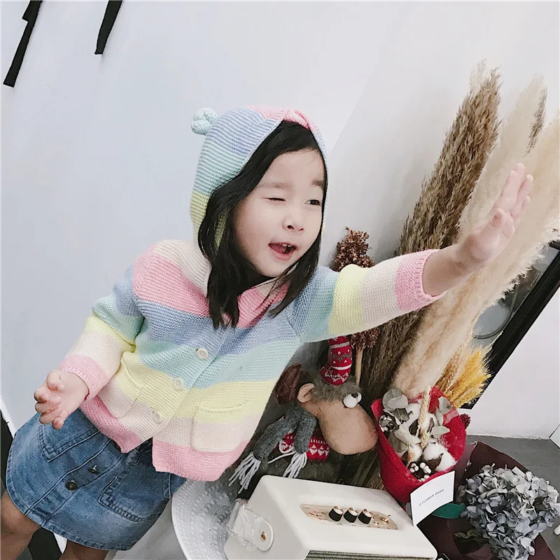 Winter fall kids fashion clothing girls clothes Candy color stripe stitching hoodies baby cotton outerwear coat girls sweaters