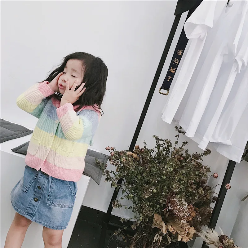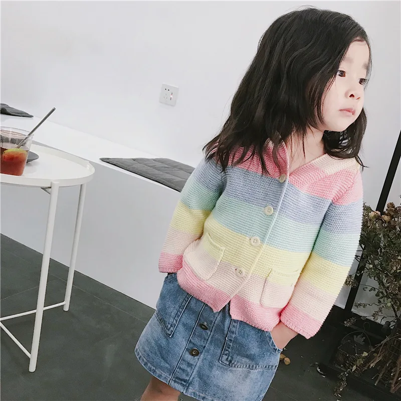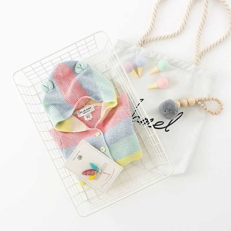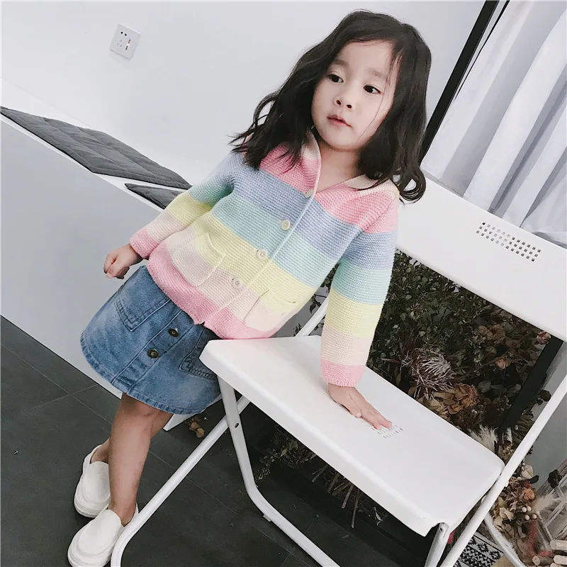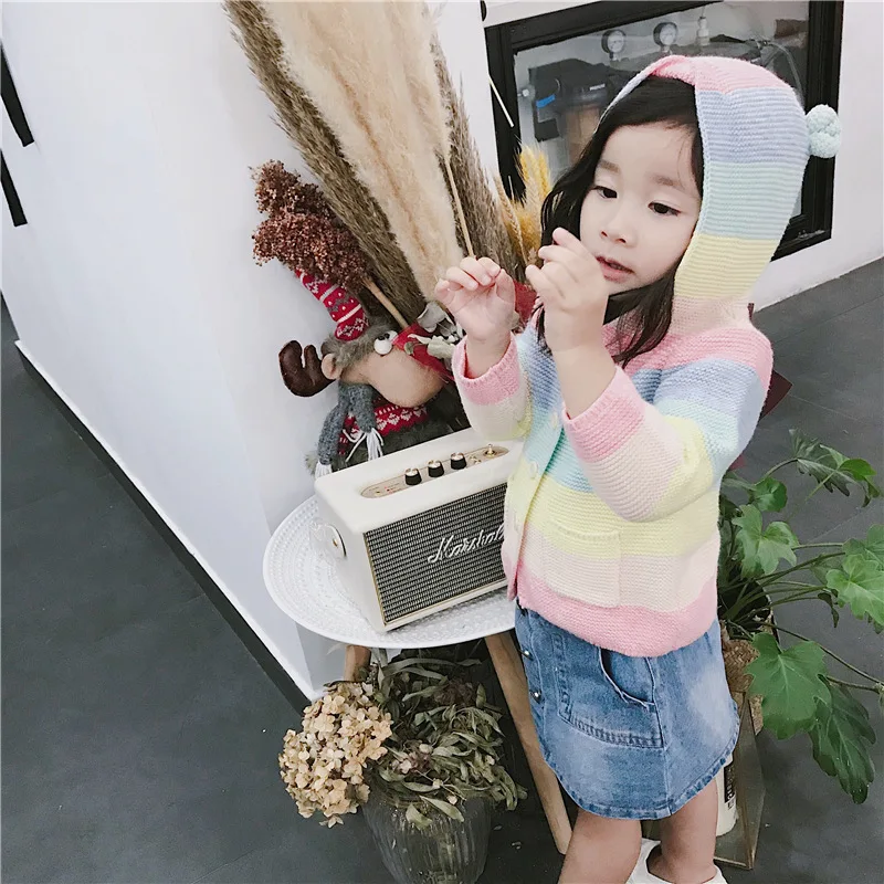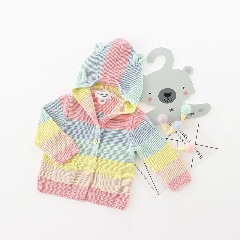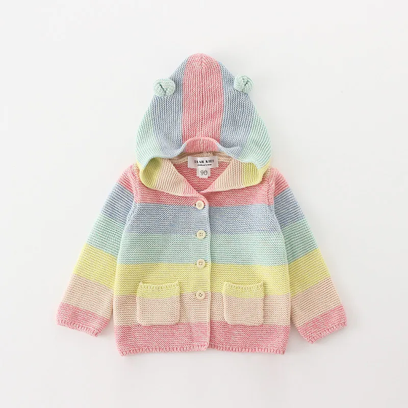 Winter fall kids fashion clothing girls clothes Candy color stripe stitching hoodies baby cotton outerwear coat girls sweaters