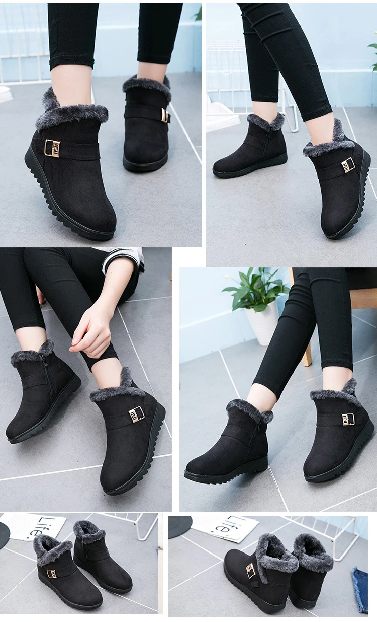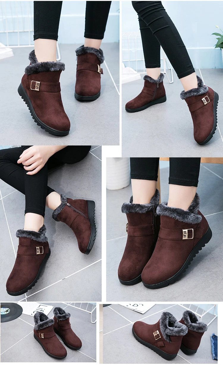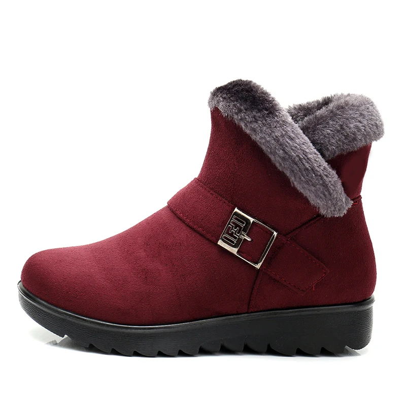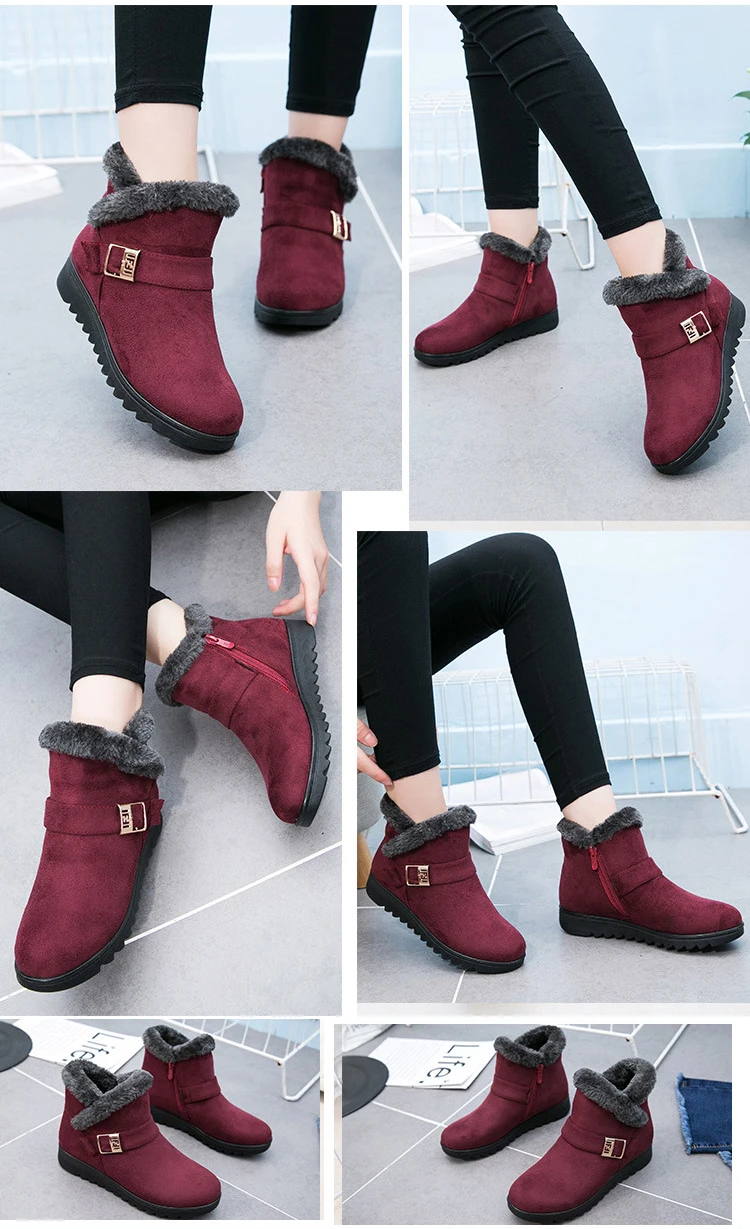 Winter Women Ankle Boots New Fashion Flock Wedge Platform Winter Warm Red Black Snow Boots Shoes For Female Plus Size 40 41