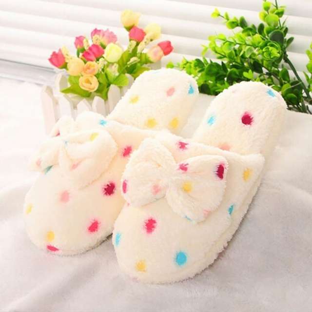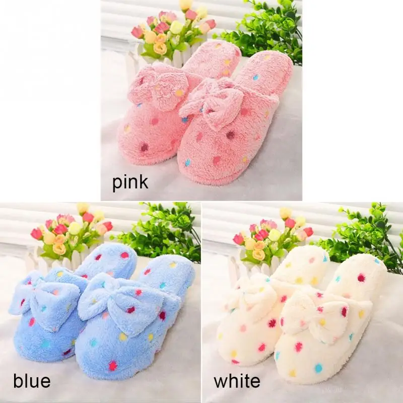 Winter Women Shoes Lovely bow-knot Home Floor Soft Cotton-padded Slippers Winter Female Indoor Slippers sapato feminino