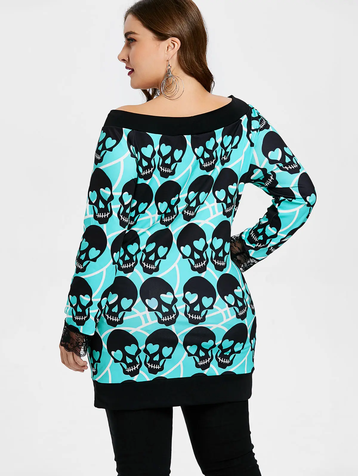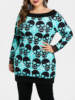 Wipalo Halloween Plus Size 5XL Long Sleeve Skull Pattern Tunic Tee Top Casual Autumn Boat Neck Long Sleeve Women T-Shirt Top