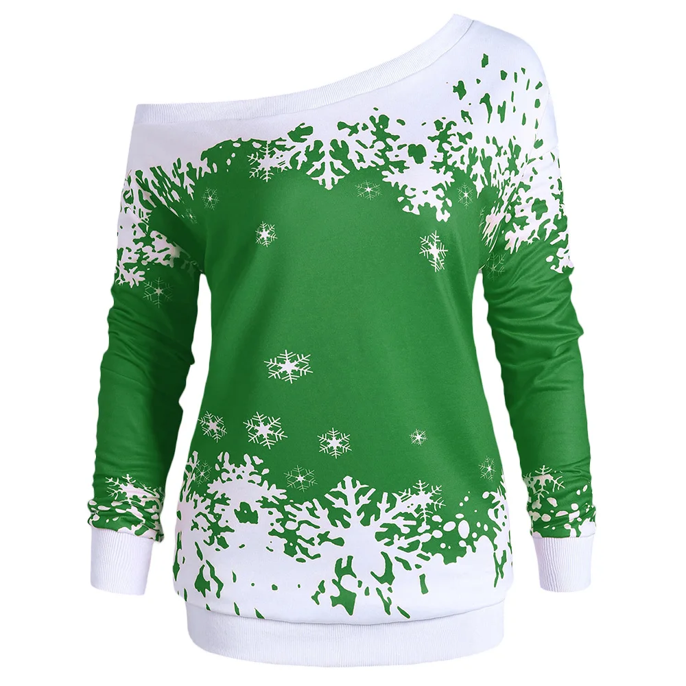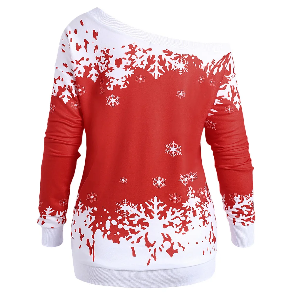 Wipalo Plus Size 5XL One Shoulder Christmas Snowflake Sweatshirt Women Autumn Winter Tops Pullover Tracksuit Hoodies Big Size
