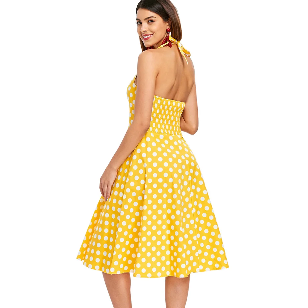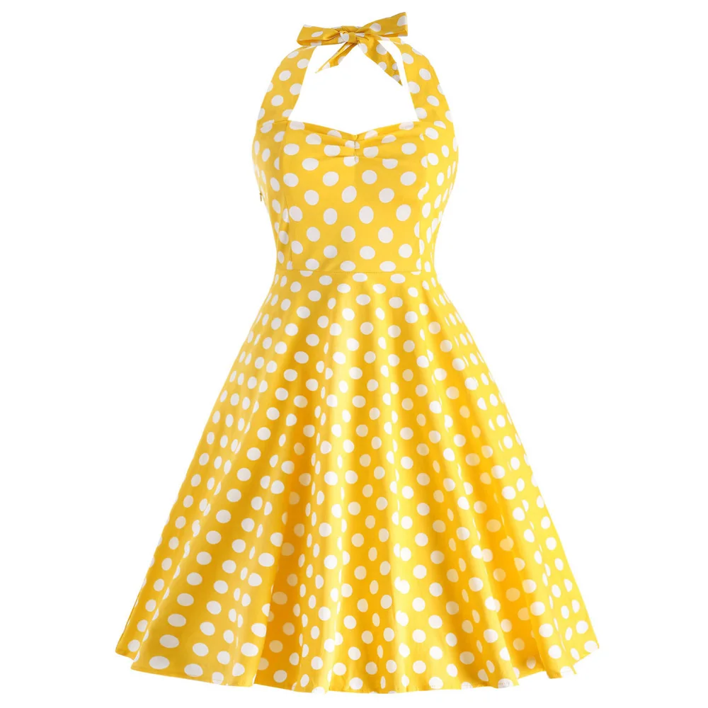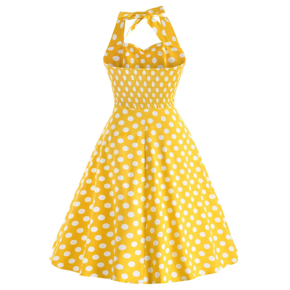 Wipalo Plus Size 5XL Women Summer Dress Vintage Yellow Polka Dot A-Line Party Dress Casual Cotton Halter Dresses Female Vestidos