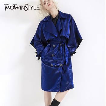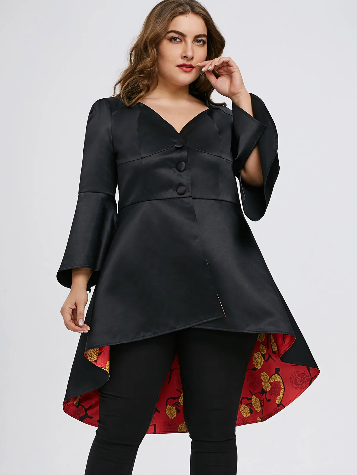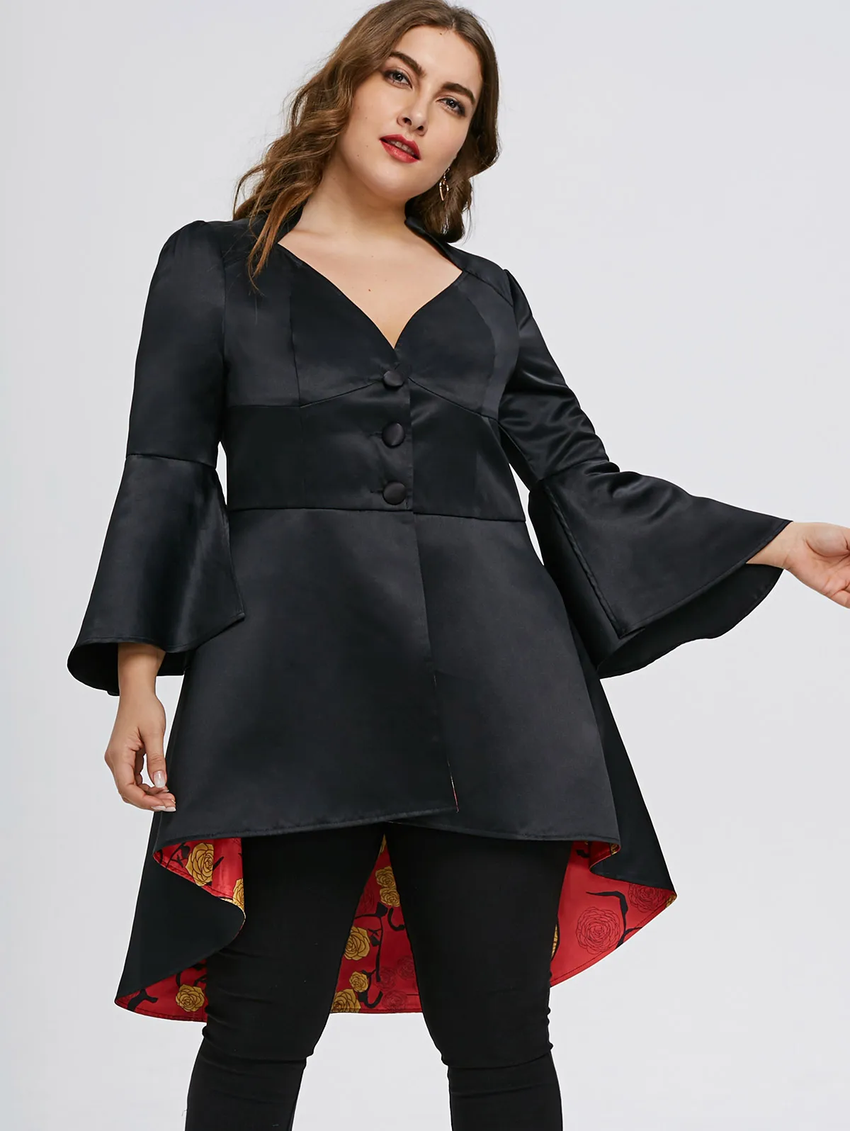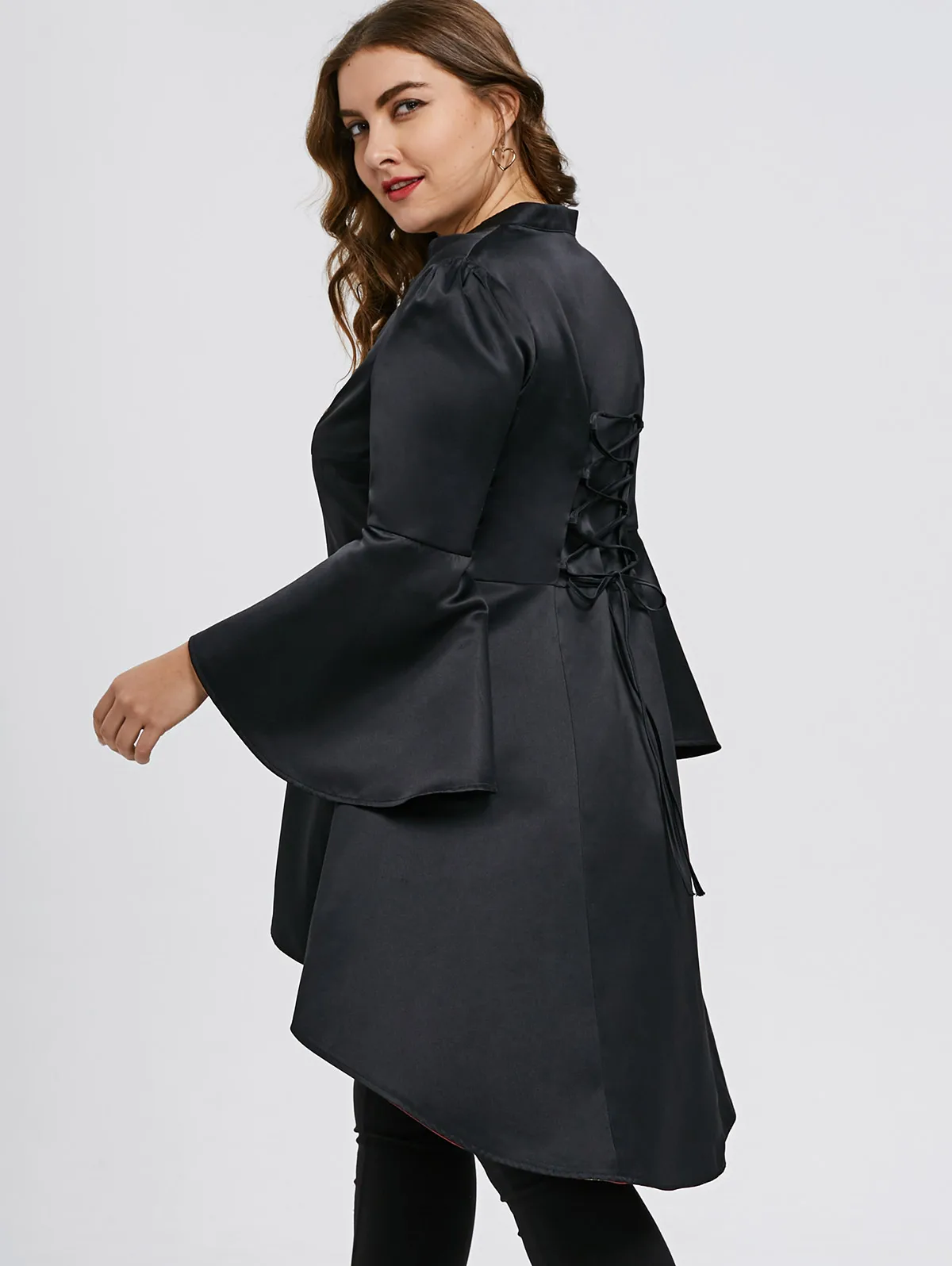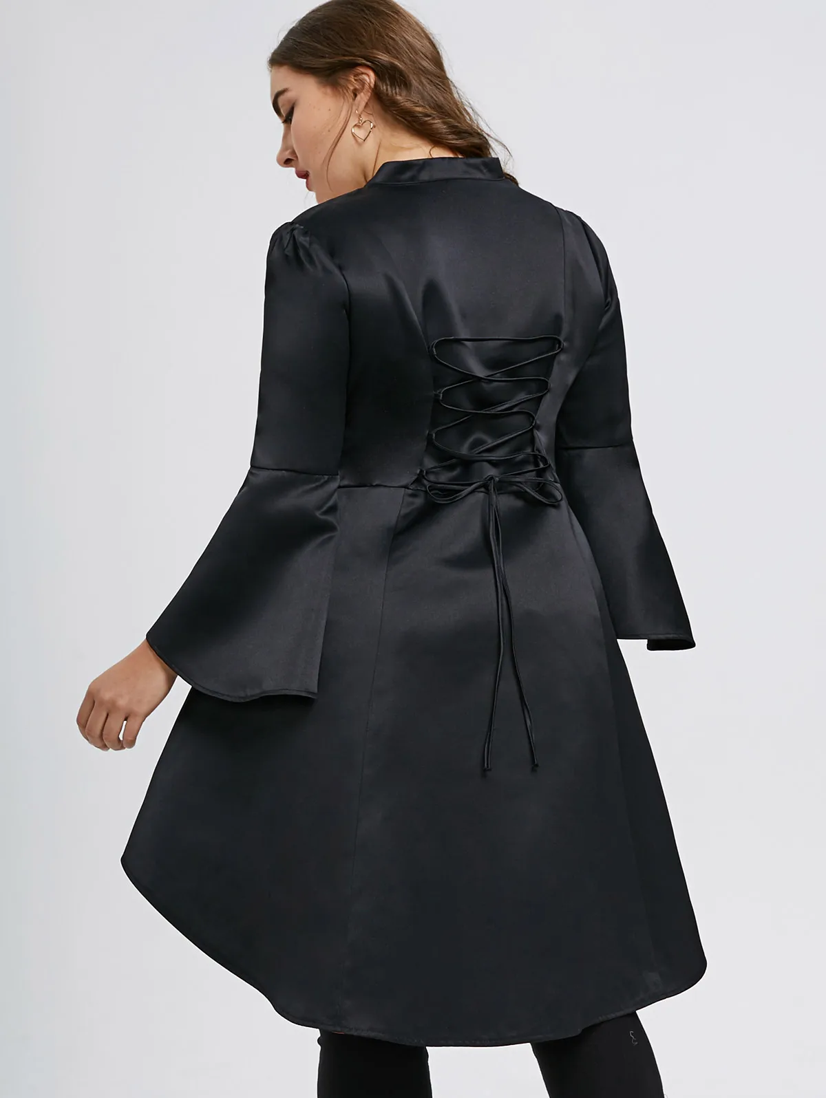 Wipalo Plus Size Lace Up High Low Skirted Coat Flare Sleeve Coat V-Neck Female Outwear Single Breasted Trench Coat