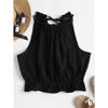 Cool in style, relaxed in fit, this stylish tank top with a pretty ruffle neck emphasizes a brief solid color design, pretty ruffle hemline, and an alluring cropped length which shows your charming waist. The self-tie detail at back creates a cutout which adds charm and glamour.