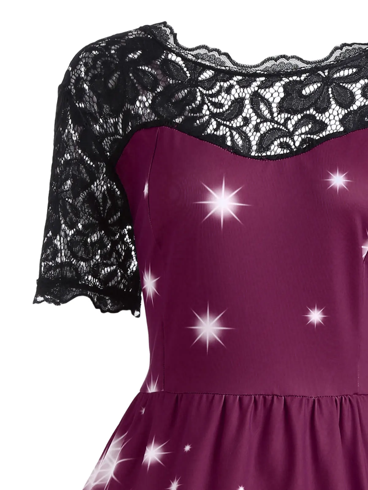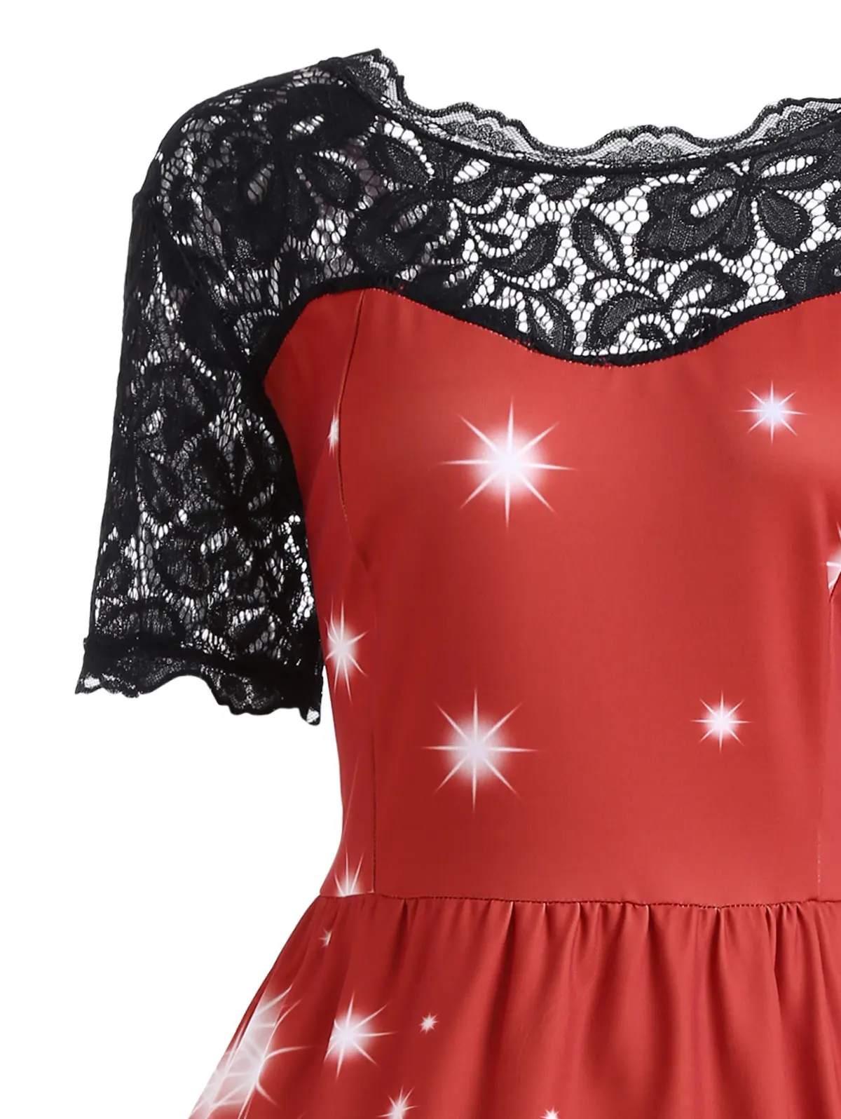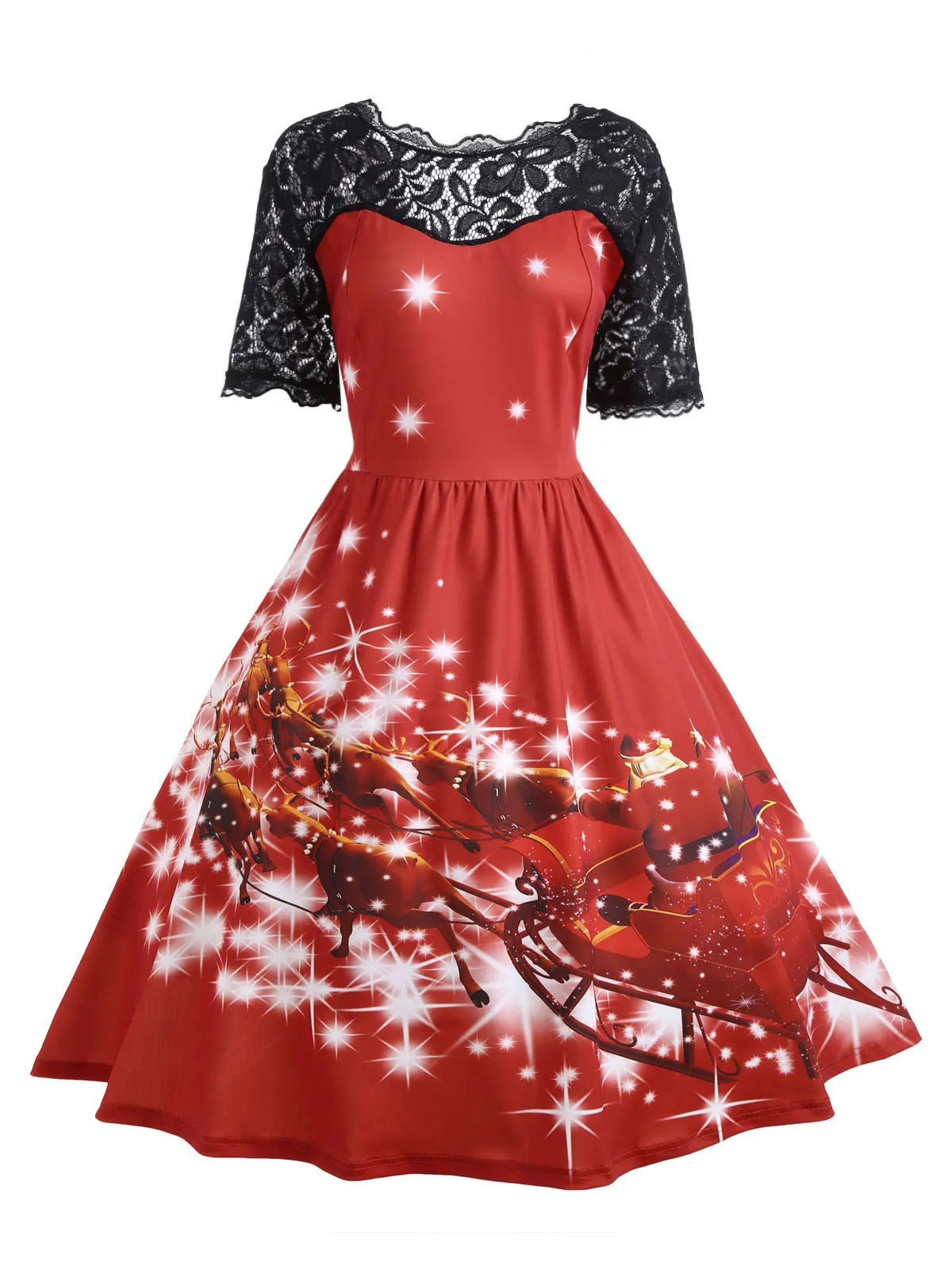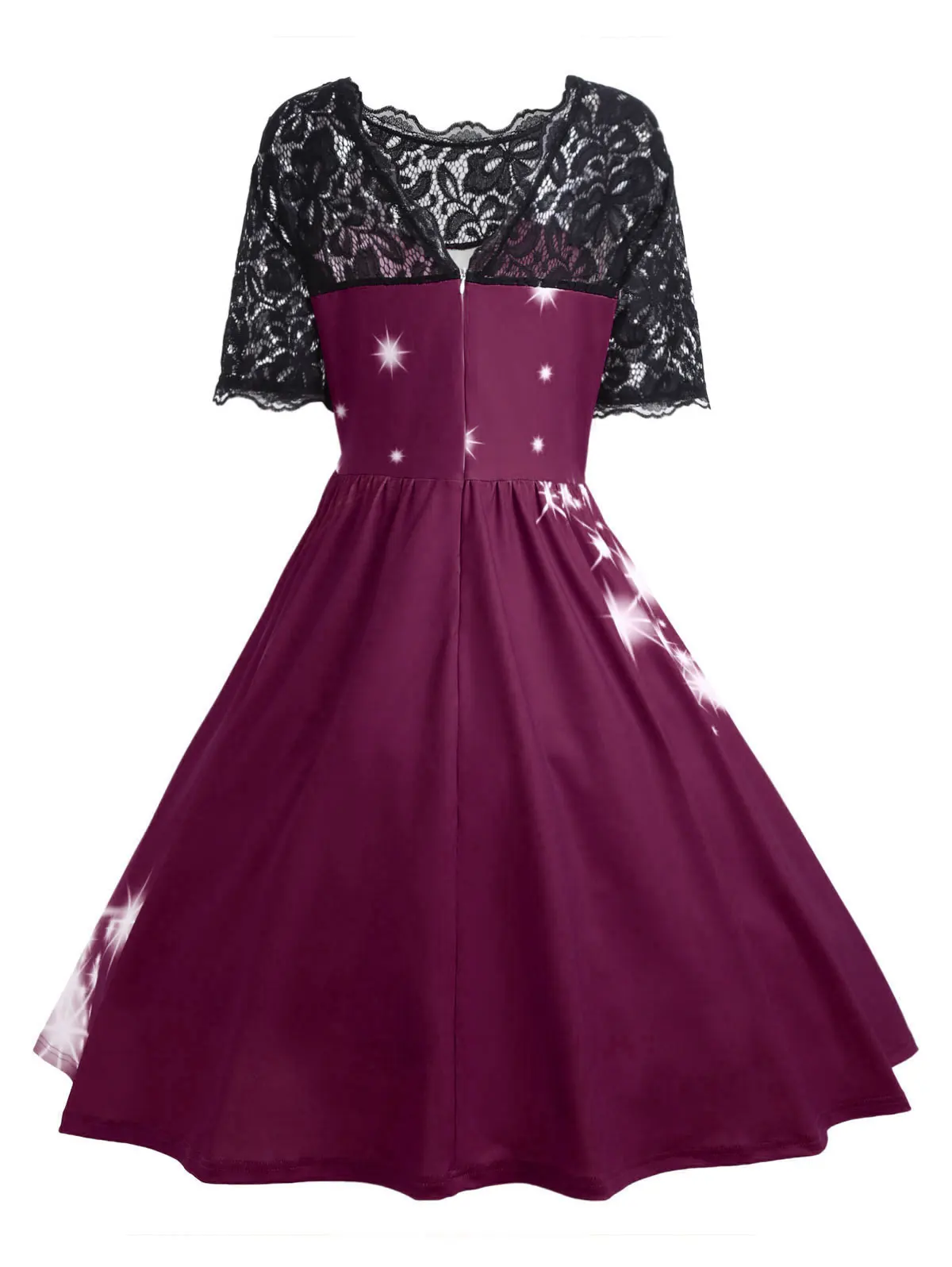 Wipalo Women Christmas Lace Panel Father Midi Party Dress Ladies Autumn Vintage Insert Robe Femme Plus Size 5XL 4XL Vestidos