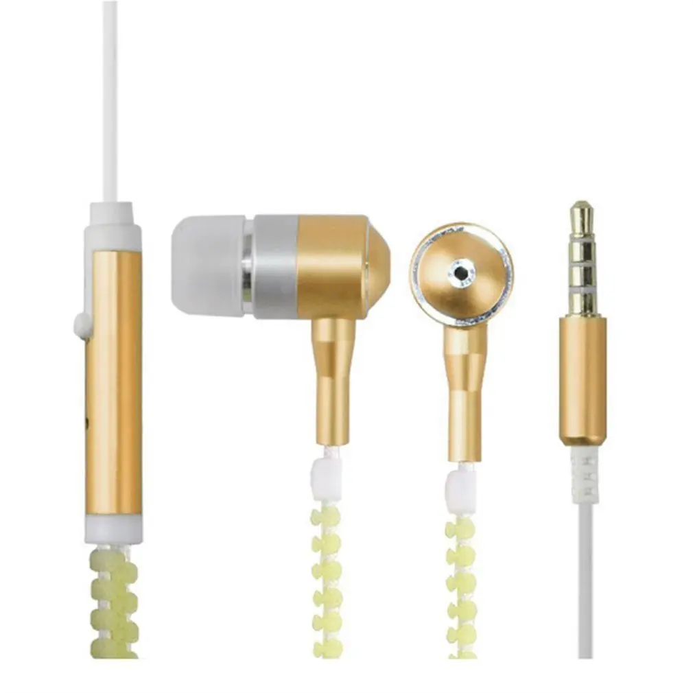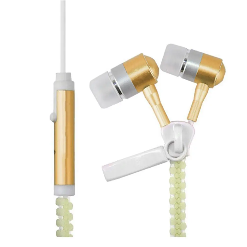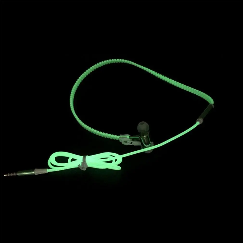 Wired Earphone Luminous Light Zipper earphone 3.5mm Audio Jack Earbuds Glow In The Dark In-ear with Mic