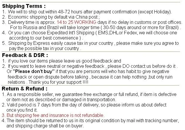 “Any dispute / Direct negative feedback” before contact means “Buyer bad ” !! And not welcome such buyer !! Please go away !! ( Because business is cooperation ,not fight each other ) .