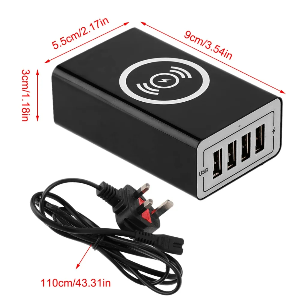 Wireless Charging Station With 4 USB Ports Tablet Cell Phone Charger EU/US/UK/AU Plug Universal For iphone Huawei Xiaomi HTC