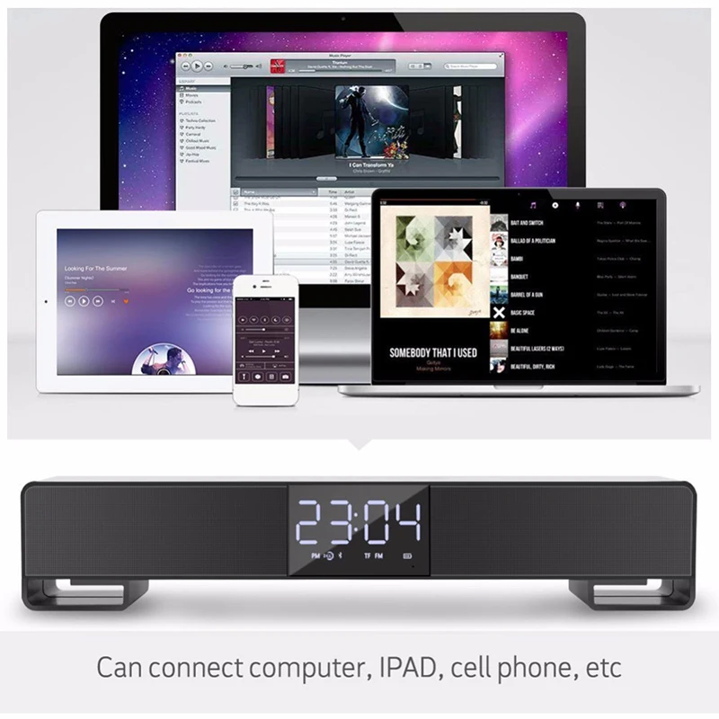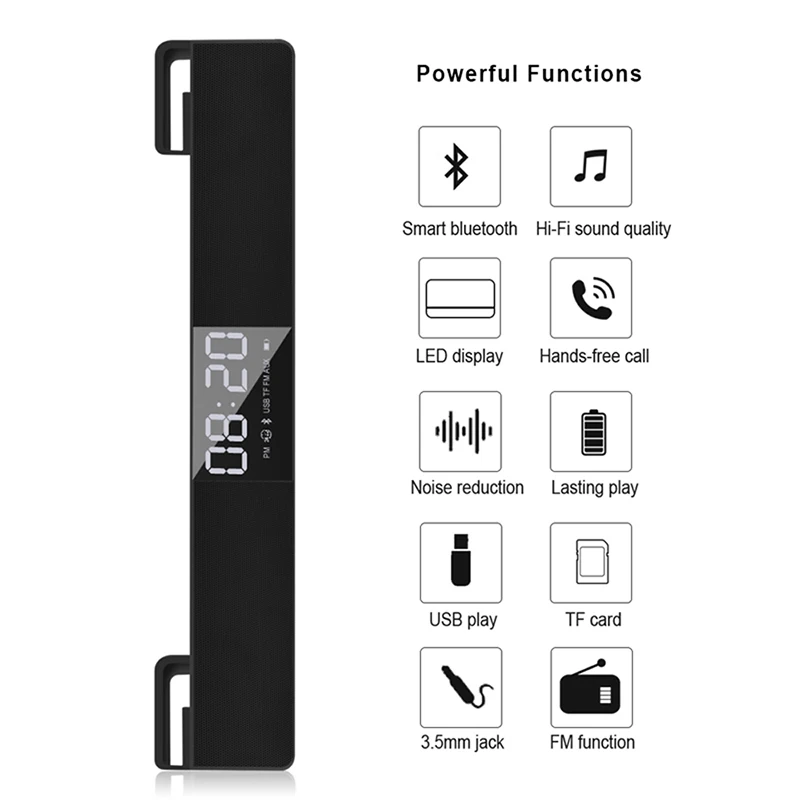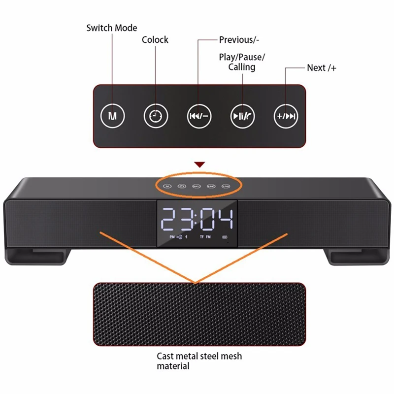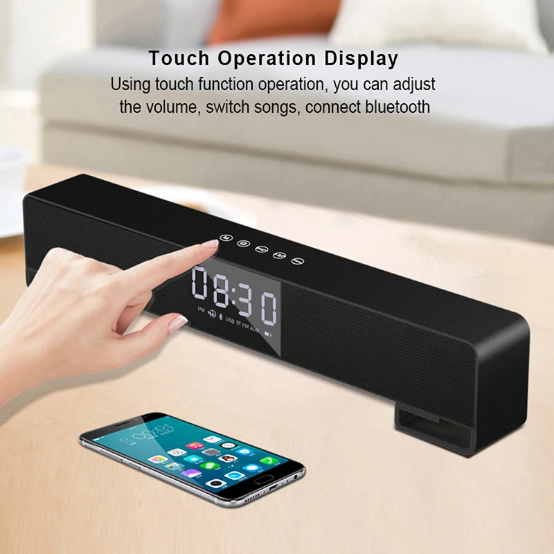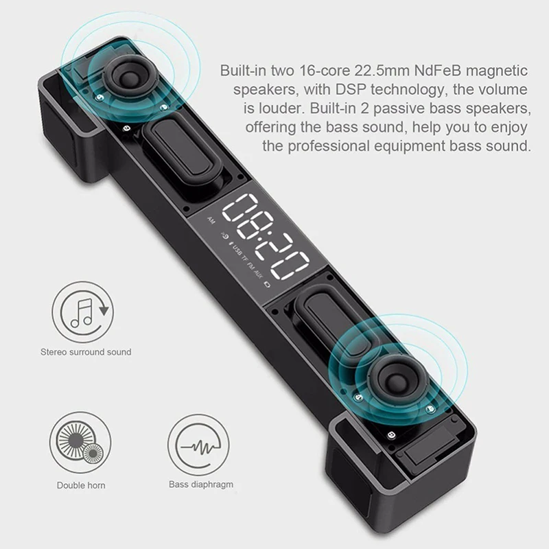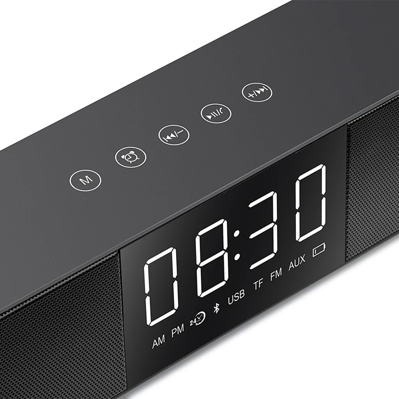 Wireless Stereo Speakers Bass Radio Alarm Clock Portable Bluetooth Music Speaker Soundbar With LCD Screen FM TF AUX USB Boombox