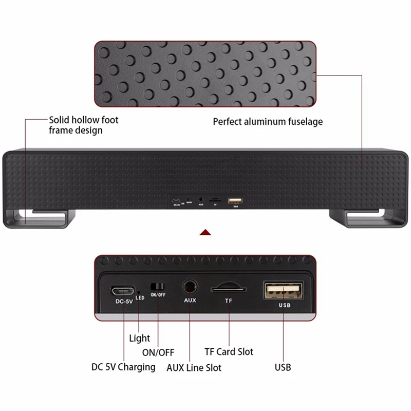 4.AUX input supported, connect to computer, tablet, mobile phone etc. with 3.5mm audio cable