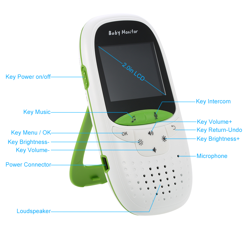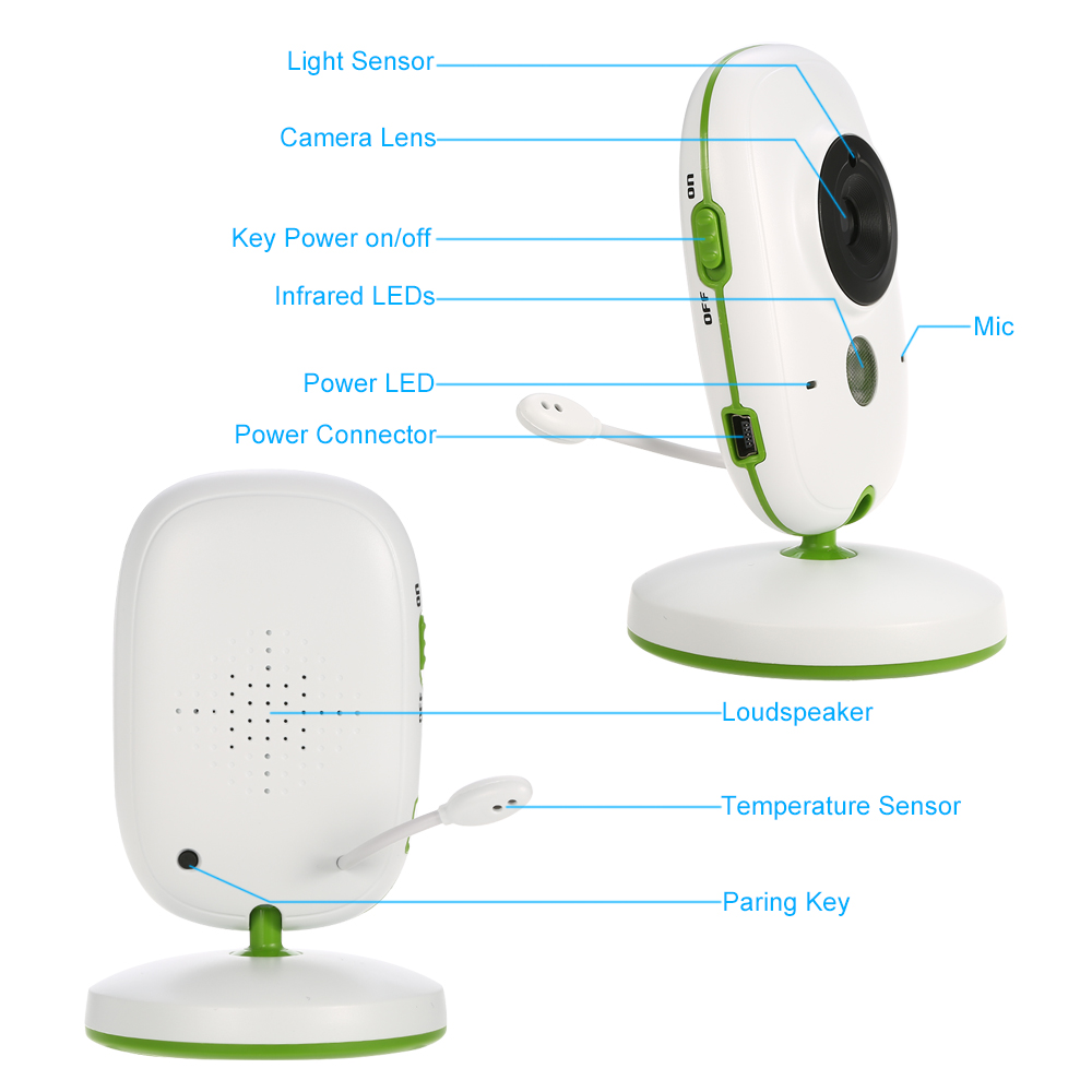 Wireless Video Baby Monitor 2.0in LCD Color Security Camera 2.4GHz 2 Way Talk NightVision Temperature Monitor with 8 Lullabies