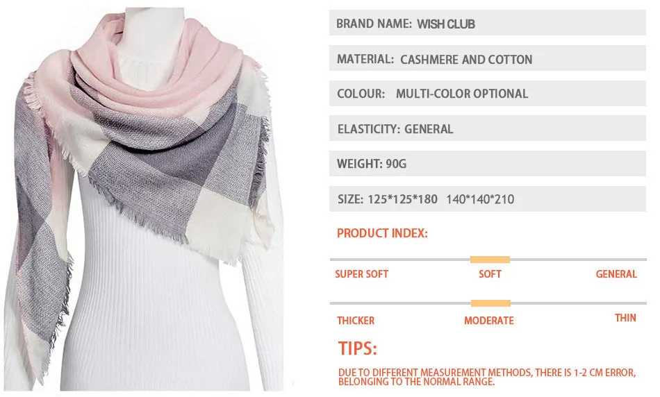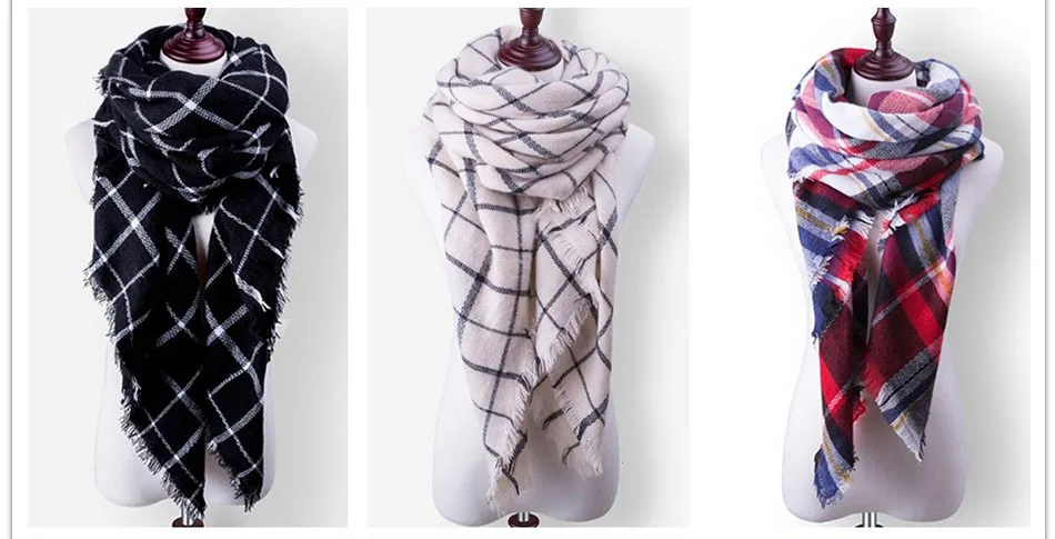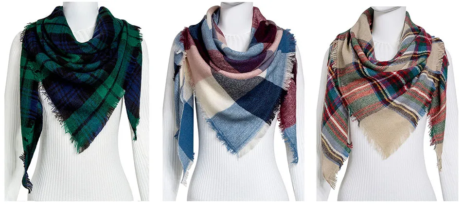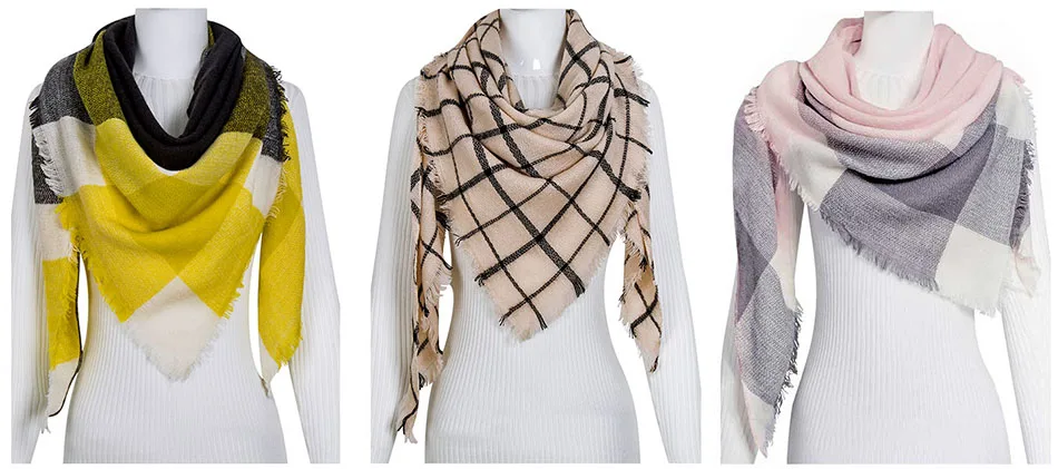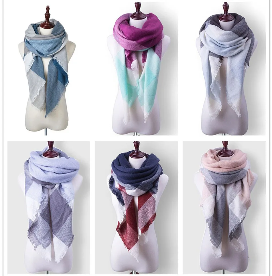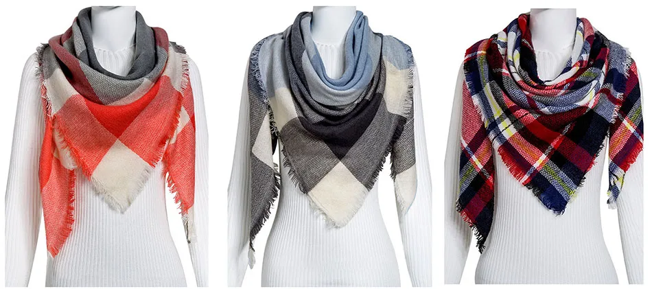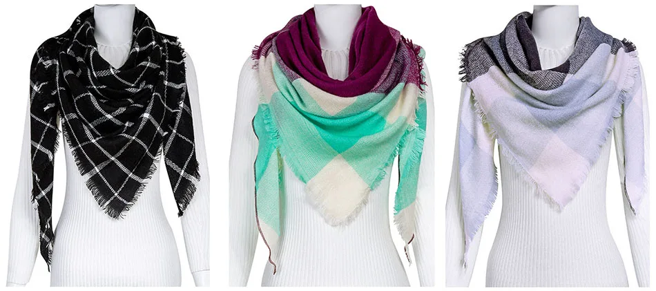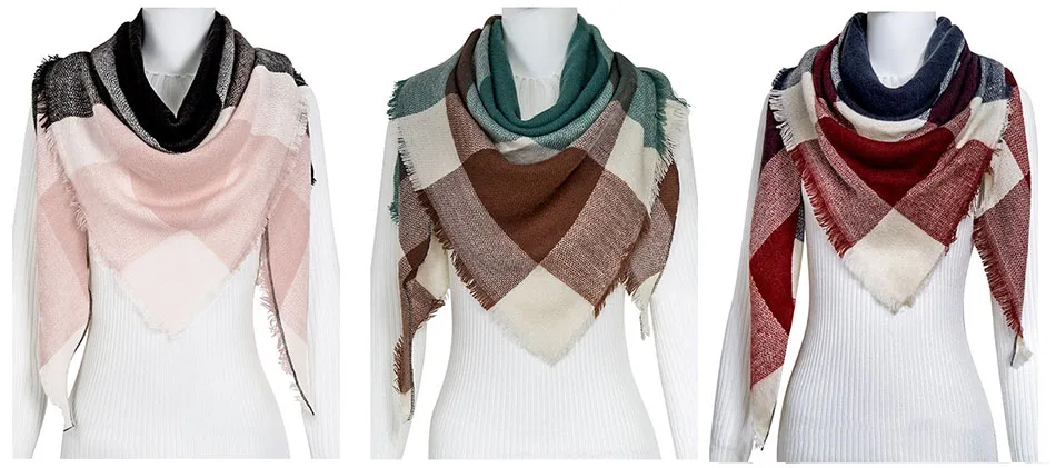WISHCLUB Plaid Winter Scarf Ladies Brand Warm Scarves Women Fashion Triangle Winter Shawl Blanket Scarf Female Dropshipping gift