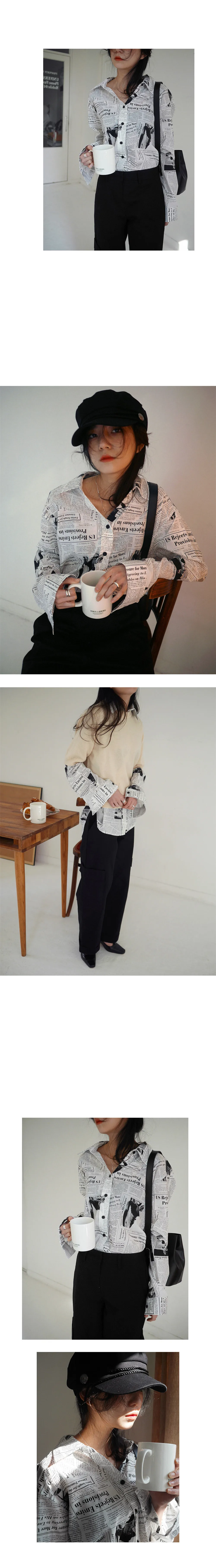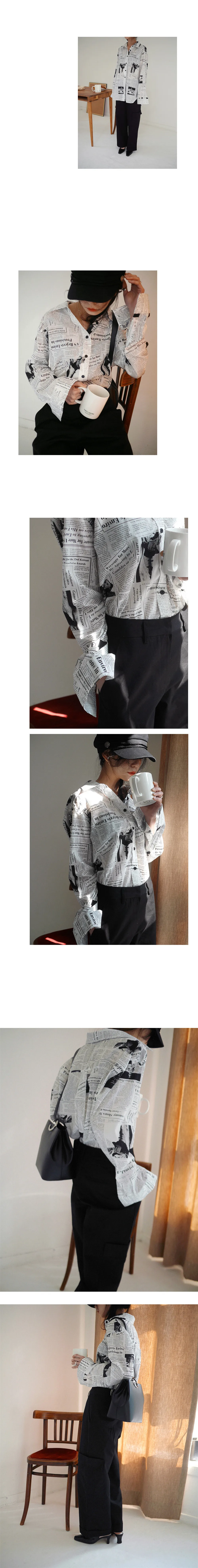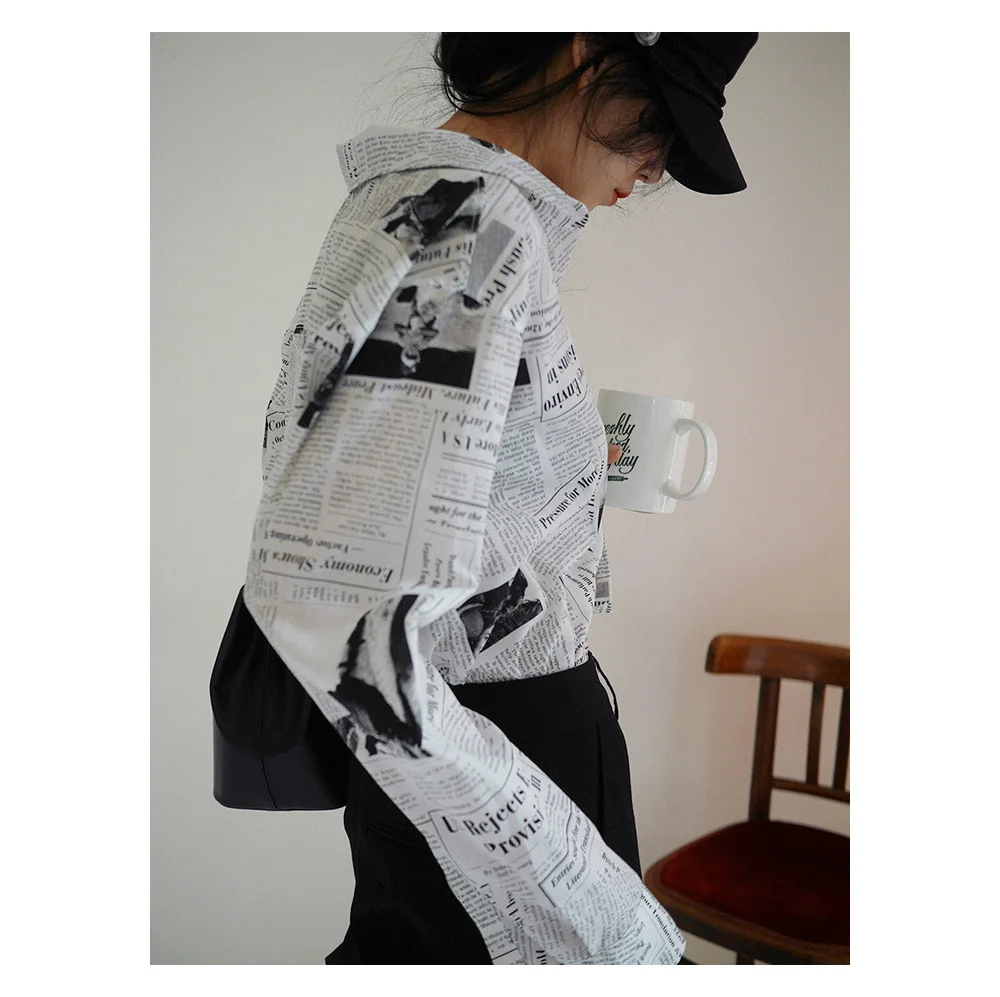 WKOUD EAM Clothes / 2018 New Fashion Long Sleeve Black White Letter Newspaper Print Loose Casual Shirt Women’s Blouse YE18700