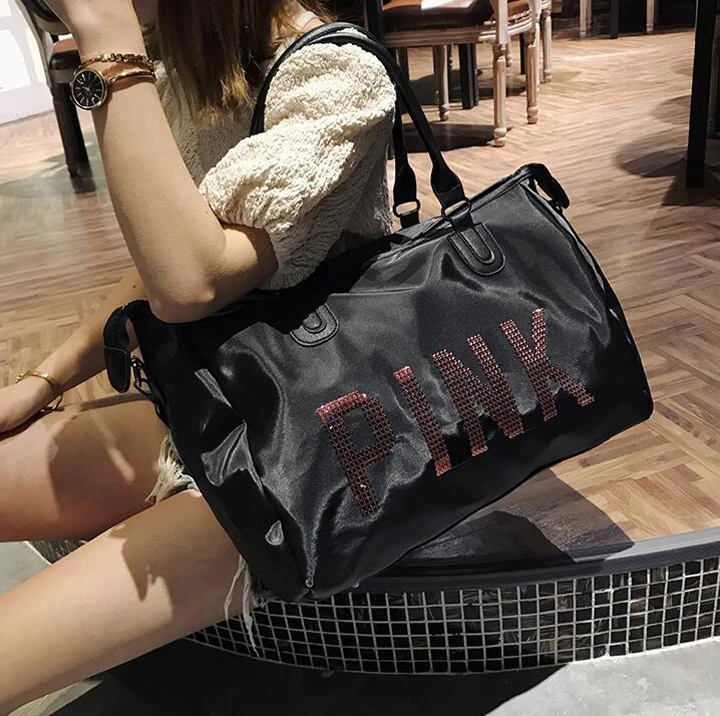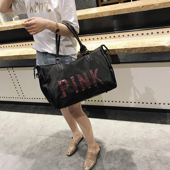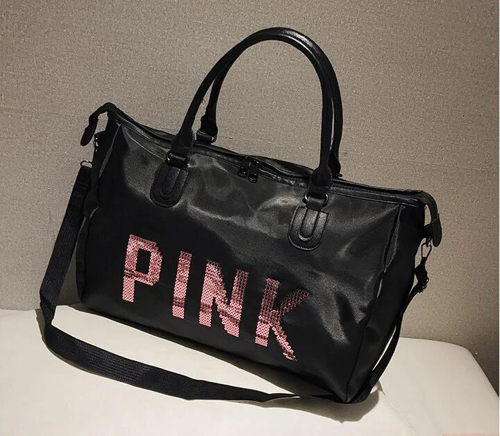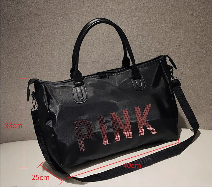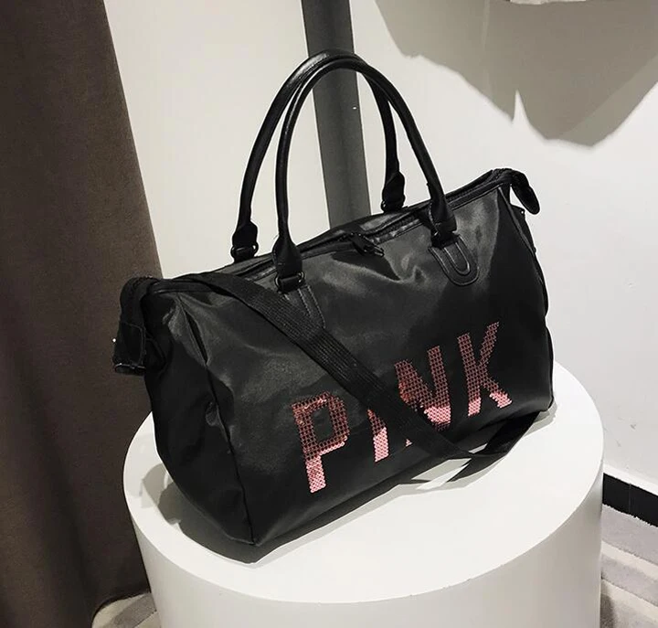 Wobag Ladies Travel Bag Pink Sequins Shoulder Bag Women Handbag Ladies Weekend Portable Duffel Bag Waterproof Wash Fashion 2018
