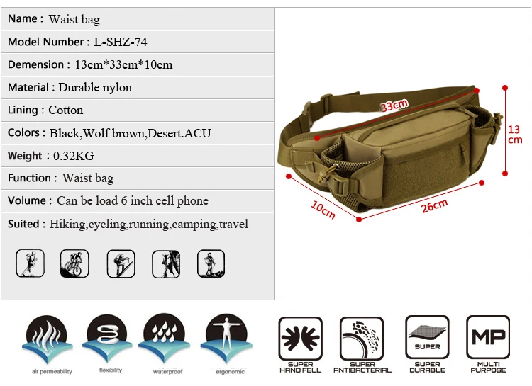 WOLFONROAD Men Tactical Waist Bag Women Running Bottle Waist Bags Outdoor Military Hiking Bags Cycling Bag Pack L-SHZ-74