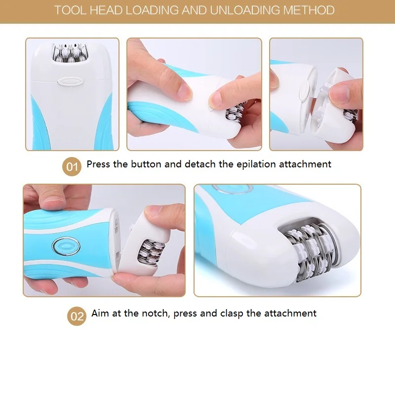 Use VamLuna Advanced depilator on legs, bikini line, underarms, and face. This cordless depilator is designed for sensitive areas and effectively removes hair on the whole body for weeks of smooth skin. The rechargeable electric depilator features a lithium-ion battery that provides 40 minutes of cordless use on wet or dry skin. Multipurpose 3-in-1 depilator, electric shaver and grinder for women comes with the depilator device handle plus 3 attachments to customize your hair removal and skin care.