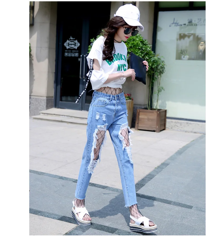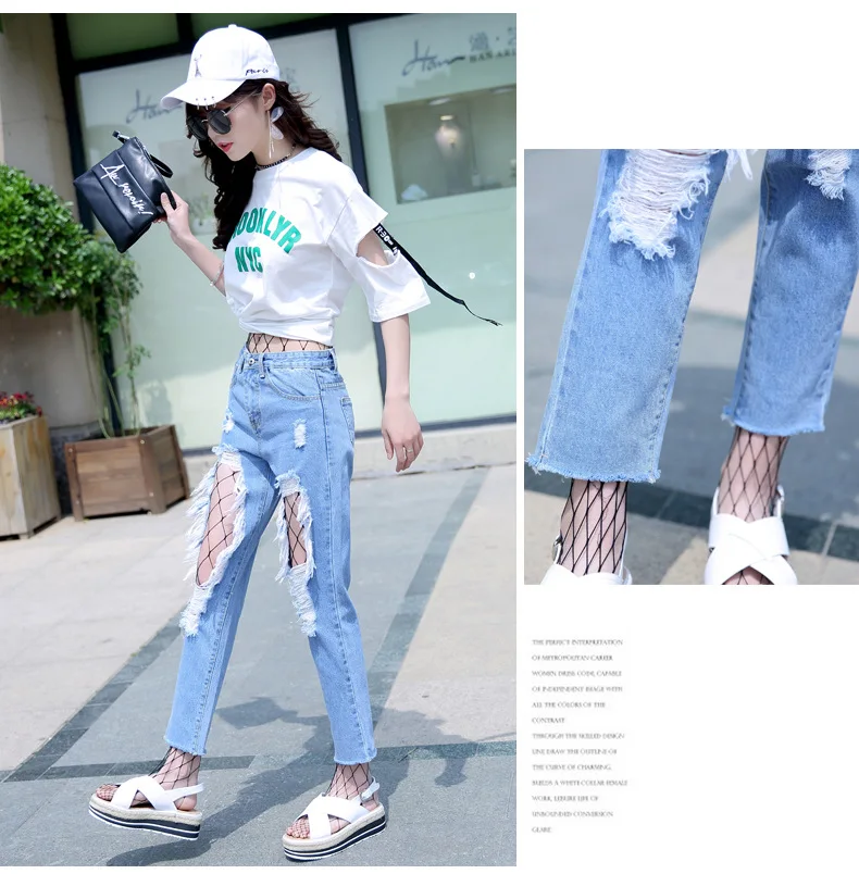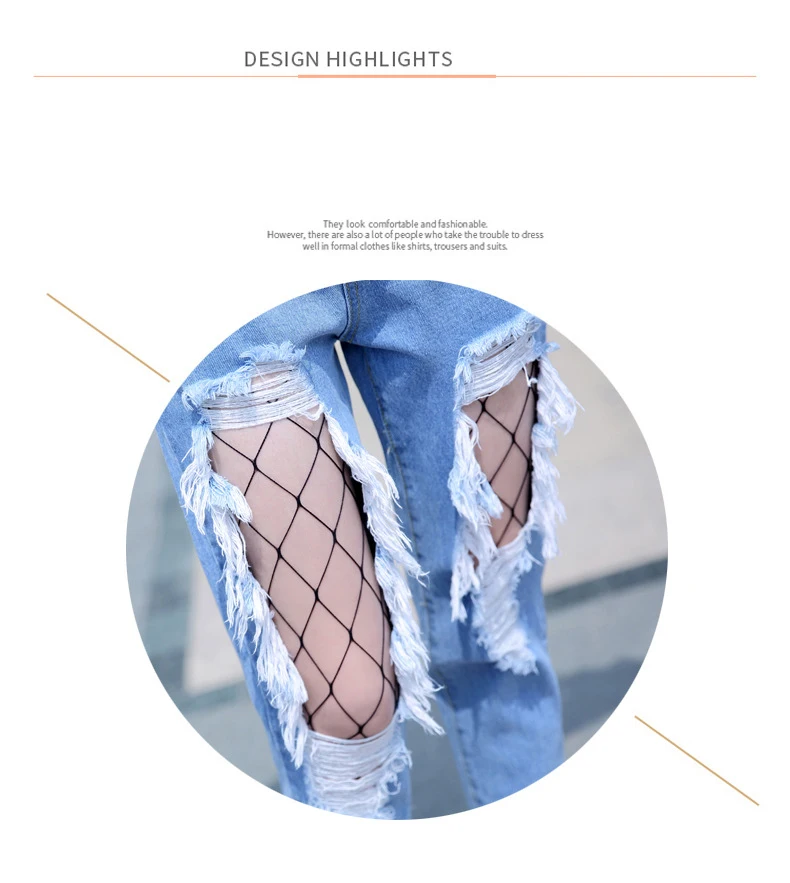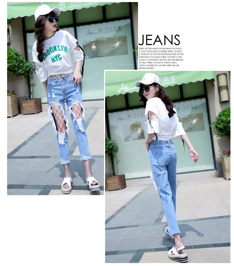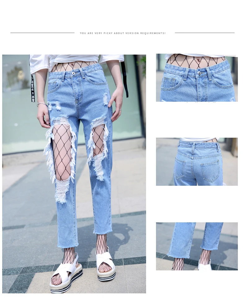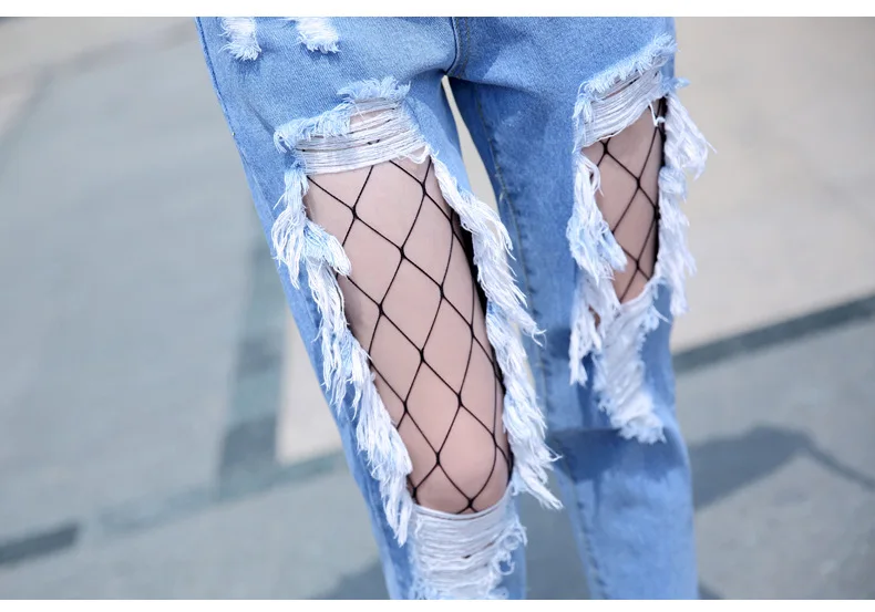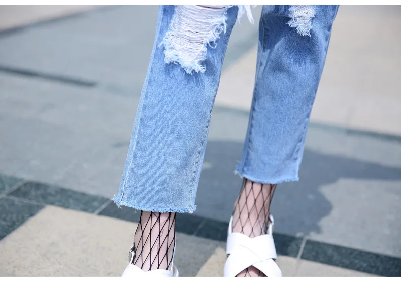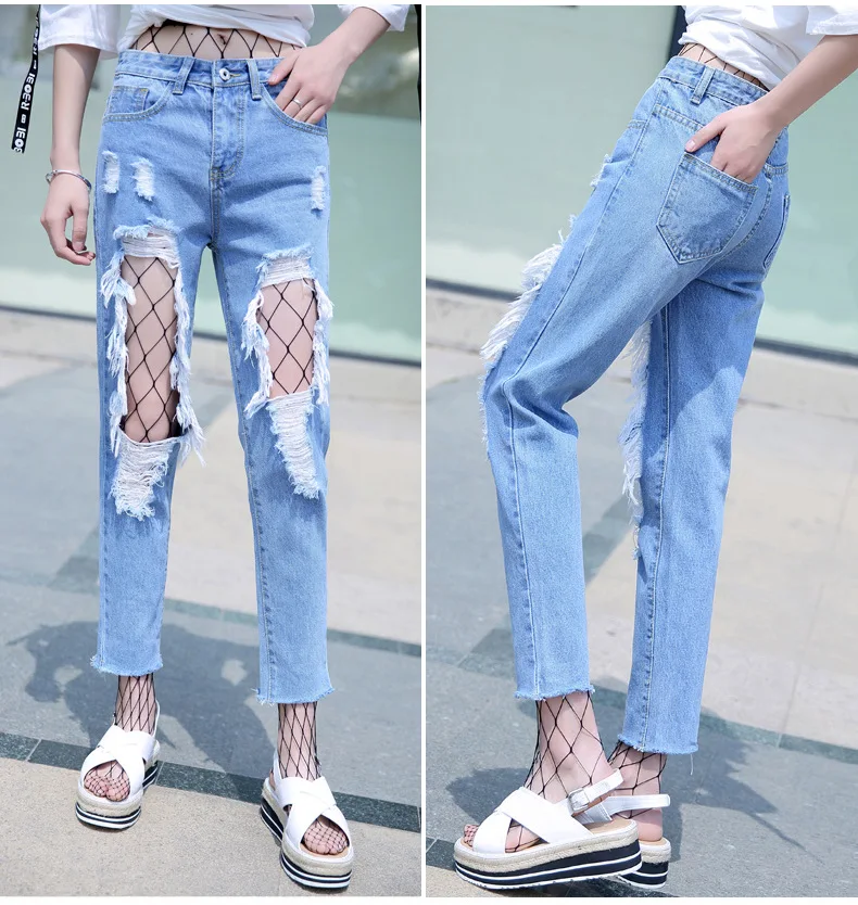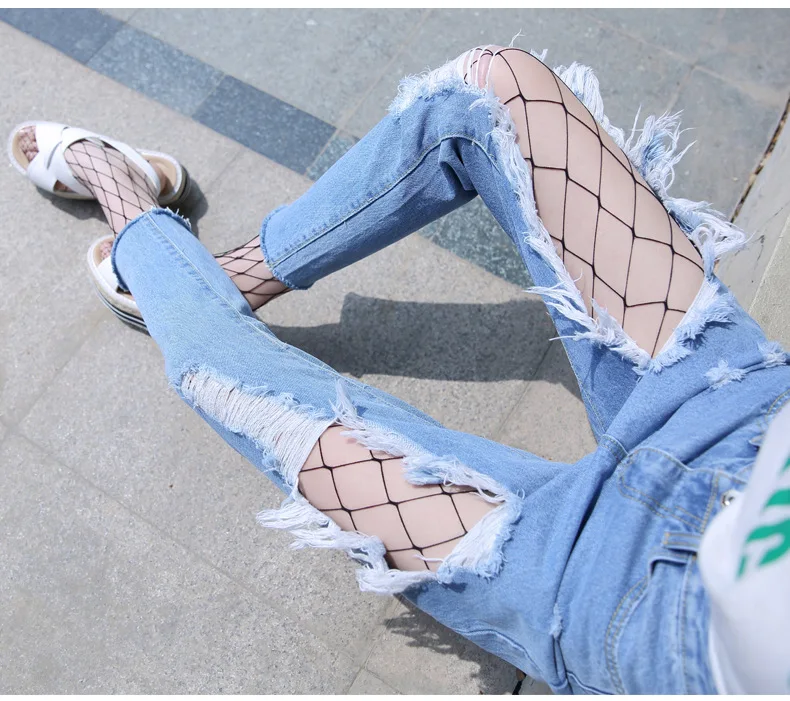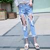 Woman Holes Jeans Ripped Sexy Denim Ankle-Length Pencil Pants Elastic Skinny Blue Regular Women Slim Trousers For Lady Summer