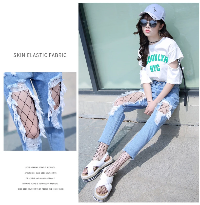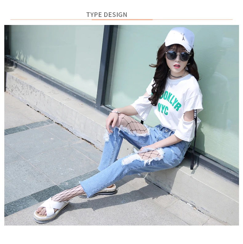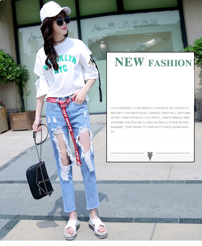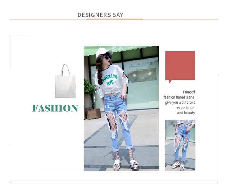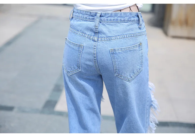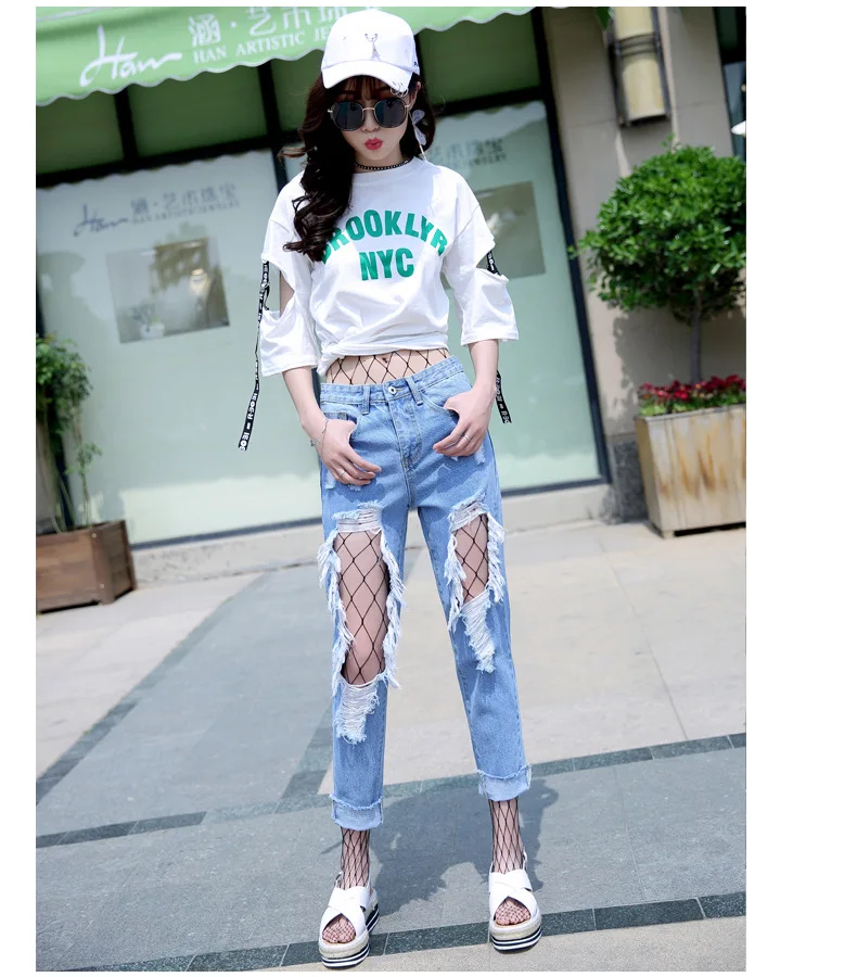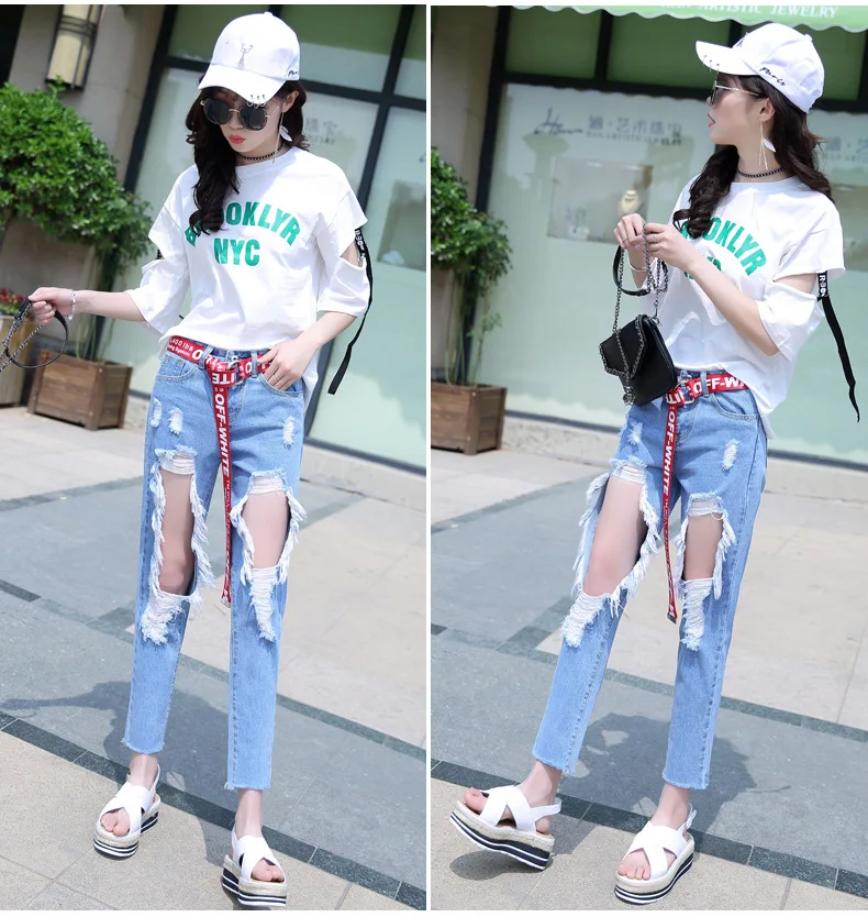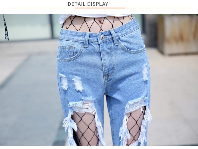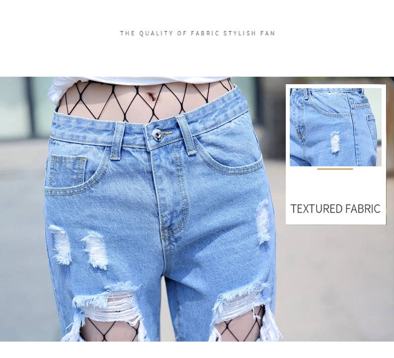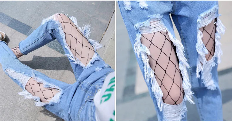 Woman Holes Jeans Ripped Sexy Denim Ankle-Length Pencil Pants Elastic Skinny Blue Regular Women Slim Trousers For Lady Summer
