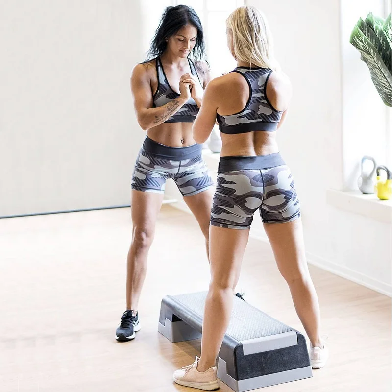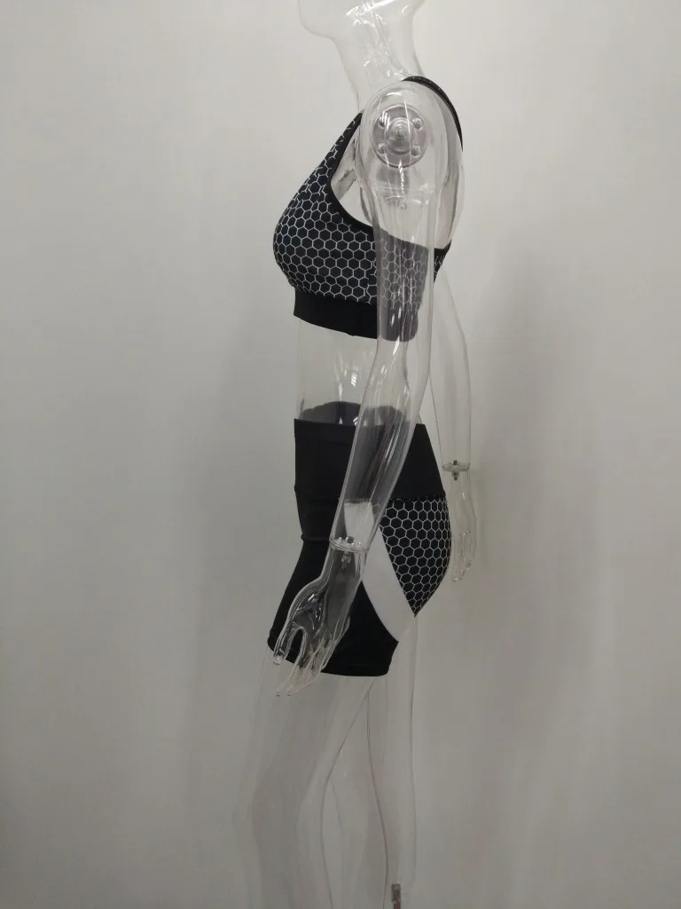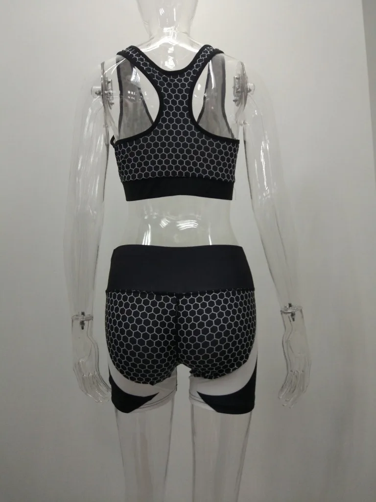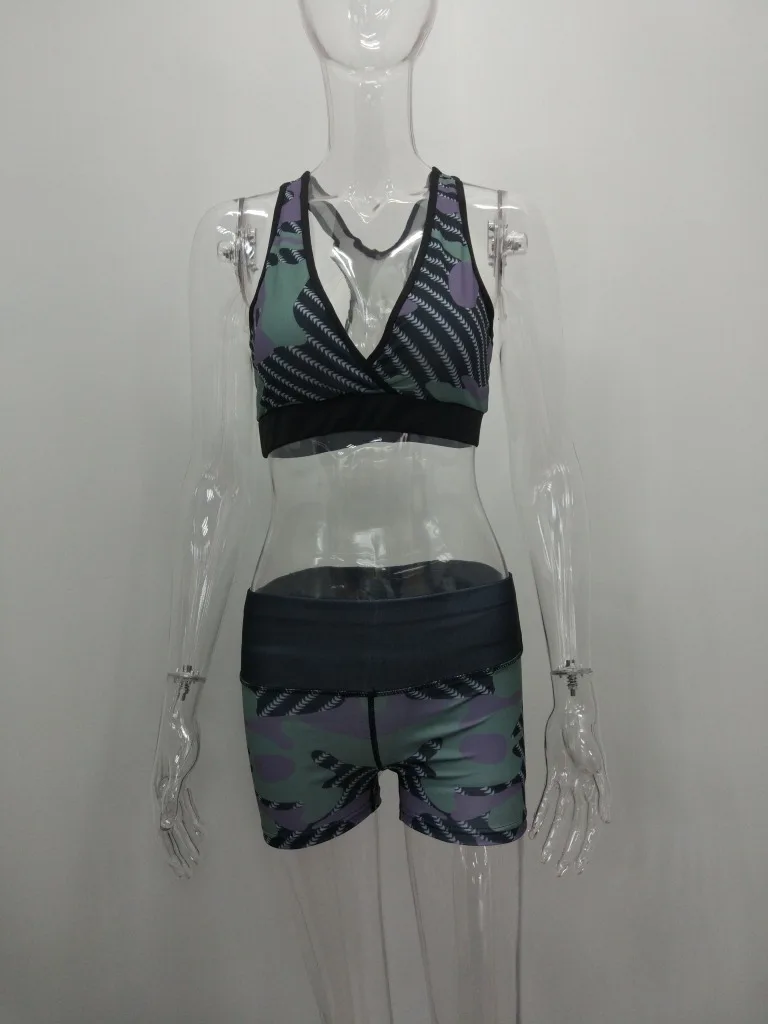 Women 2 PCs Sports Set Bra Vest plus Shorts Printed Slim Running Fitness Gym Sets Women Tight Hot Sport Clothes Set Yoga Suit