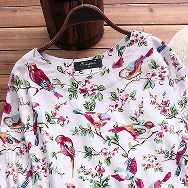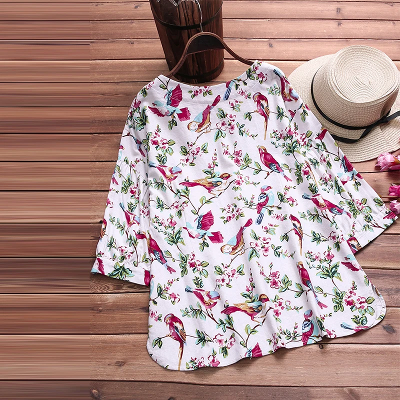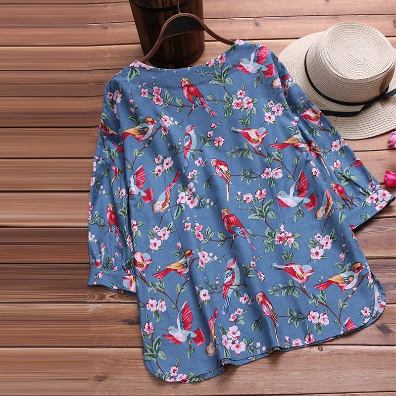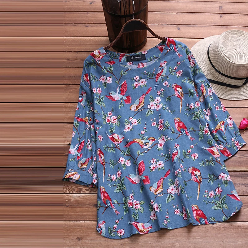 Women 2018 Autumn O Neck 3/4 Sleeve Bohemian Floral Printed Ladies Blouse Casual Vintage Shirt Femme Party Loose Top Blusas