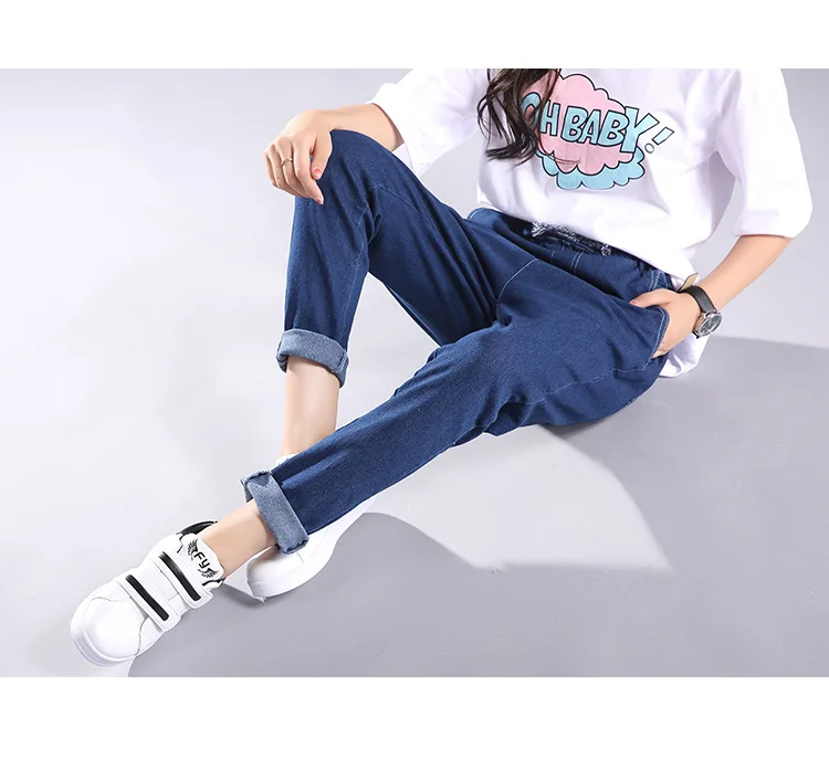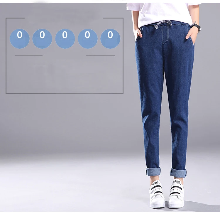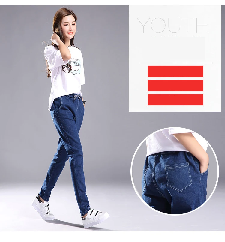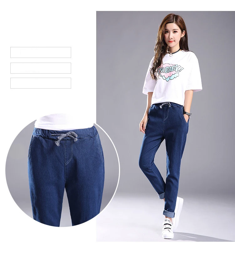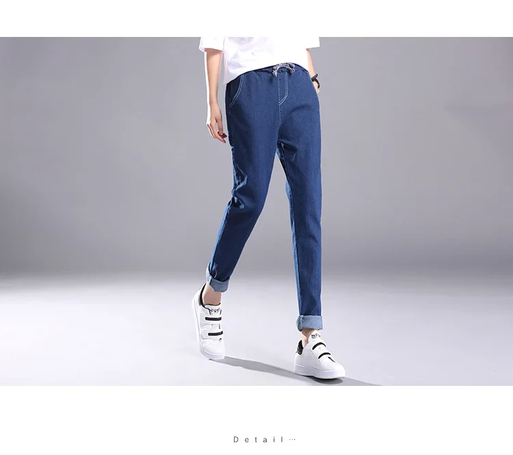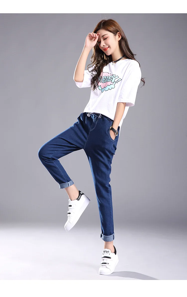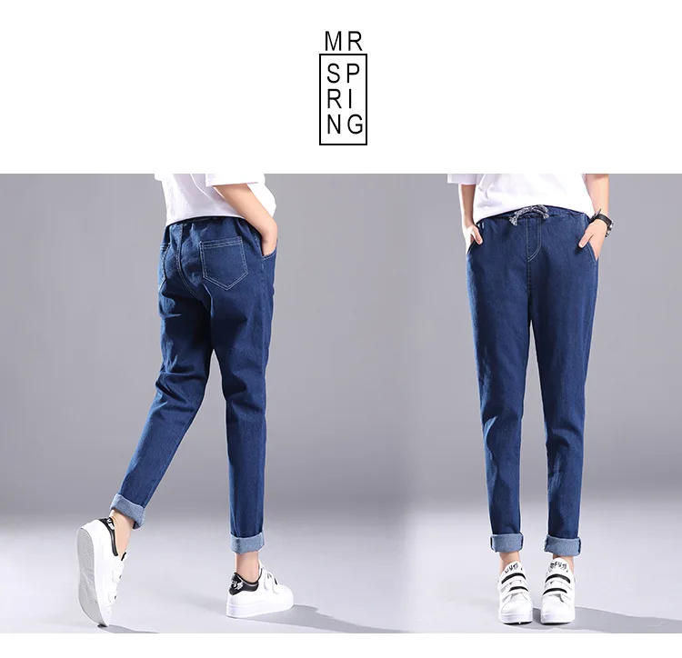 Women 2018 High Waist Jeans Elastic Femme New Fashion Cuffs Washed Blue Denim Loose Harem Jeans Classic Pencil Pants for Summer