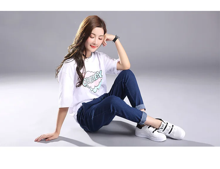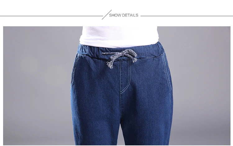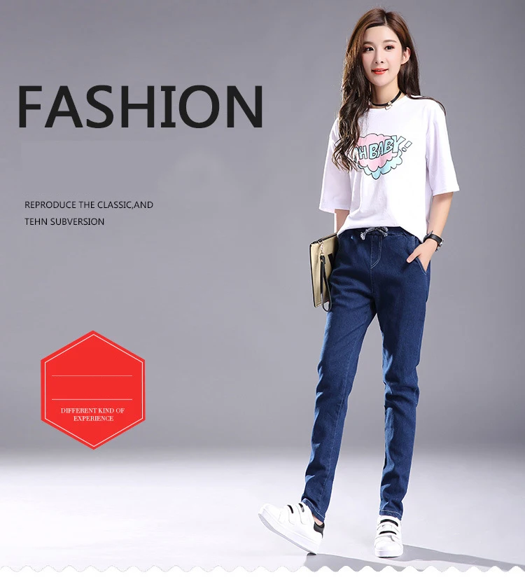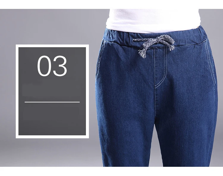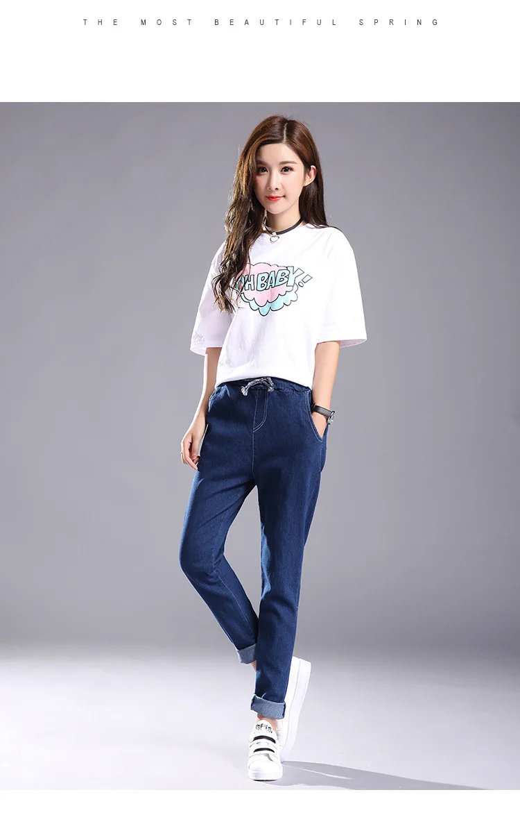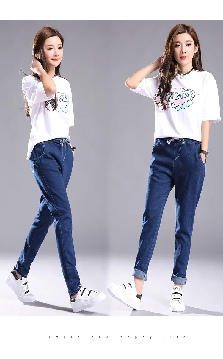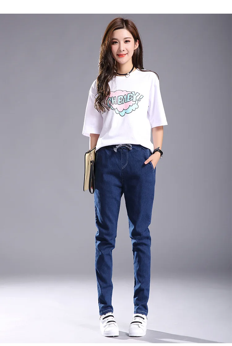 Women 2018 High Waist Jeans Elastic Femme New Fashion Cuffs Washed Blue Denim Loose Harem Jeans Classic Pencil Pants for Summer