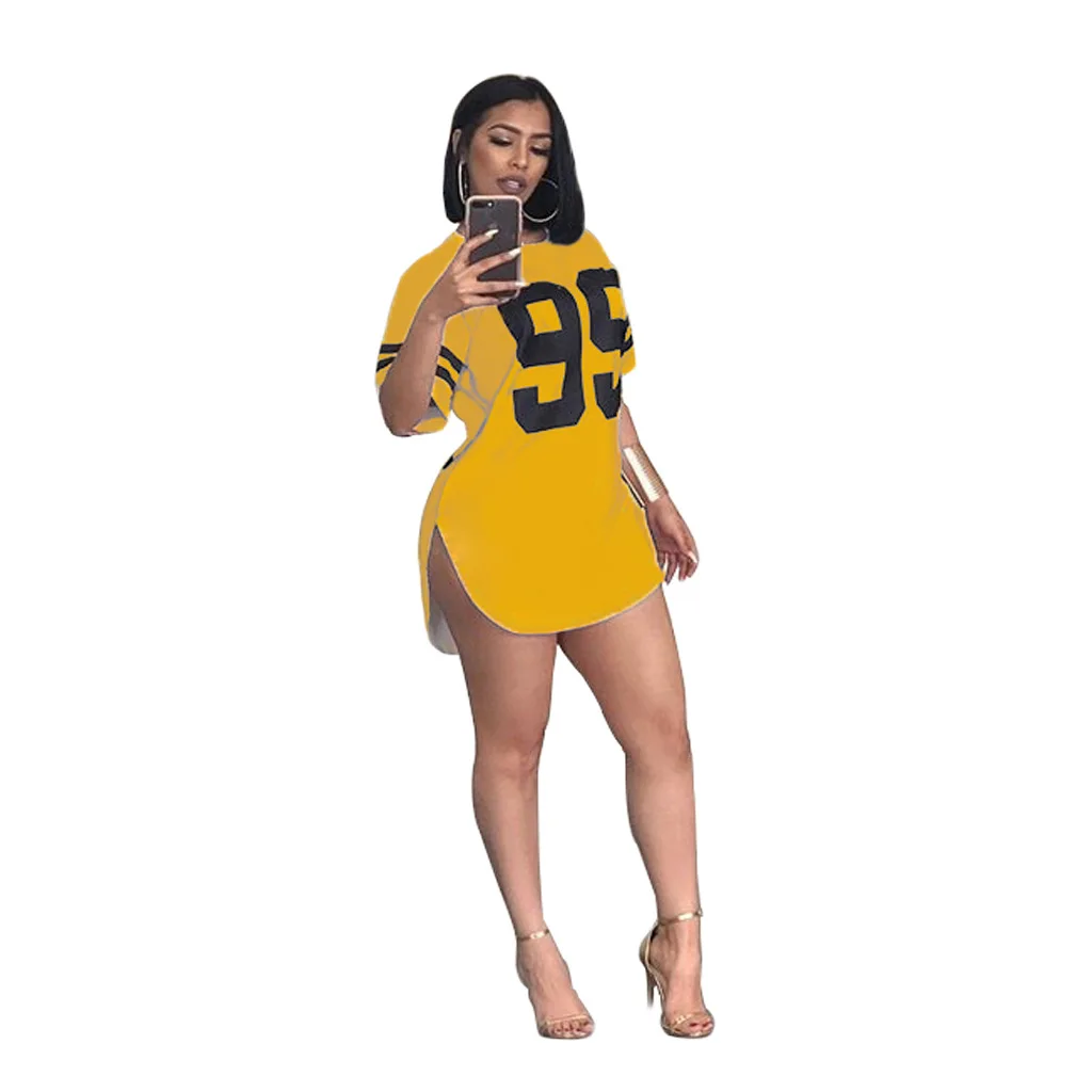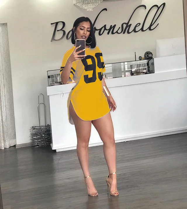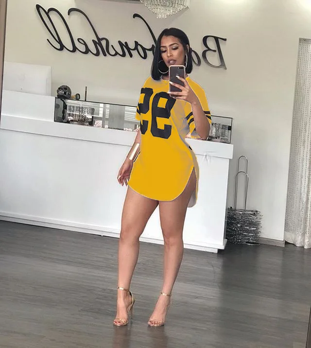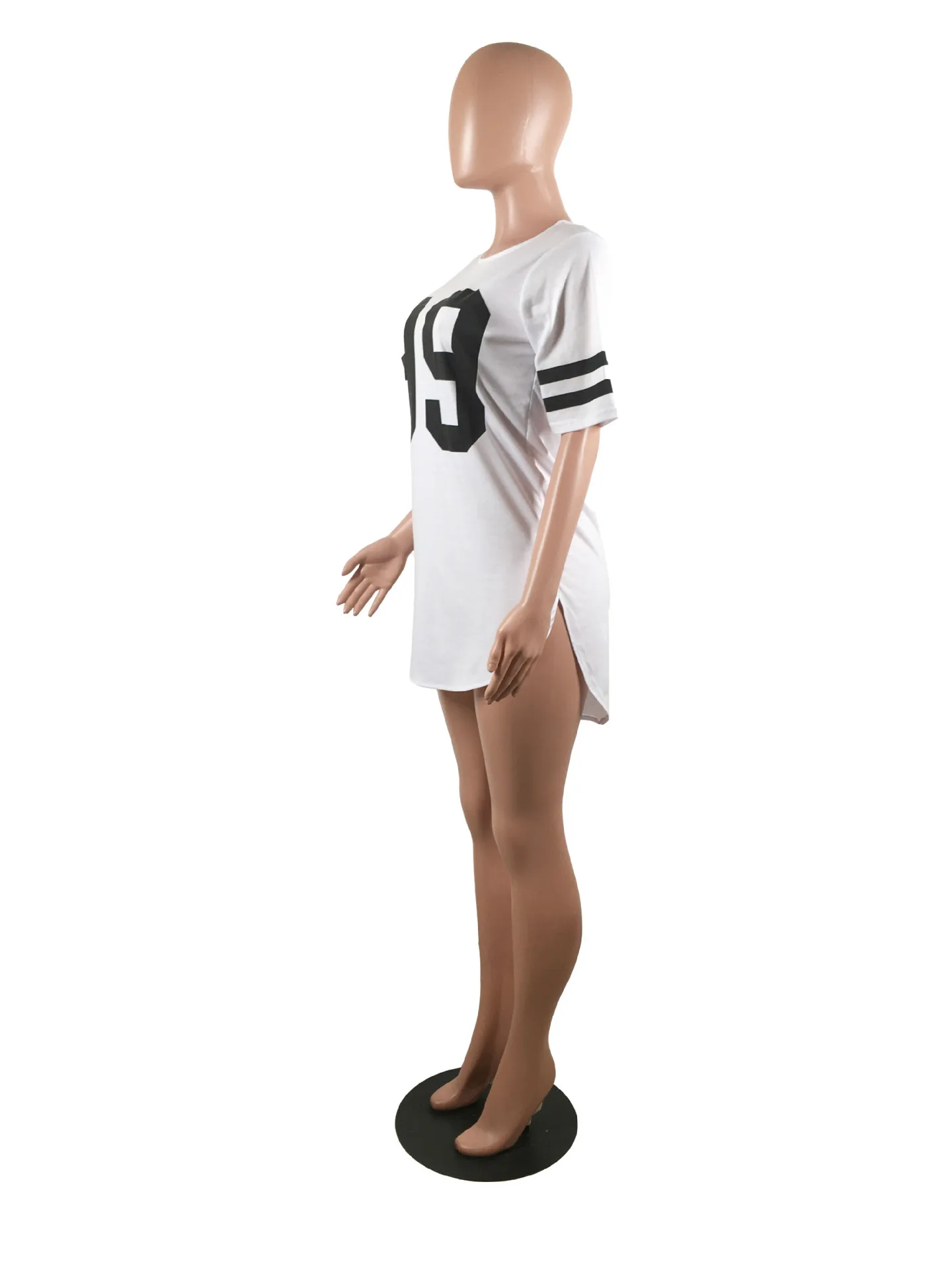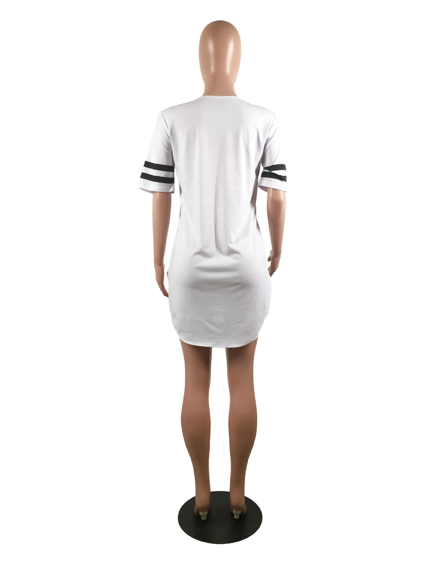 women 95 letter print sexy side slit striped midi t-shirt dress mini tee bodycon party club dresses 3 colors plus size WY6427