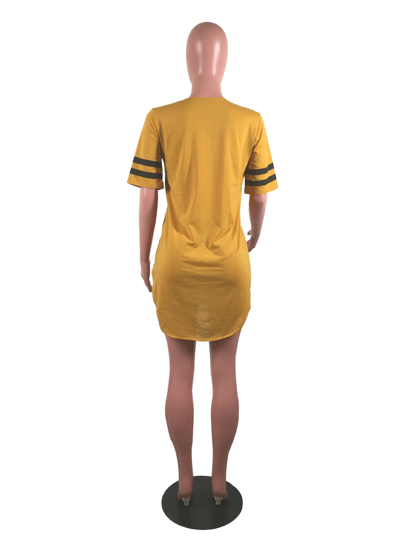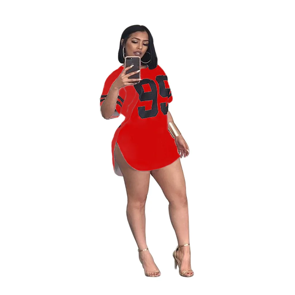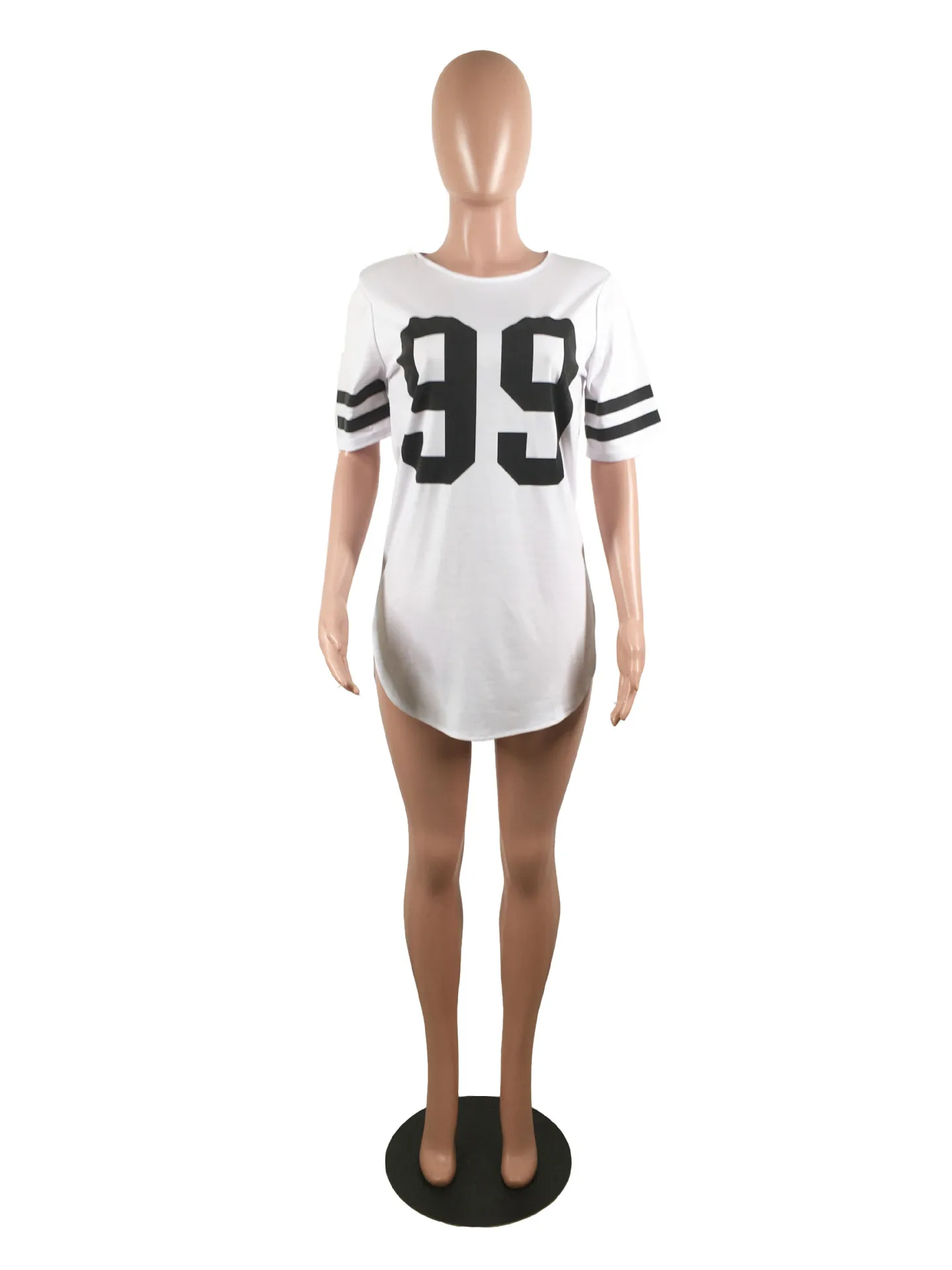 women 95 letter print sexy side slit striped midi t-shirt dress mini tee bodycon party club dresses 3 colors plus size WY6427