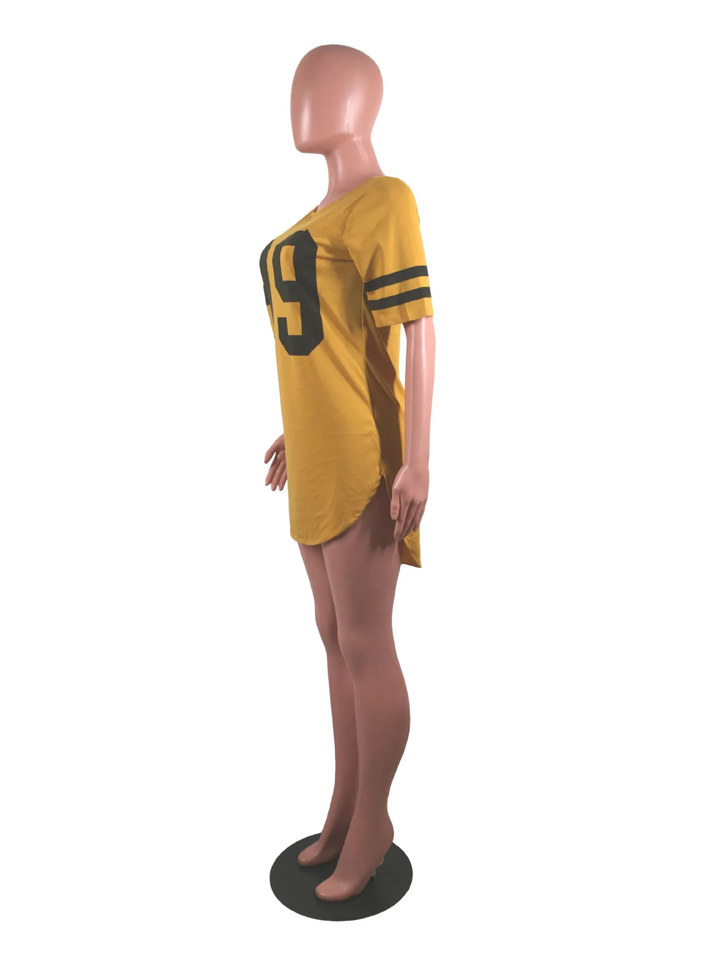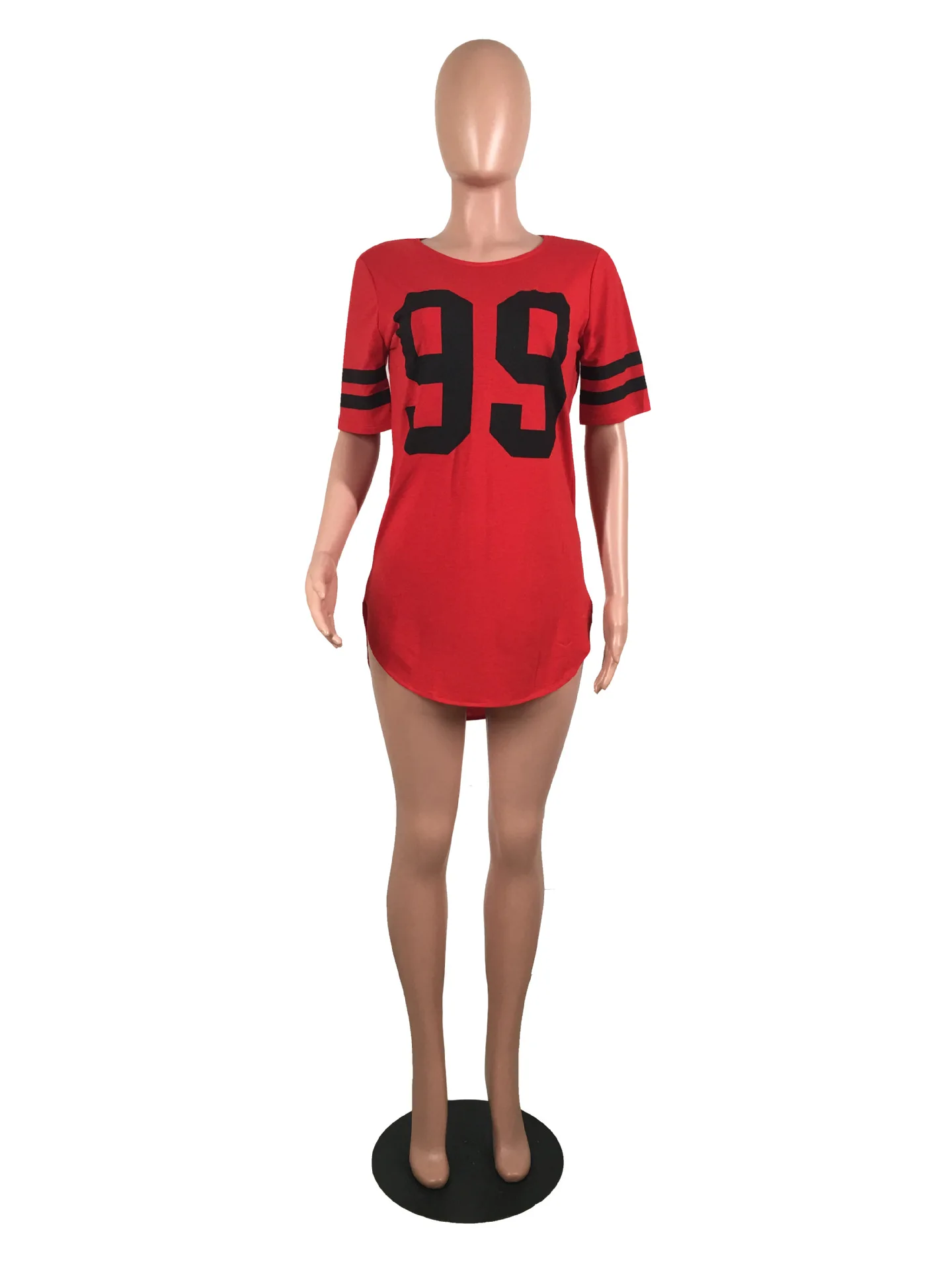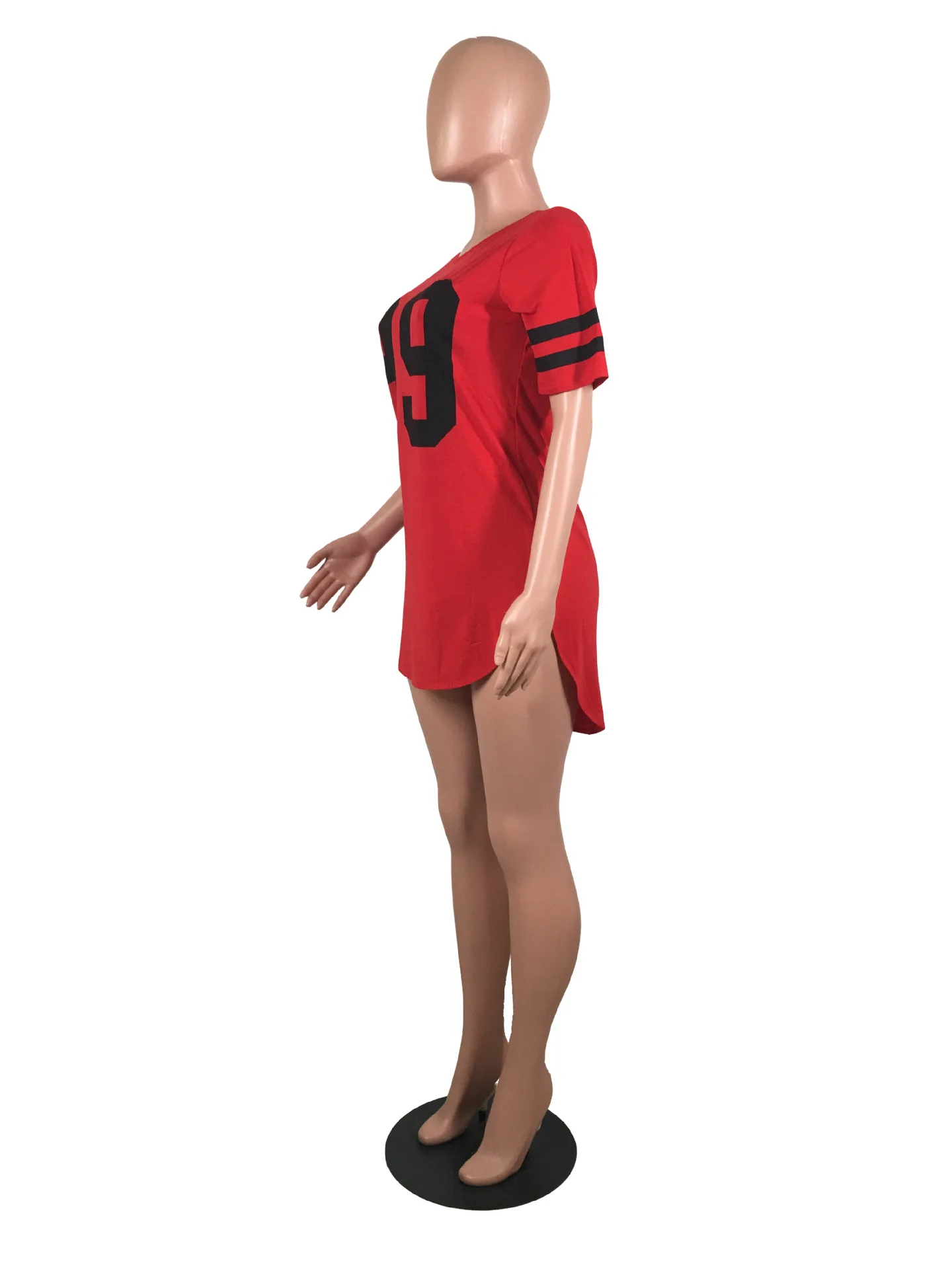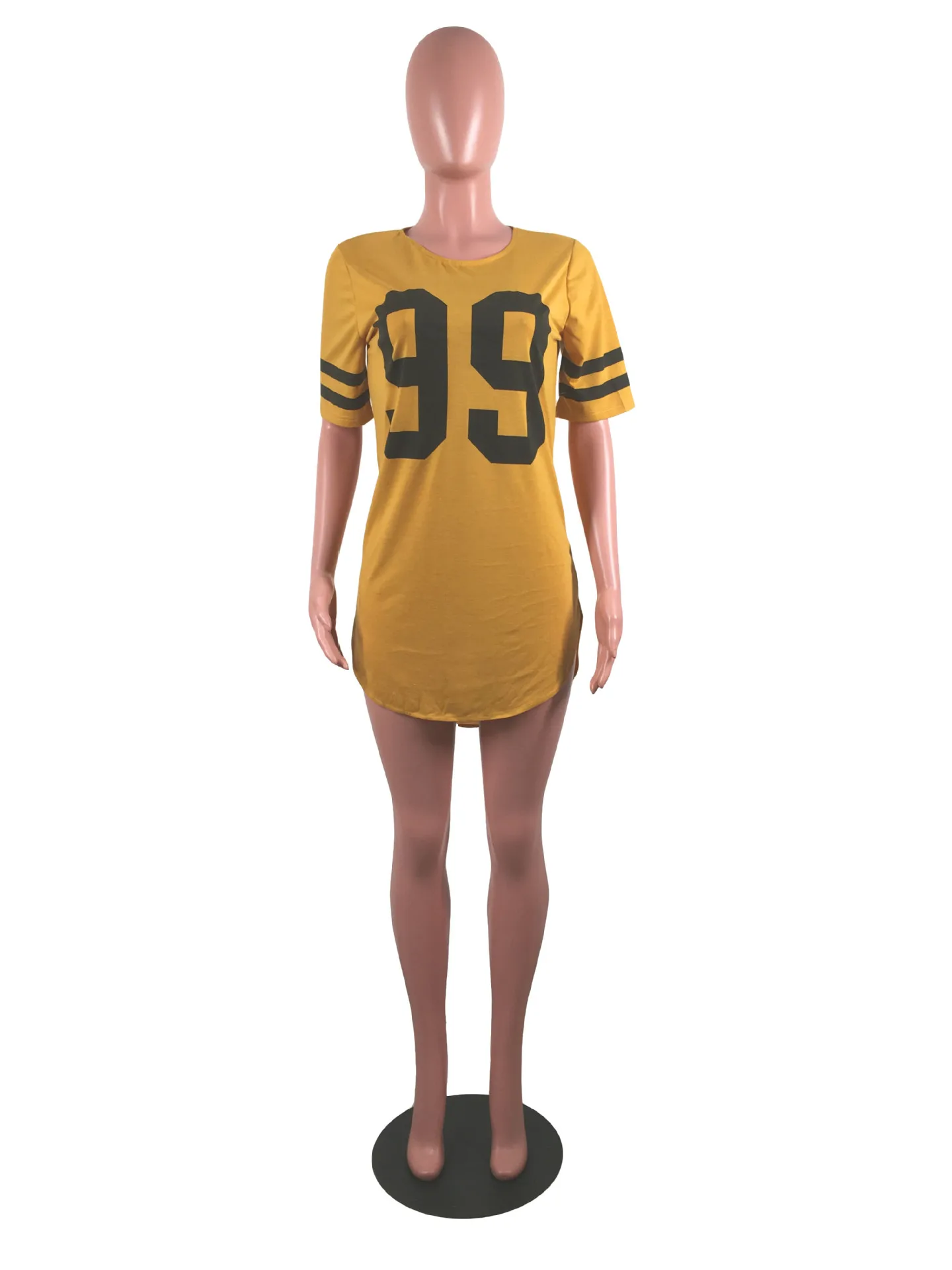 women 95 letter print sexy side slit striped midi t-shirt dress mini tee bodycon party club dresses 3 colors plus size WY6427