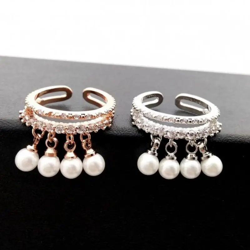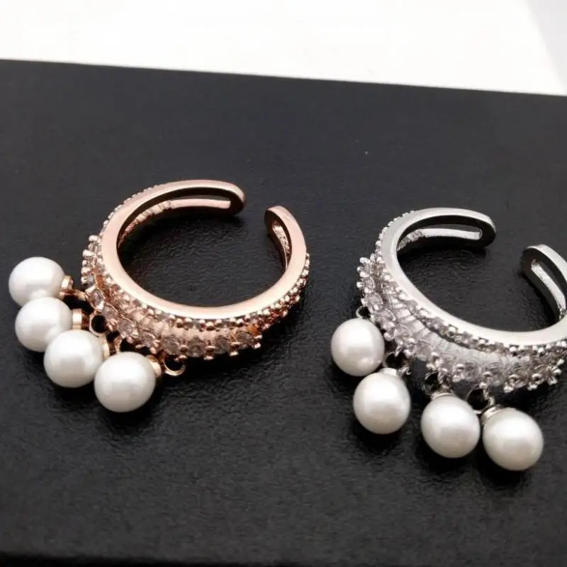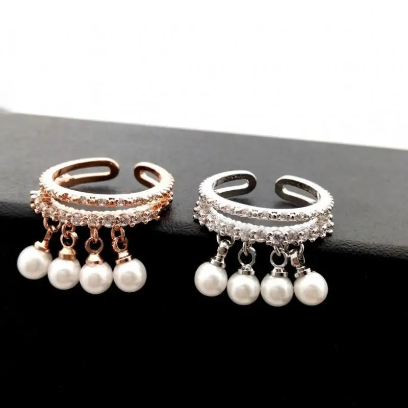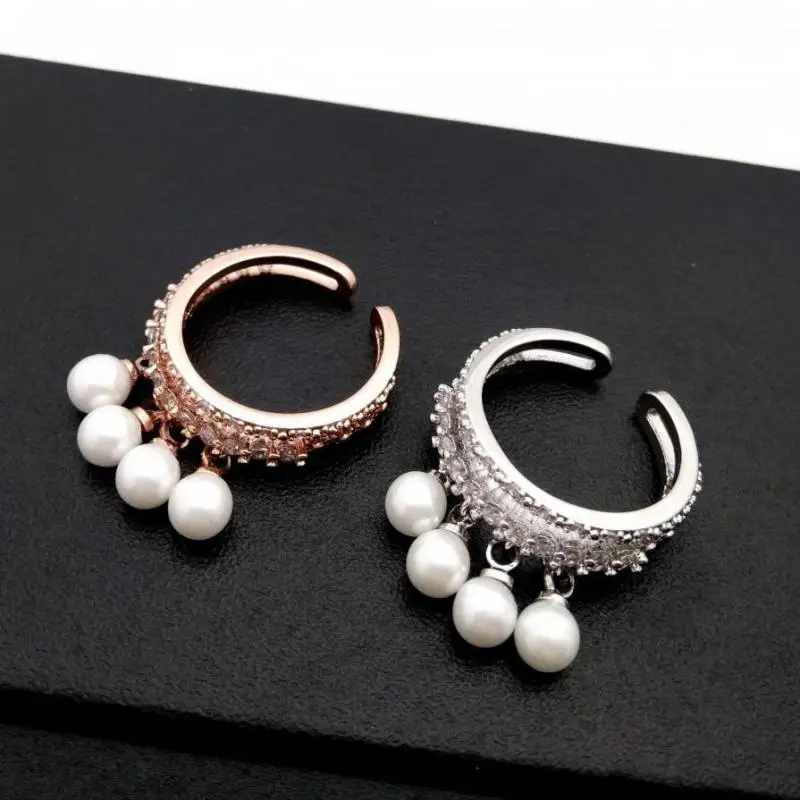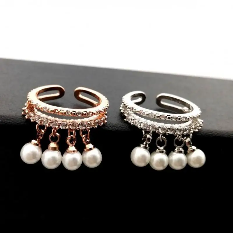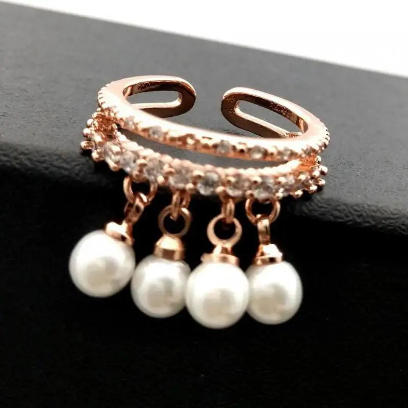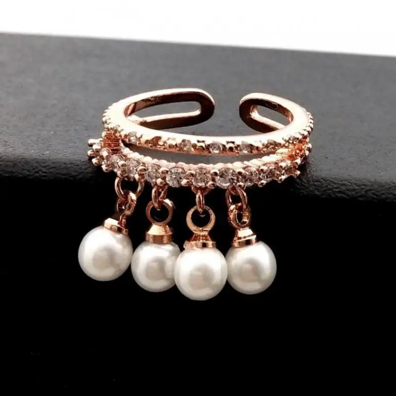Women Adjustable Ring Rose Gold-color Simulated Pearl Jewelry Rings With Micro Pave Zircon Decoration Fine Gift