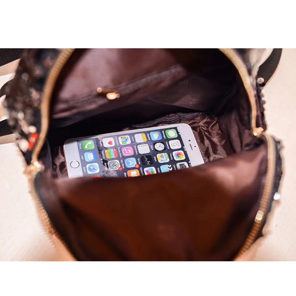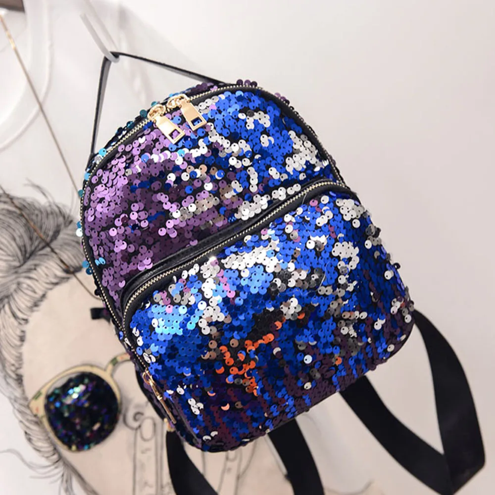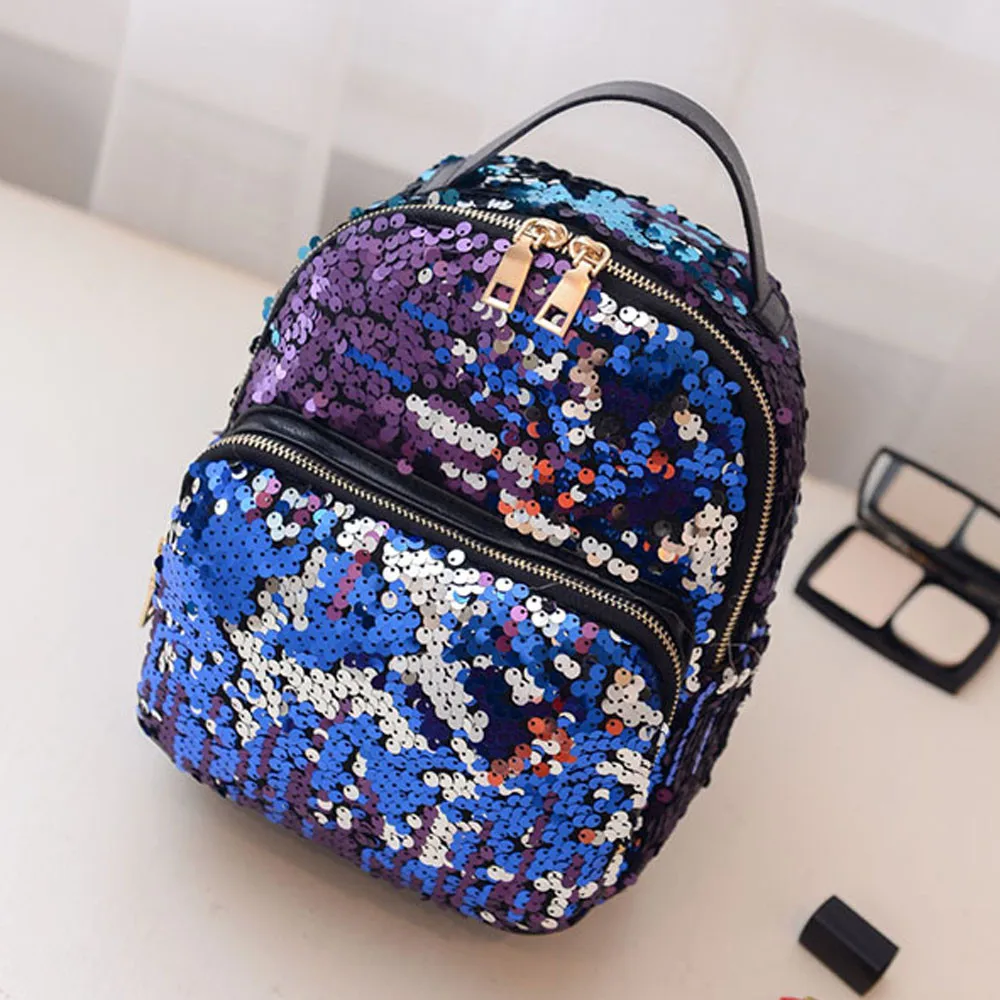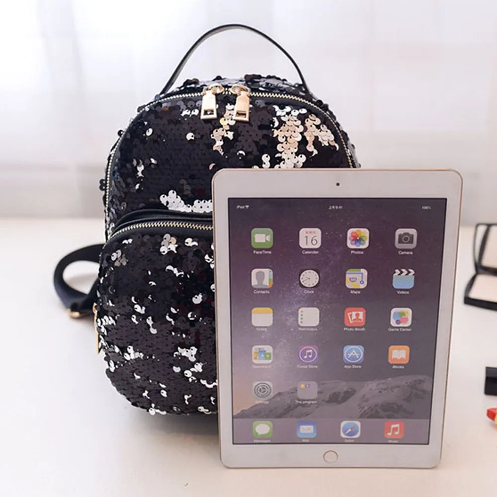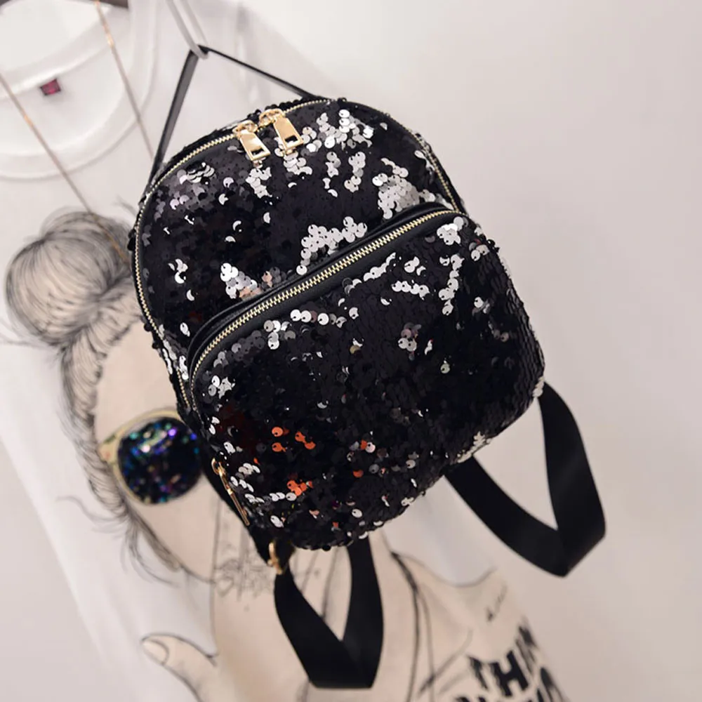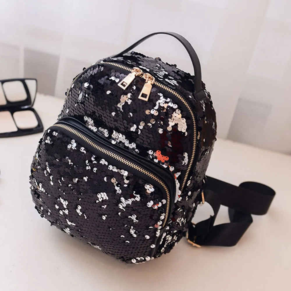 Women All-match Bag PU Leather Sequins Backpack Girls Small Travel Princess Bling Backpacks Mochila Feminina New Arrival#23