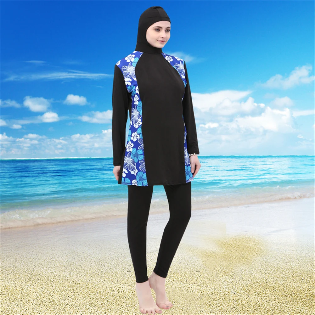 Women Arabian Muslim Islamic Swimwear 2 Pieces Connected Hijab Conservative Swimsuit Hui Nationality Swimwear Burkinis Plus Size