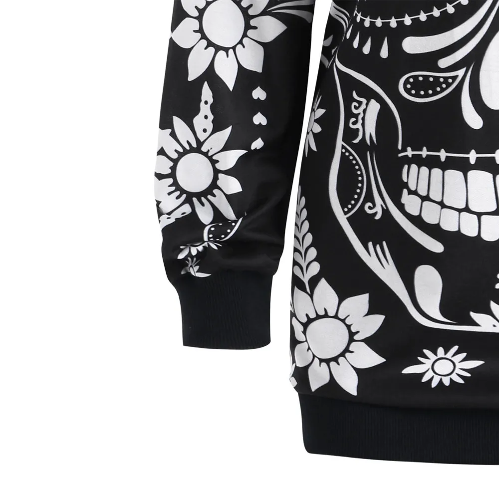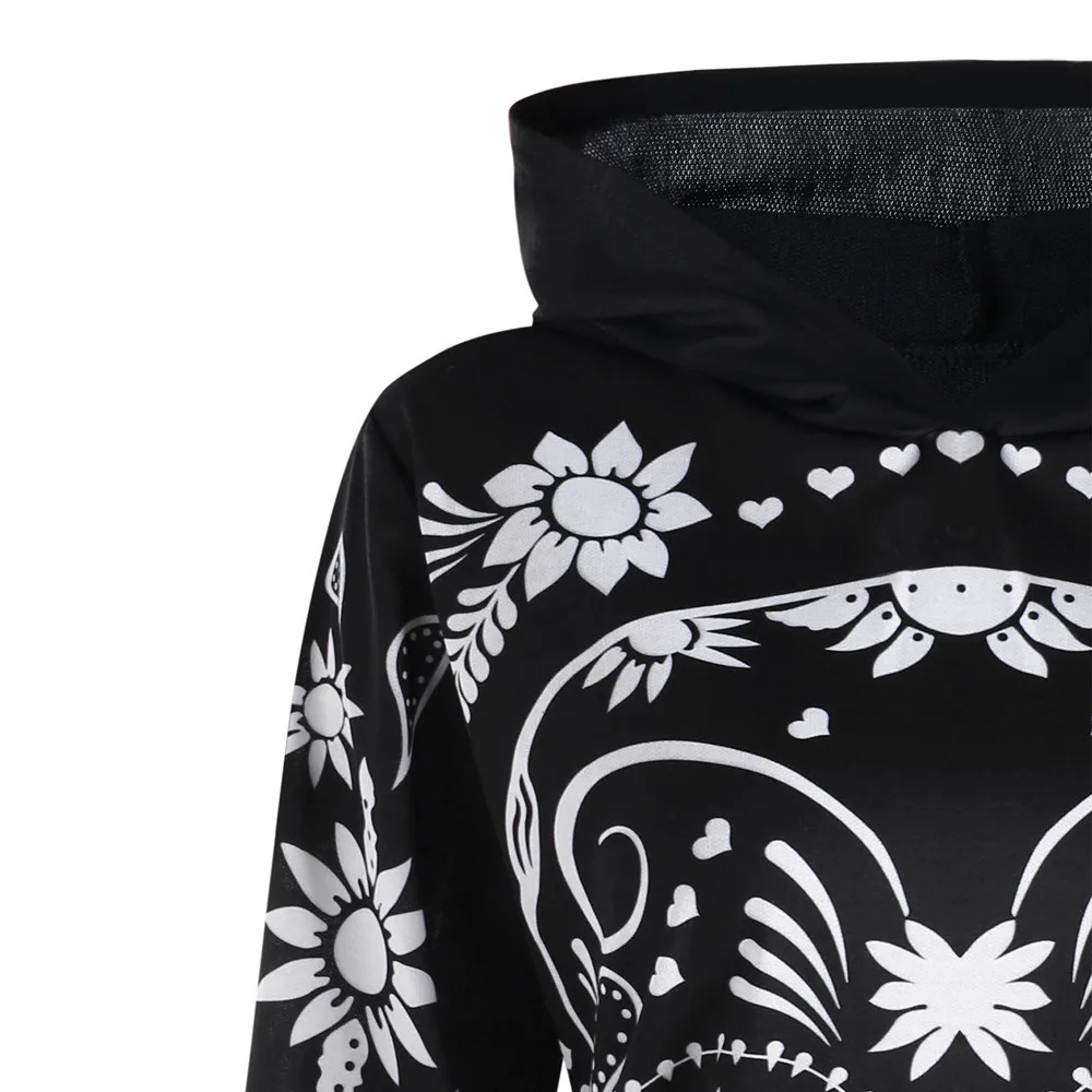 Women Autumn Casual Monochrome Hoodie Floral Skull Tunic Hoodie Sweatshirt Tops Shirt Long Sleeve Sweatshirts Femme Sportswear