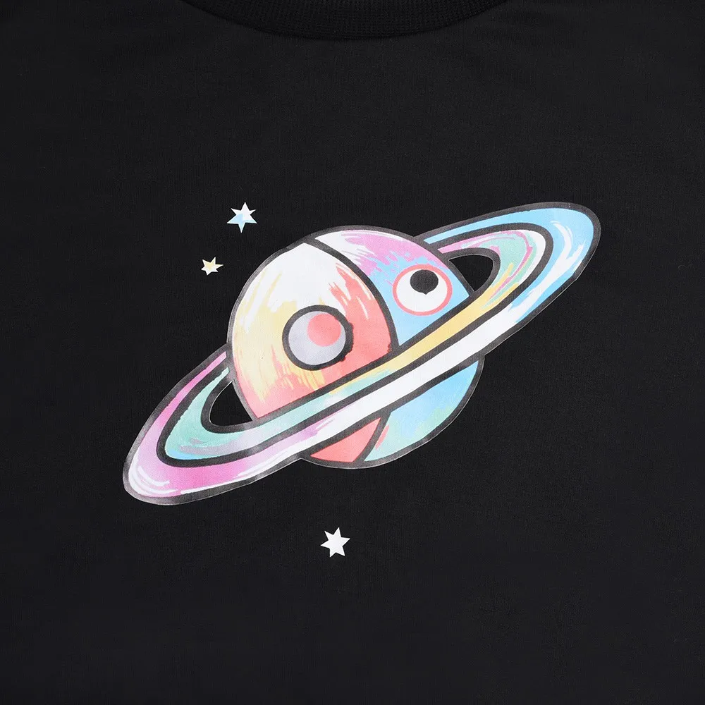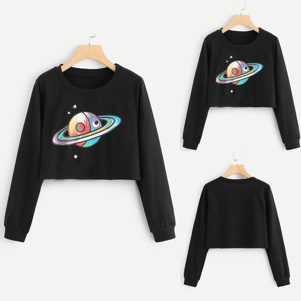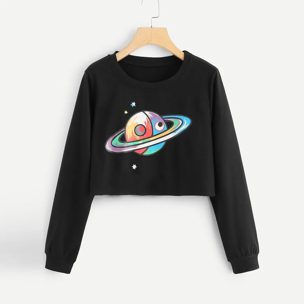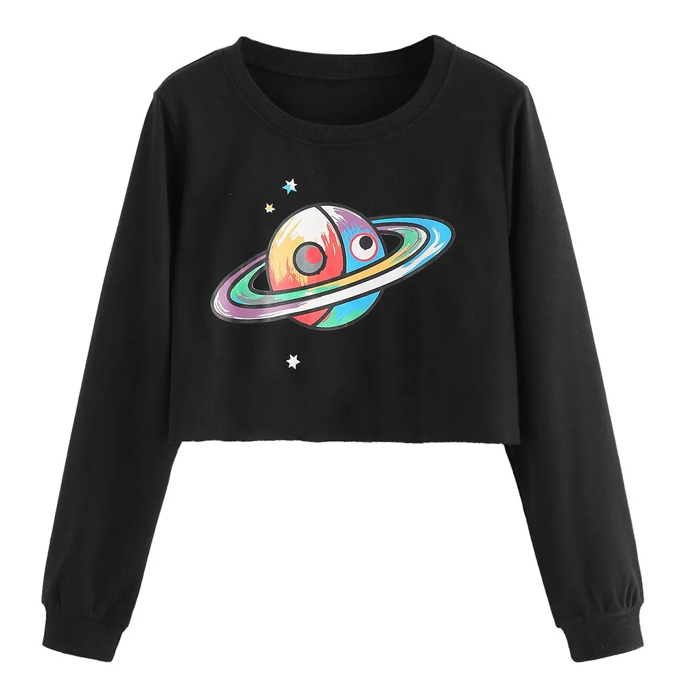 Women Autumn Hoodie Casual Galaxy Print O-Neck Sweatshirt Jumper Crop Pullover Tops Blouse Long Sleeve Sweatshirts Sportswear