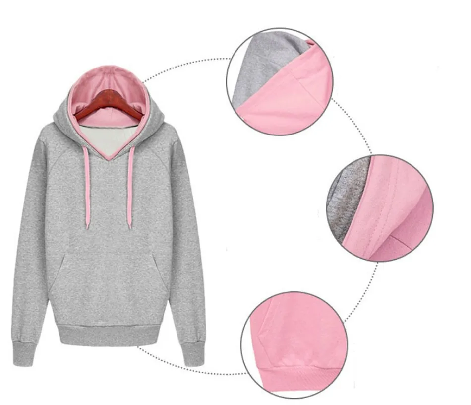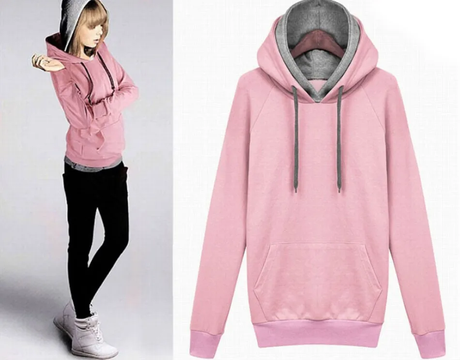 Women Autumn Winter Sweatshirt Casual Double Hoodies Long Sleeve Female Pullover Sport Tops Women’s Clothings 2015 New