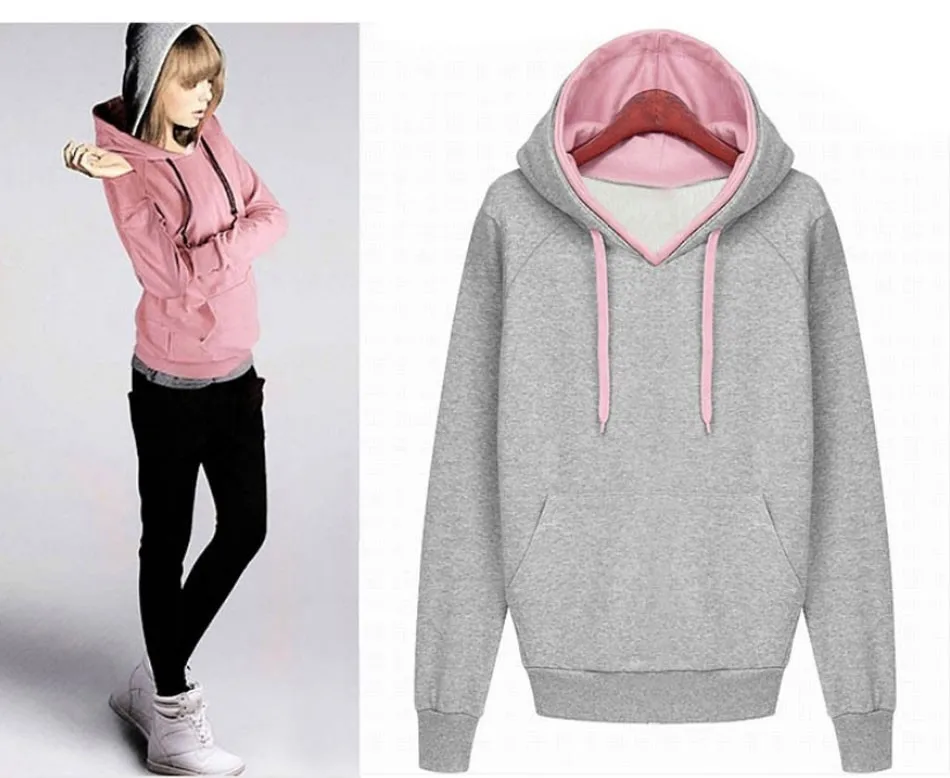 Women Autumn Winter Sweatshirt Casual Double Hoodies Long Sleeve Female Pullover Sport Tops Women’s Clothings 2015 New