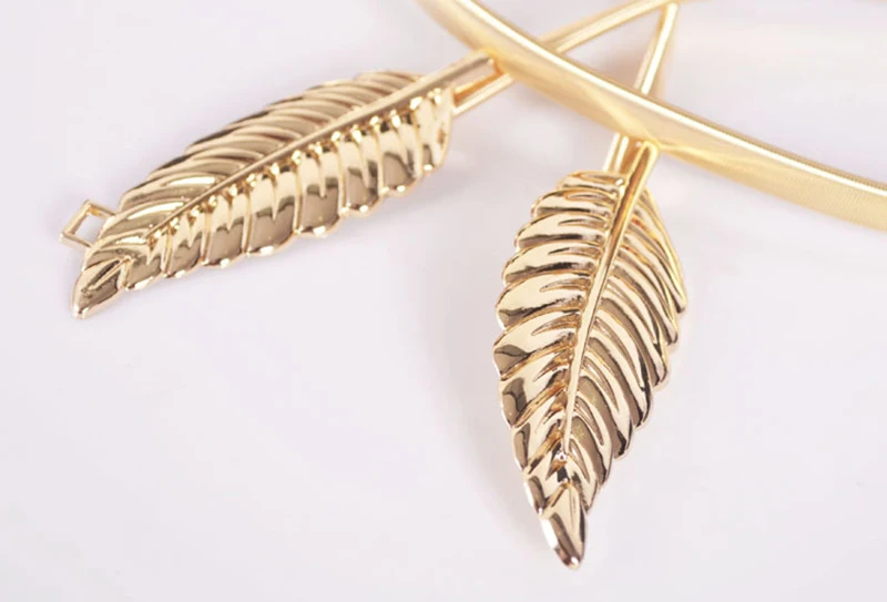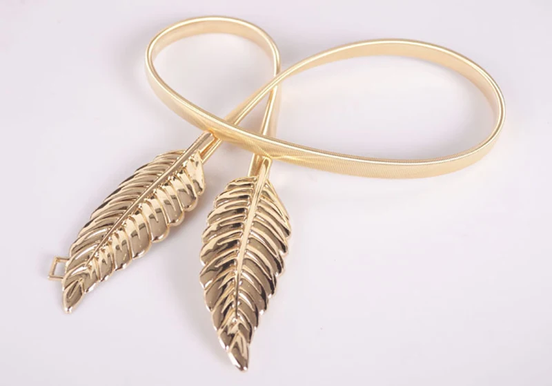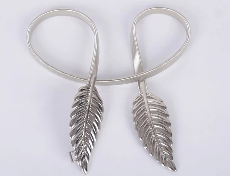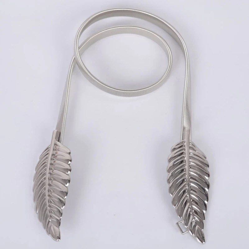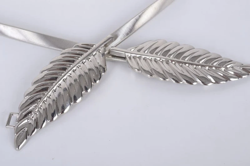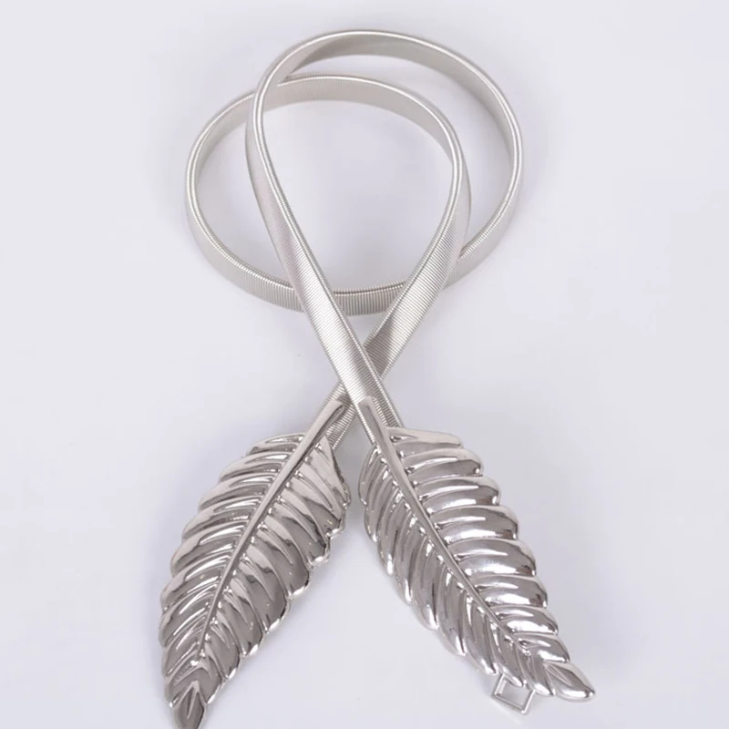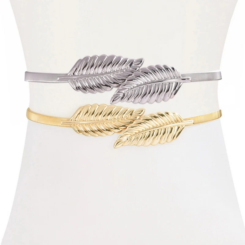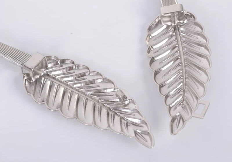 Women Belts Vintage Elastic leaf shape Wedding Design Clasp Summer Style Stretch Skinny Metal Waist Gold/Silver