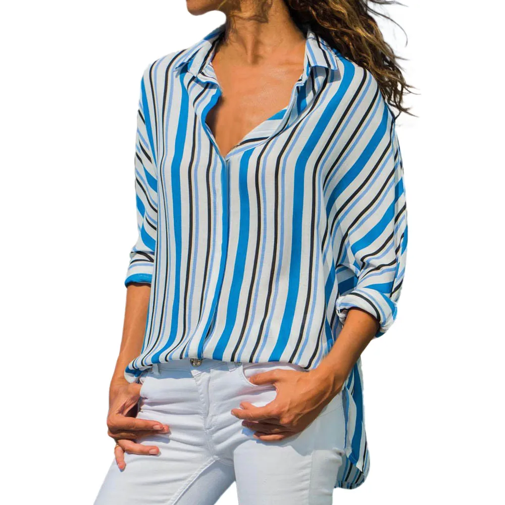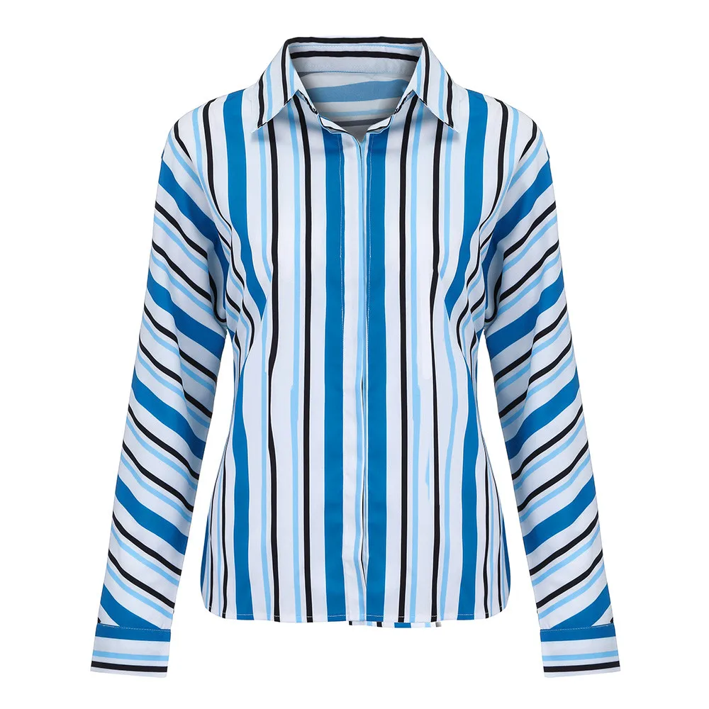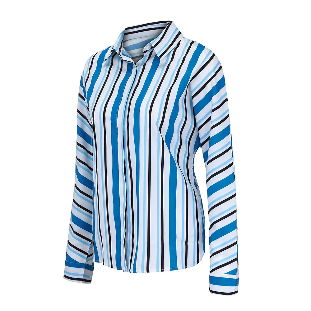 Women Blouses Autumn New Fashion Women Long Sleeve Casual Tops Striped Turn Down Collar Long Sleeve Tops Femme Blouse Shirt