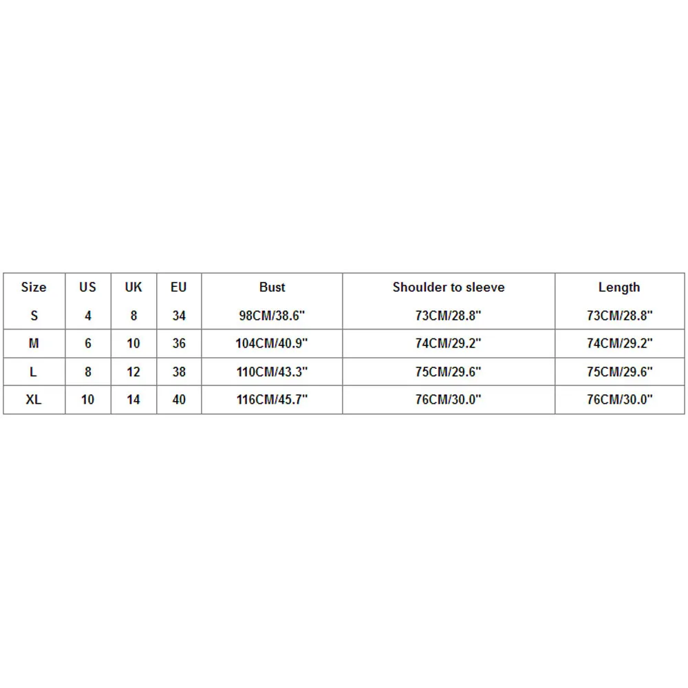 Size US UK EU Bust Shoulder to sleeve Length