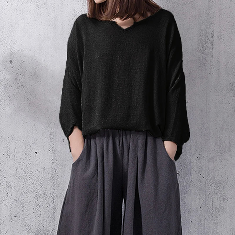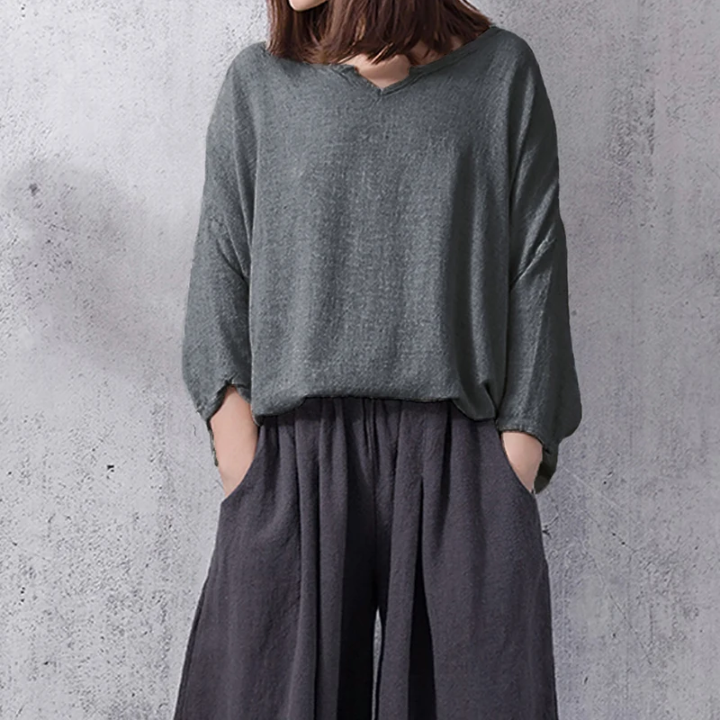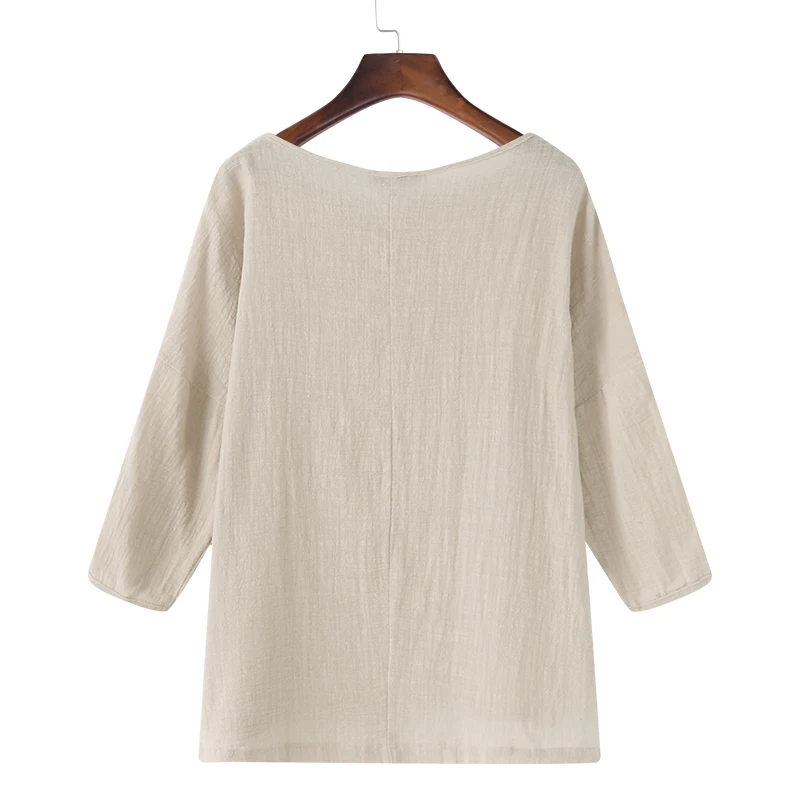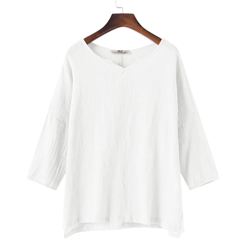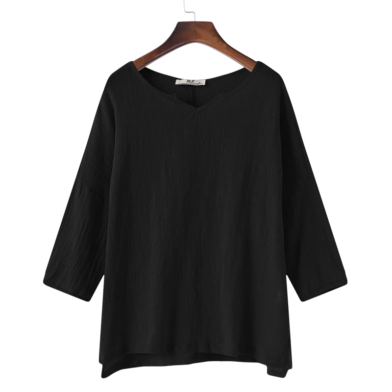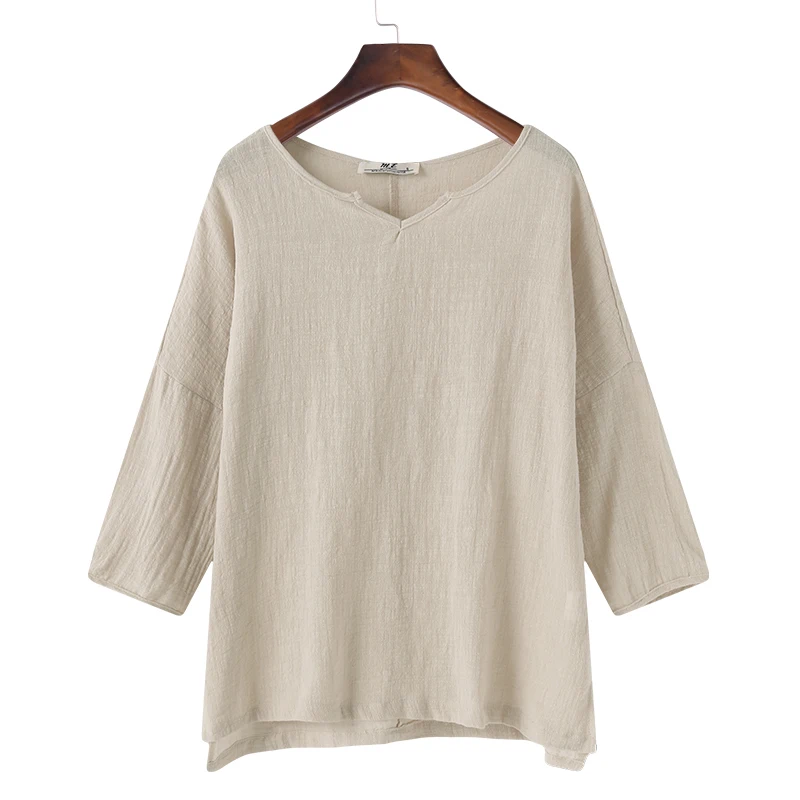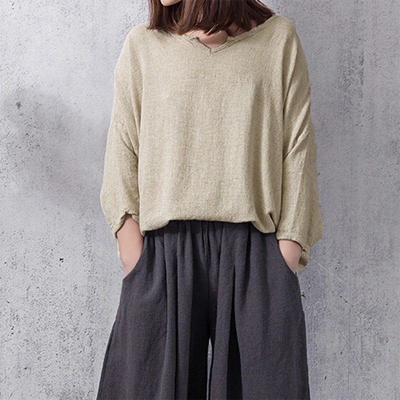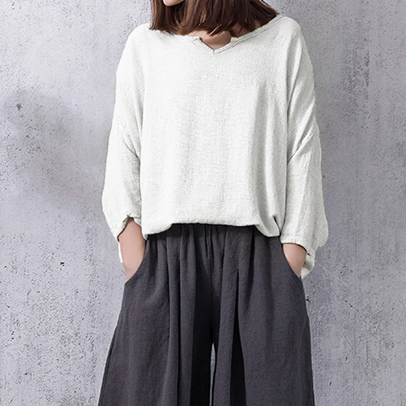 Women Blouses Cotton Solid Tops 2018 Autumn Vintage Long Sleeve V Neck Elegant Shirts Baggy Casual Blusas Pullover Plus Size 5XL