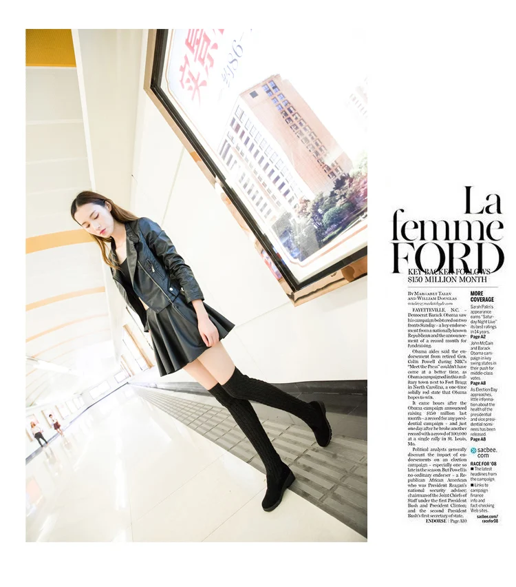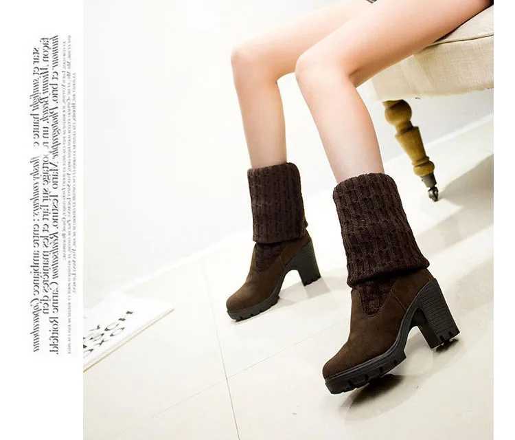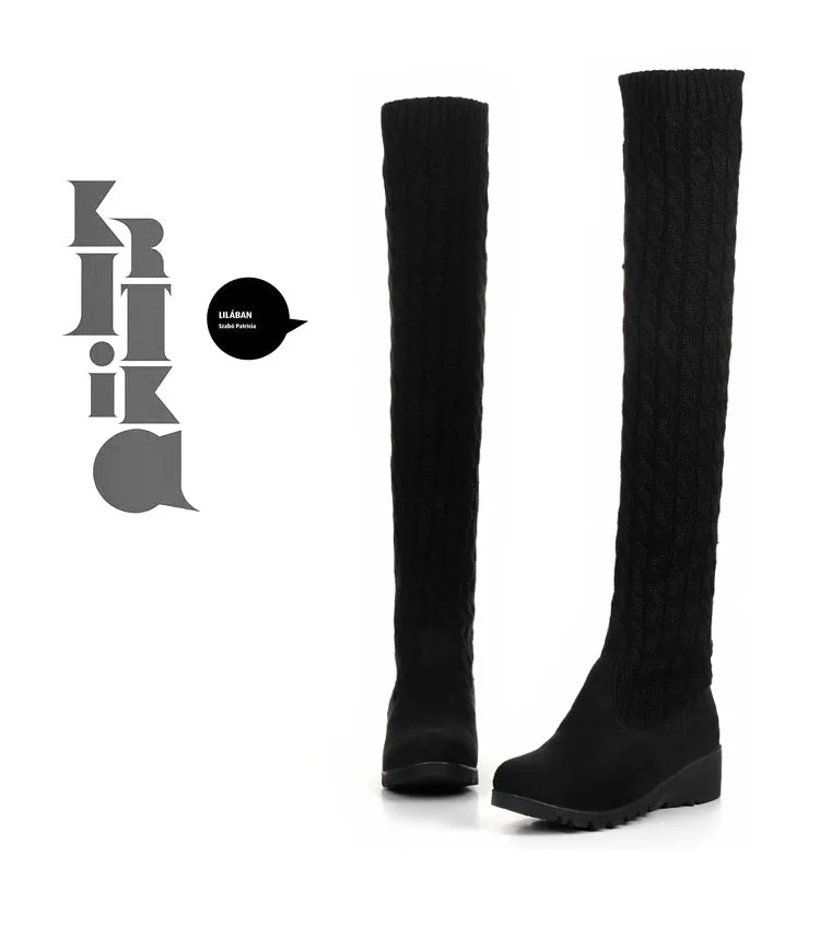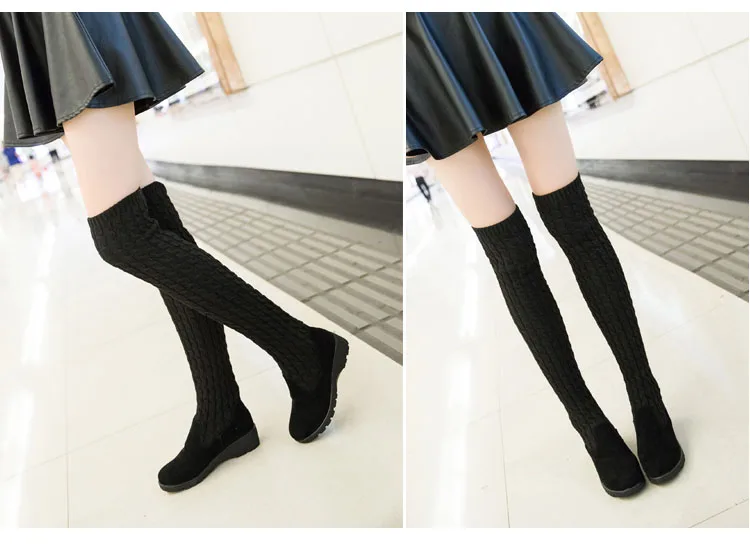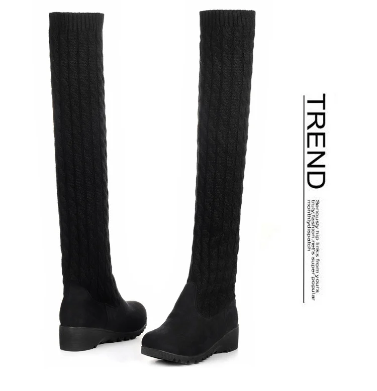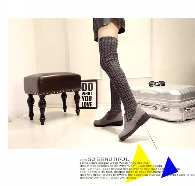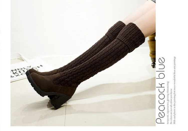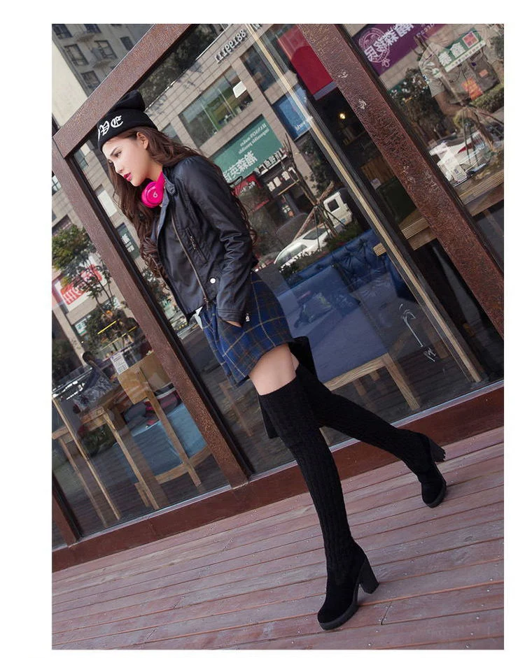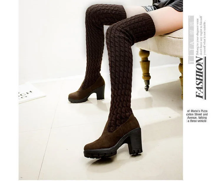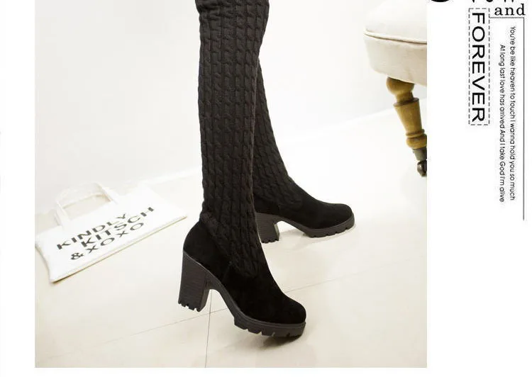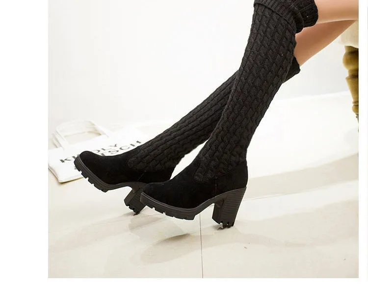 Women Boots 2018 Autumn Winter Slim High Heels Boots Stretch Over The Knee Boots Women Shoes Warm Fashion Knitting Martin boots
