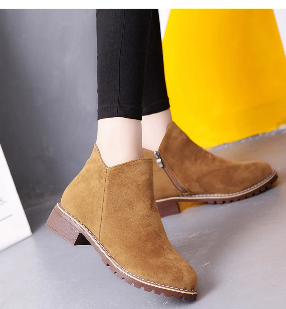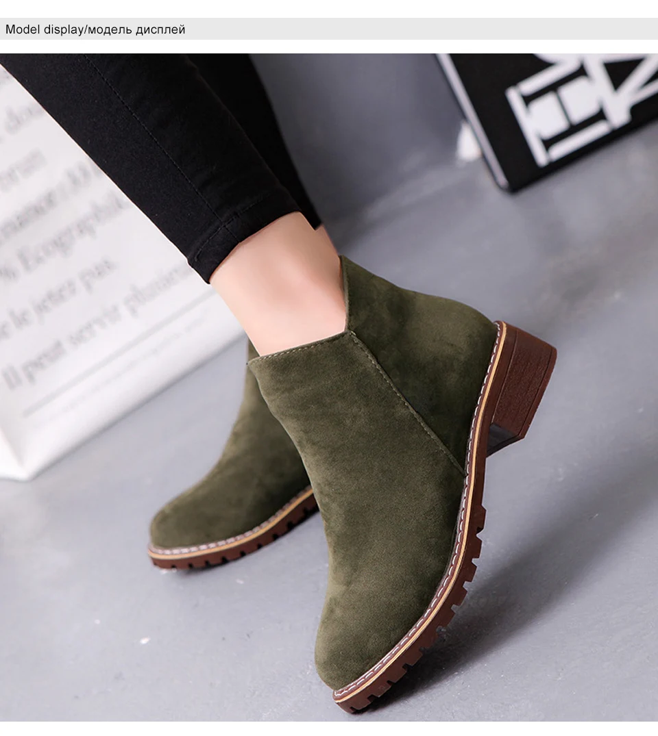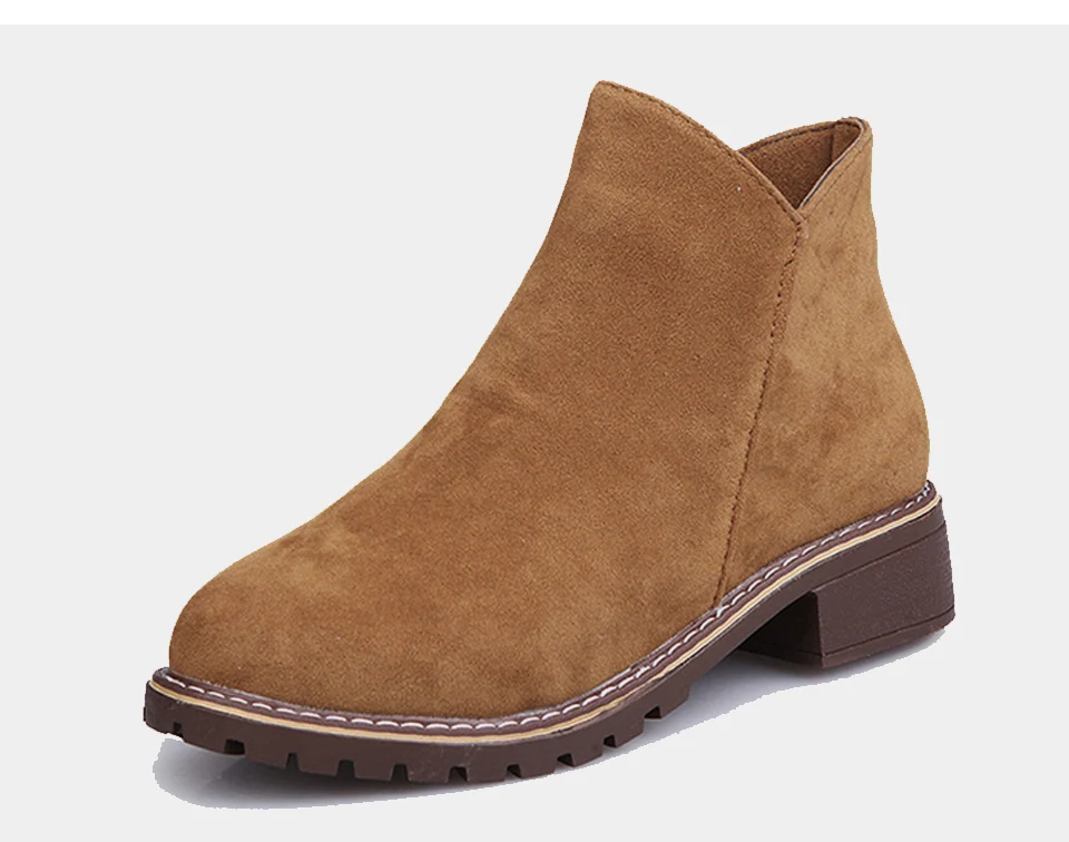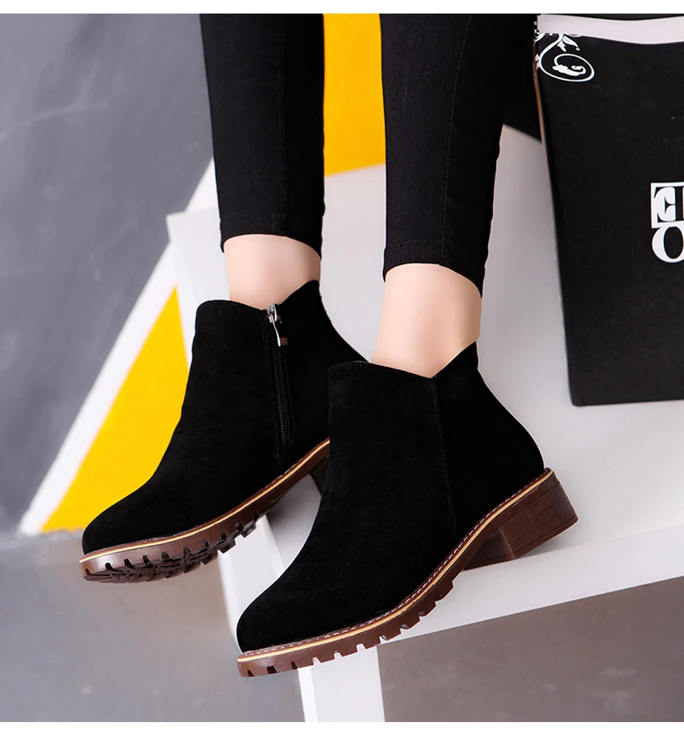 Women Boots Ankle Winter Shoes Thick Heels Slip On Chelsea Boots Woman Round Toe Casual Shoes Female Black Autumn New Arrvial DE
