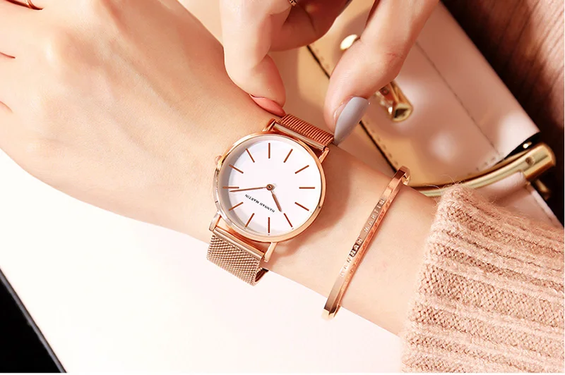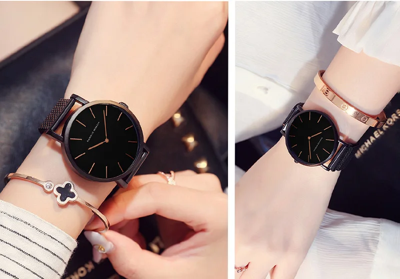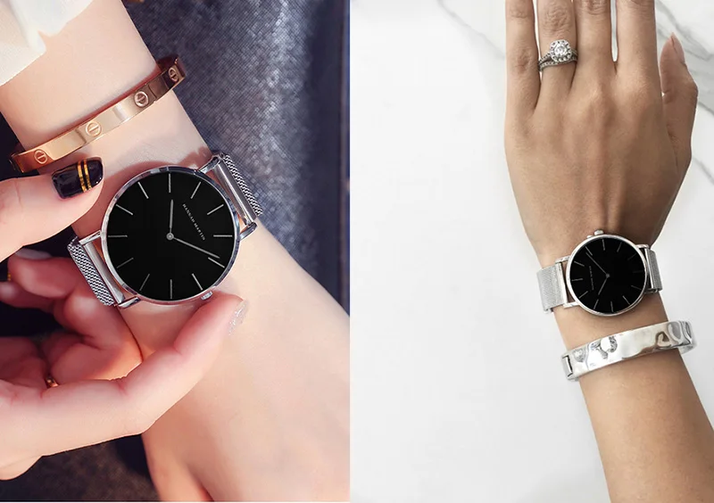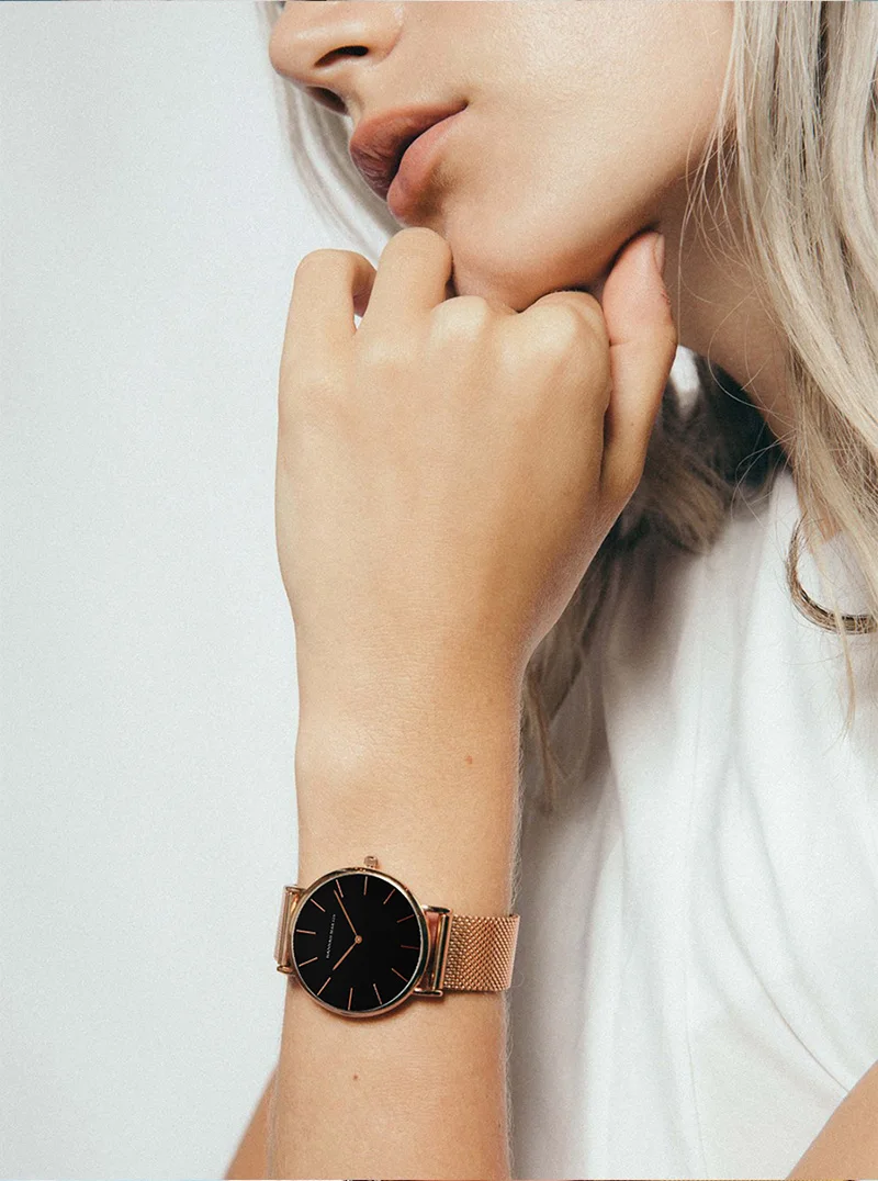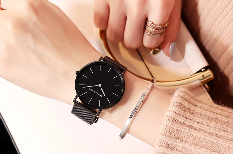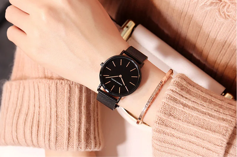 Women Bracelet Watches Luxury Brand Relogios Feminino Rose Gold 36mm Ladies Watch Stainless Steel Mesh Female Watch Black Clock