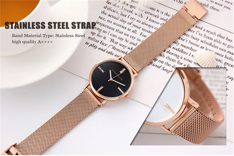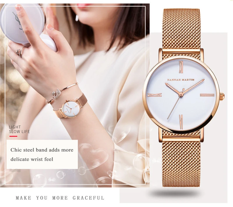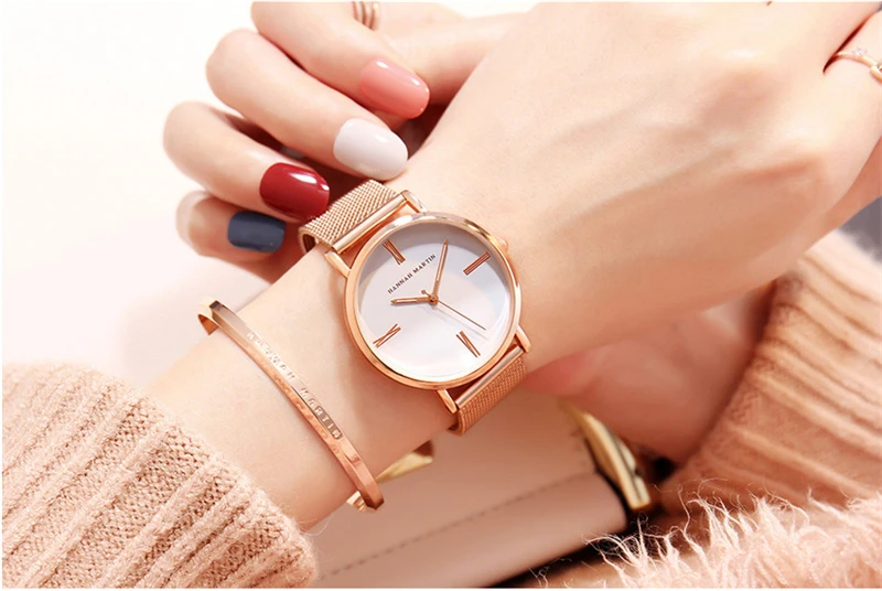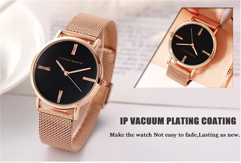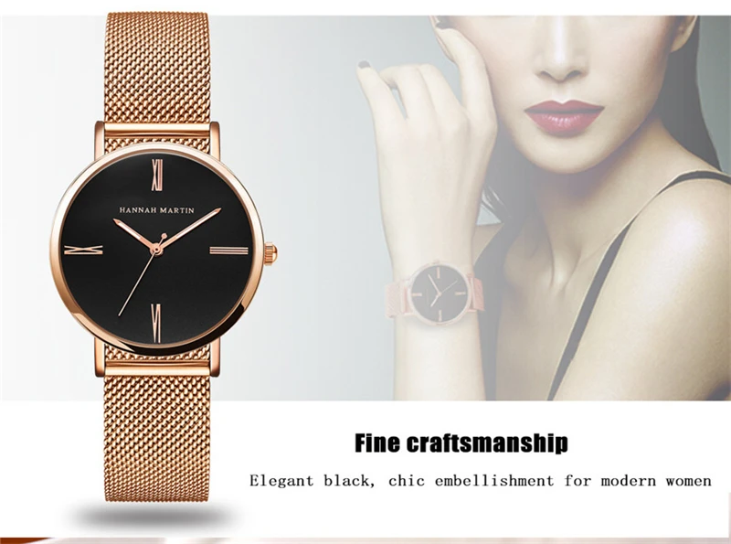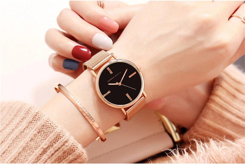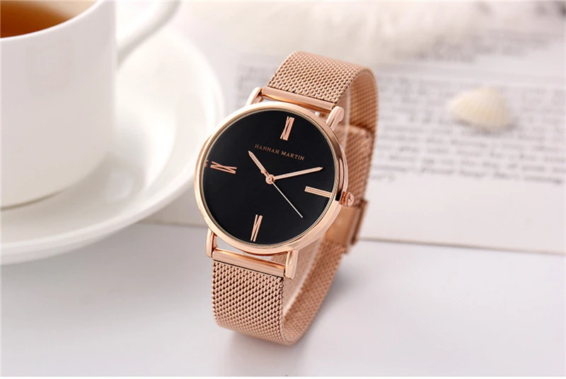Women Bracelet Watches Luxury Rose Gold Brand Women Dress Watch Steel Mesh Female Watch Simple Black Clock Relogio Feminino Xfcs